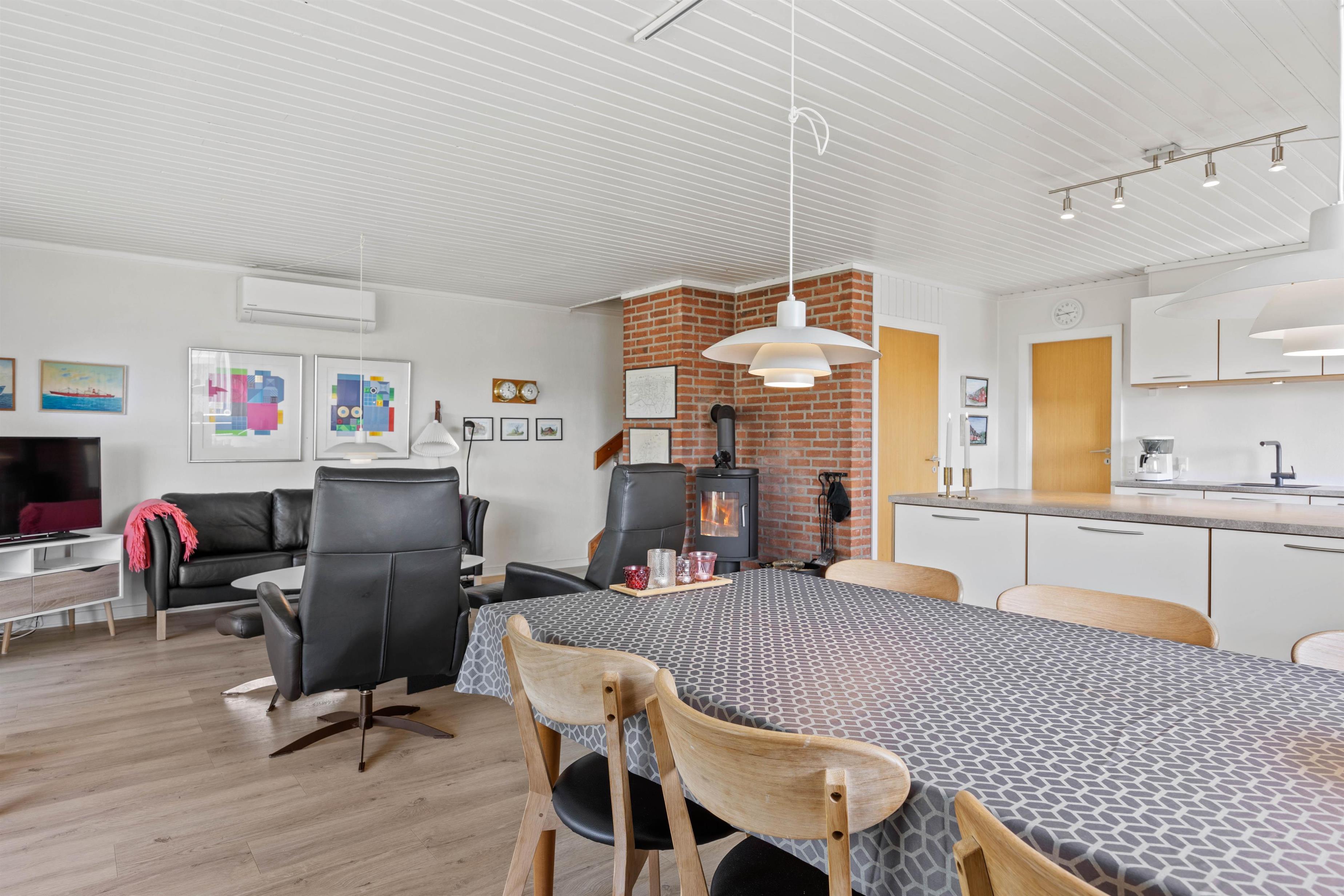 The living room features a wood-burning stove for warmth and added comfort. For convenience, an energy-efficient heat pump has also been installed in the living area. The well-equipped kitchen has everything needed to prepare perfect meals, and includes a dishwasher to ensure no precious holiday time is wasted on washing up.