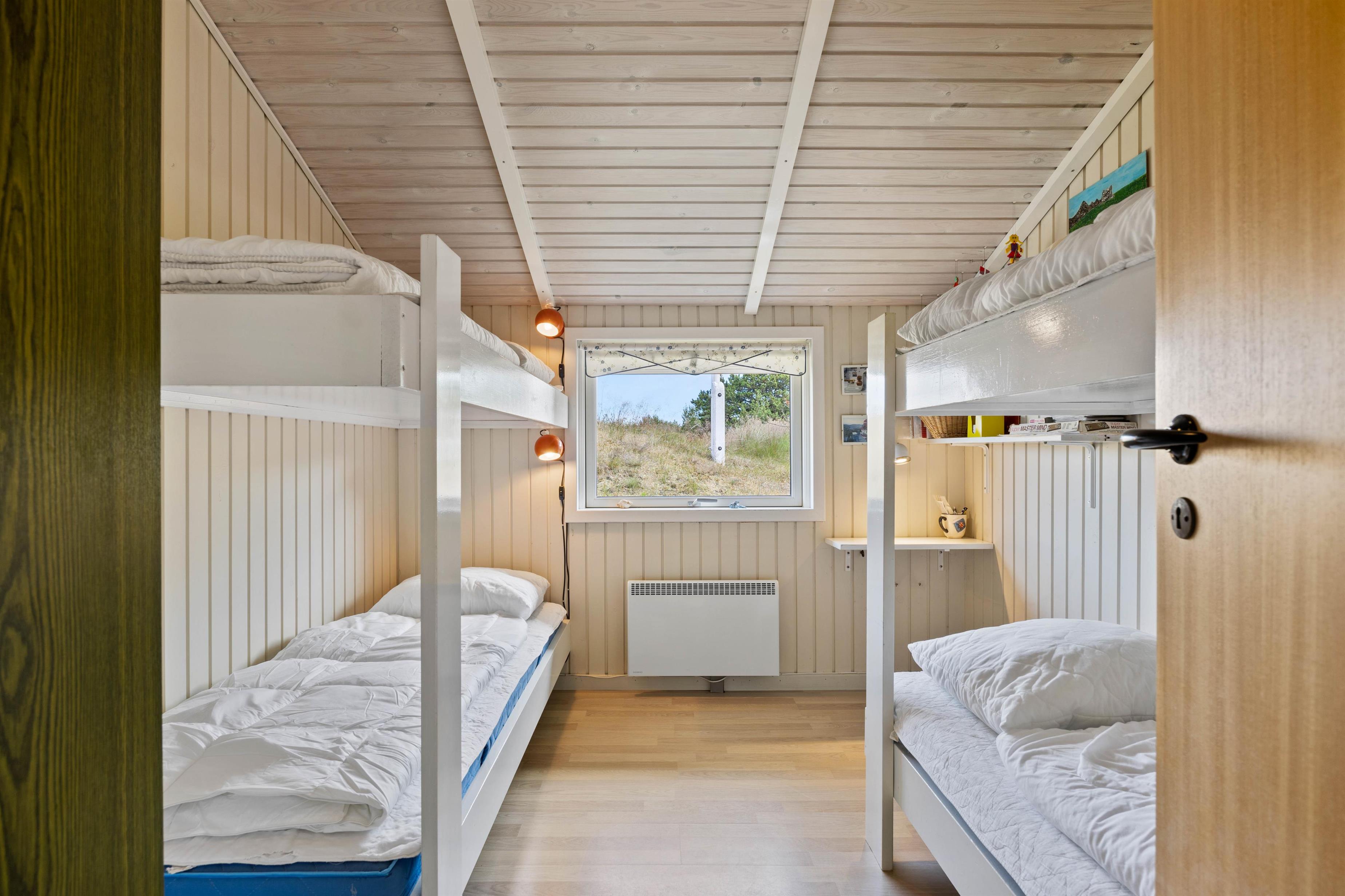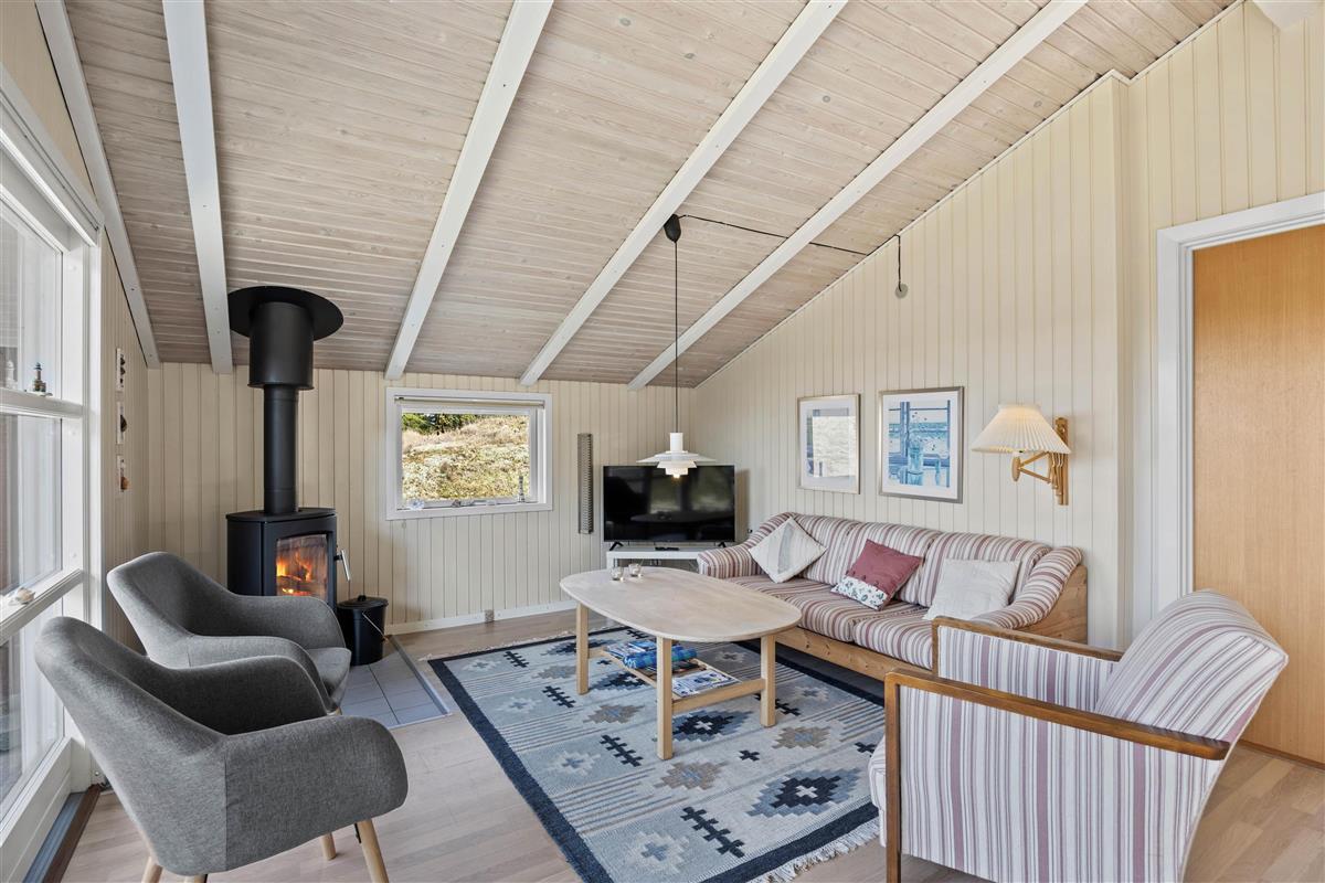 Inside your holiday home, you'll find a cosy living room furnished in typical Danish style. Here you can relax on the sofa, watch television, or listen to the crackling of the wood-burning stove whilst unwinding. An energy-efficient heat pump is also available for heating.