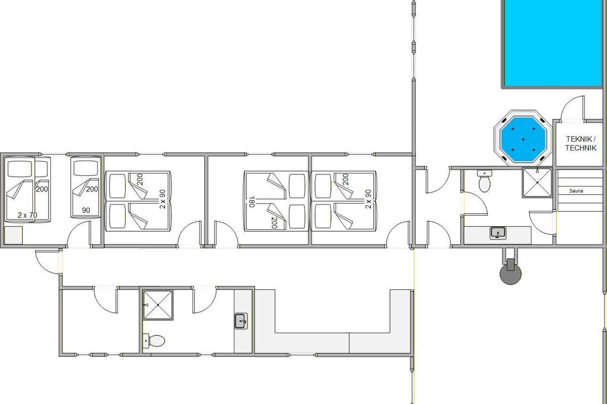 Ein absolutes Highlight ist der großzügige Swimmingpool, der das Ferienhaus zu etwas Besonderem macht. Zusammen mit der Sauna und den zwei Whirlpools entsteht hier ein eigener Wellnessbereich, der zu jeder Jahreszeit für entspannte Stunden sorgt.