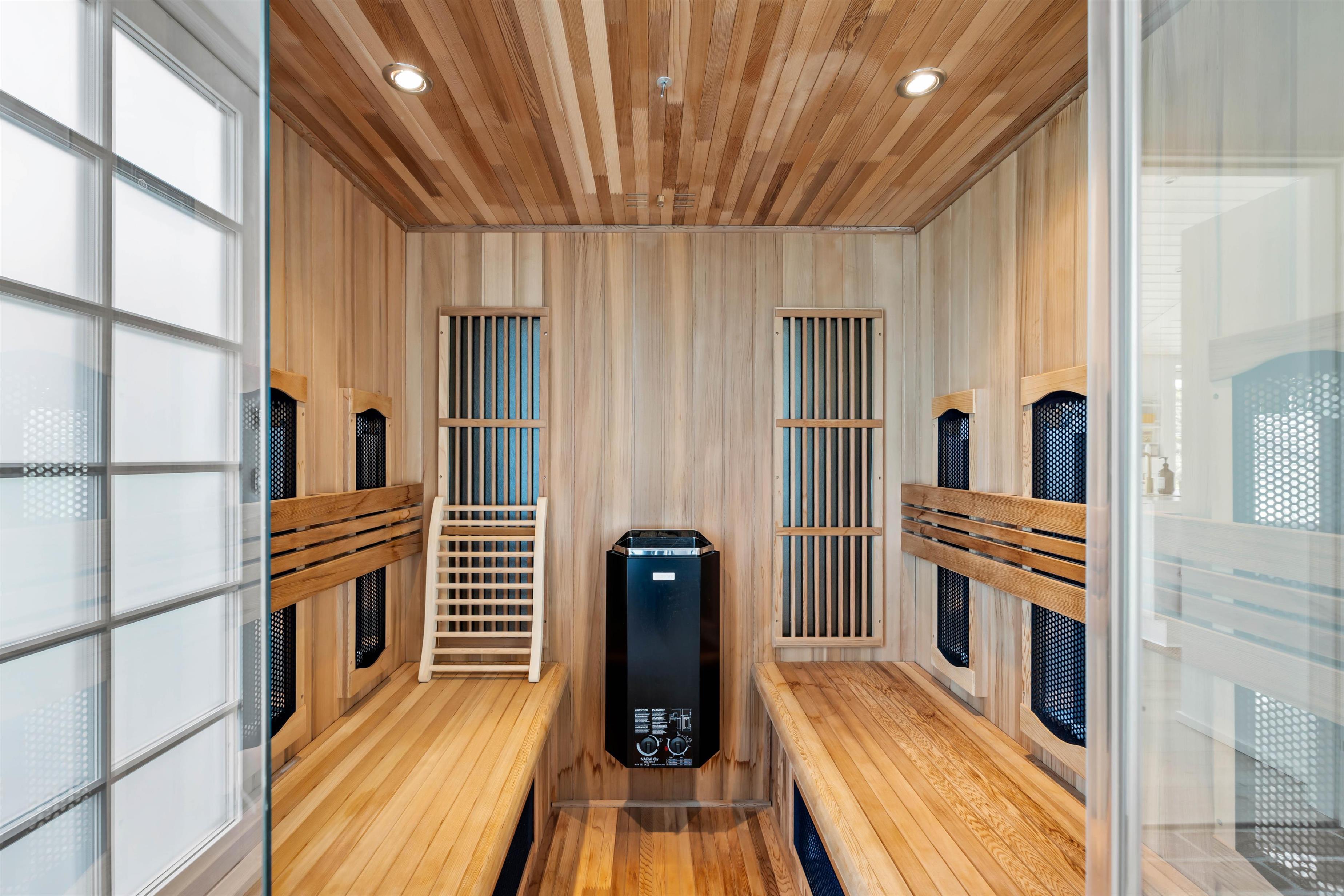 Two spacious bathrooms with underfloor heating make even brushing your teeth a pleasure. Both bathrooms are classically elegant, with one featuring a modern infrared sauna.