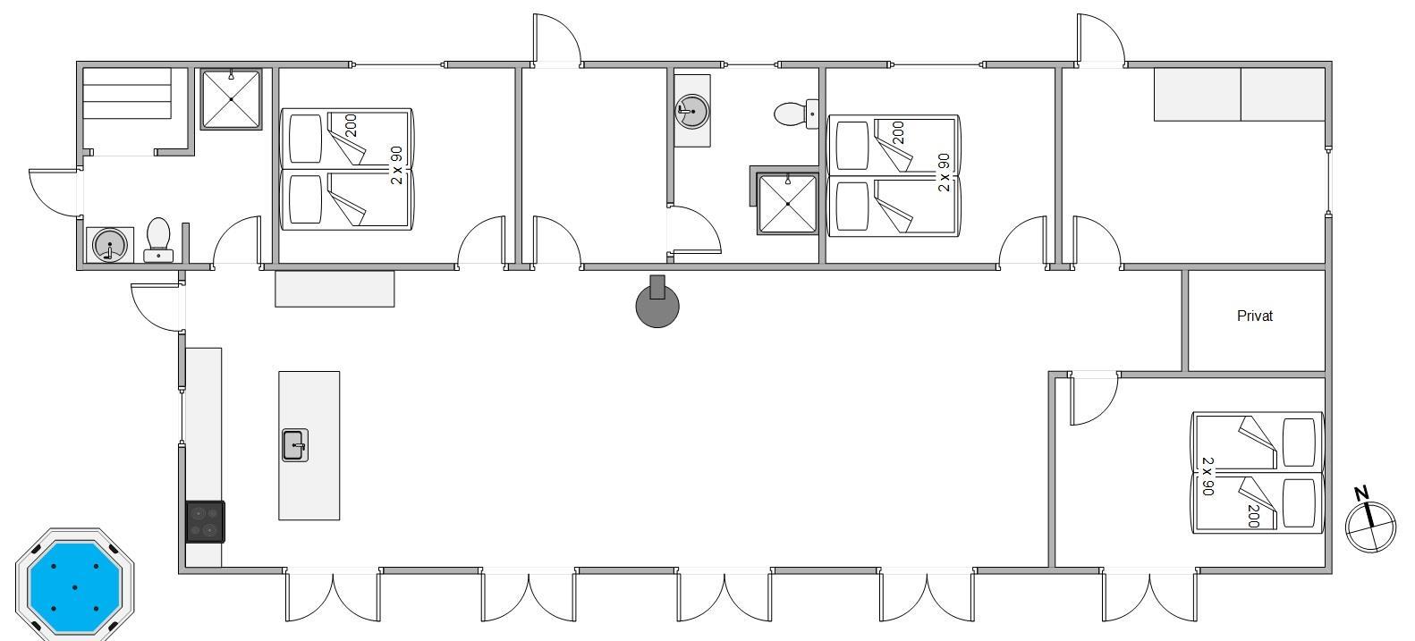 Enjoy the warm, bubbling water and, with luck, the starry sky above Fanø. Next to the hot tub, you'll find an outdoor shower for rinsing off sand and salt after a long day at the beach, available from April to November. Once the beds in the 3 bedrooms have been allocated, nothing stands in the way of a restful night's sleep.