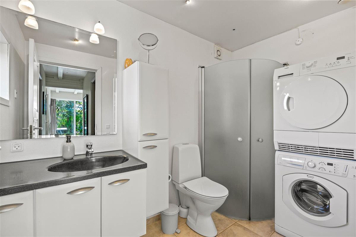 Along with its cosy furnishings and modern design, the holiday home offers numerous amenities to enhance your stay. A fully equipped kitchen includes a dishwasher, whilst the hallway houses a washing machine and tumble dryer to ensure maximum comfort during your stay. The heat pump provides welcoming warmth on cooler days, helping you feel right at home.