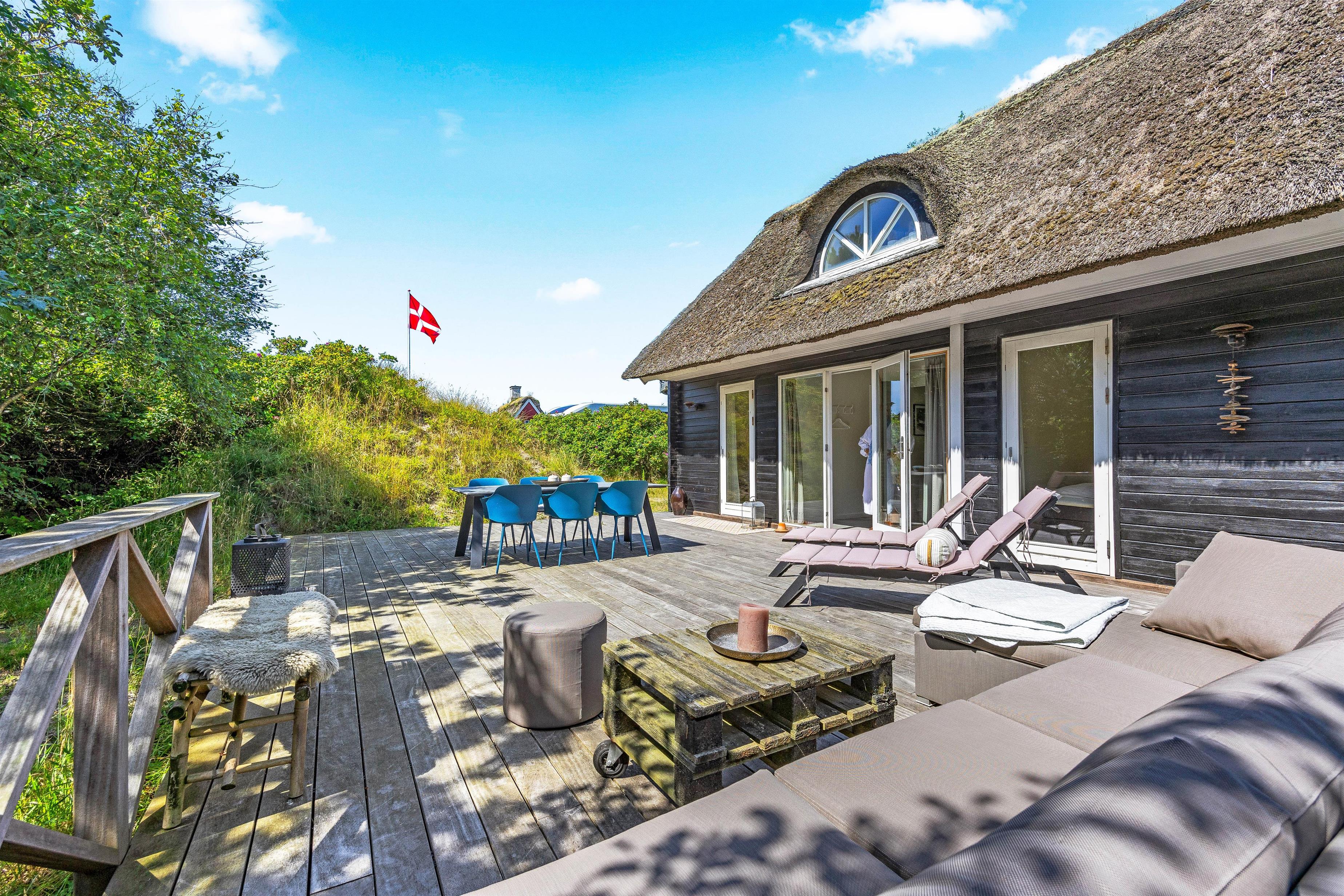 Experience the beauty of the surrounding nature from the open terrace or in the garden, where you can enjoy barbecue evenings with family and friends. The holiday home is situated on a natural dune plot, offering you the chance to fully embrace the peace and tranquility of the Danish landscape.