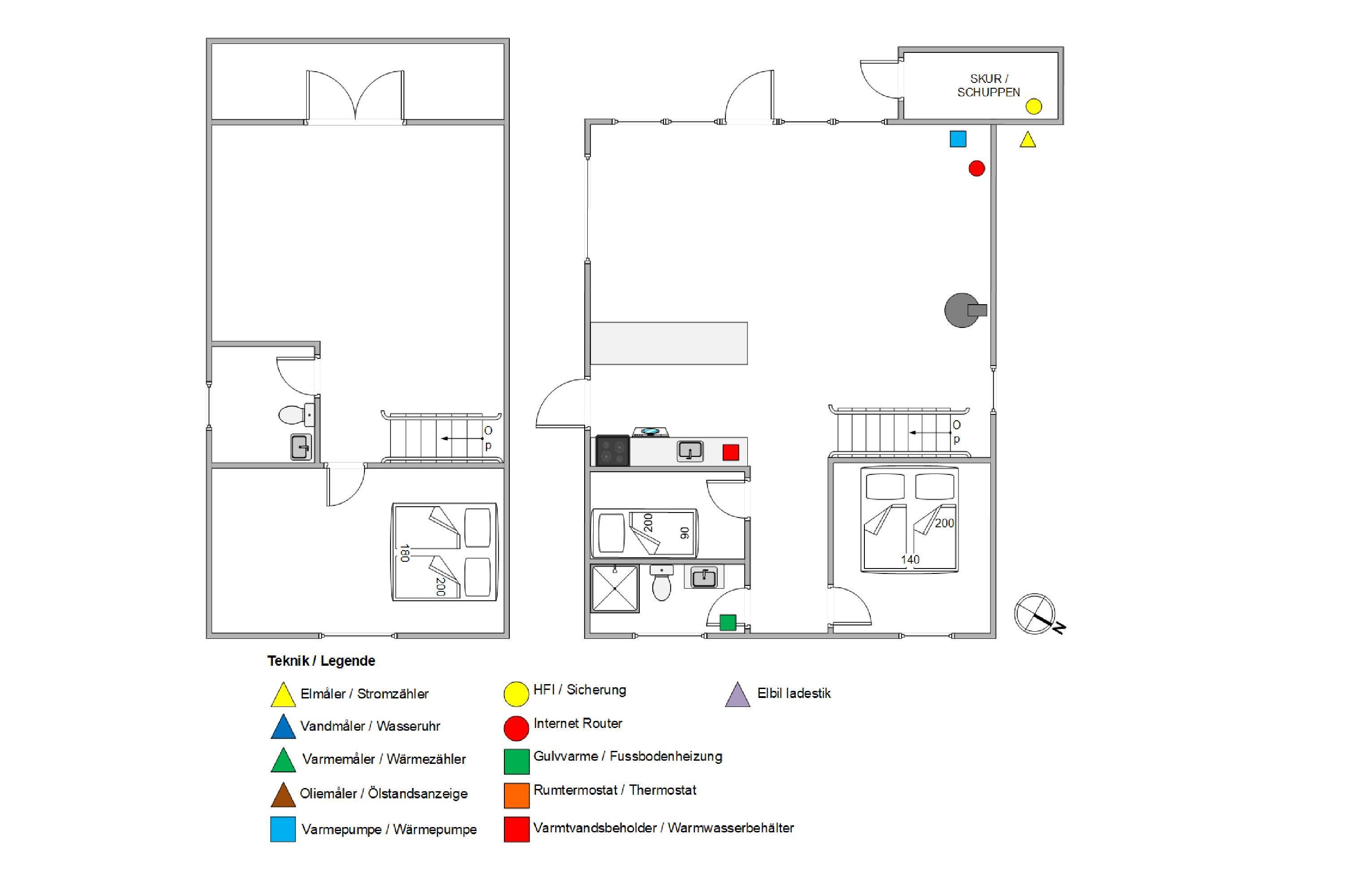 The holiday home features an energy-efficient heat pump for heating. A washing machine is also provided for your convenience. The ground floor additionally houses one of the two double bedrooms, the single bedroom and the shower room with underfloor heating.