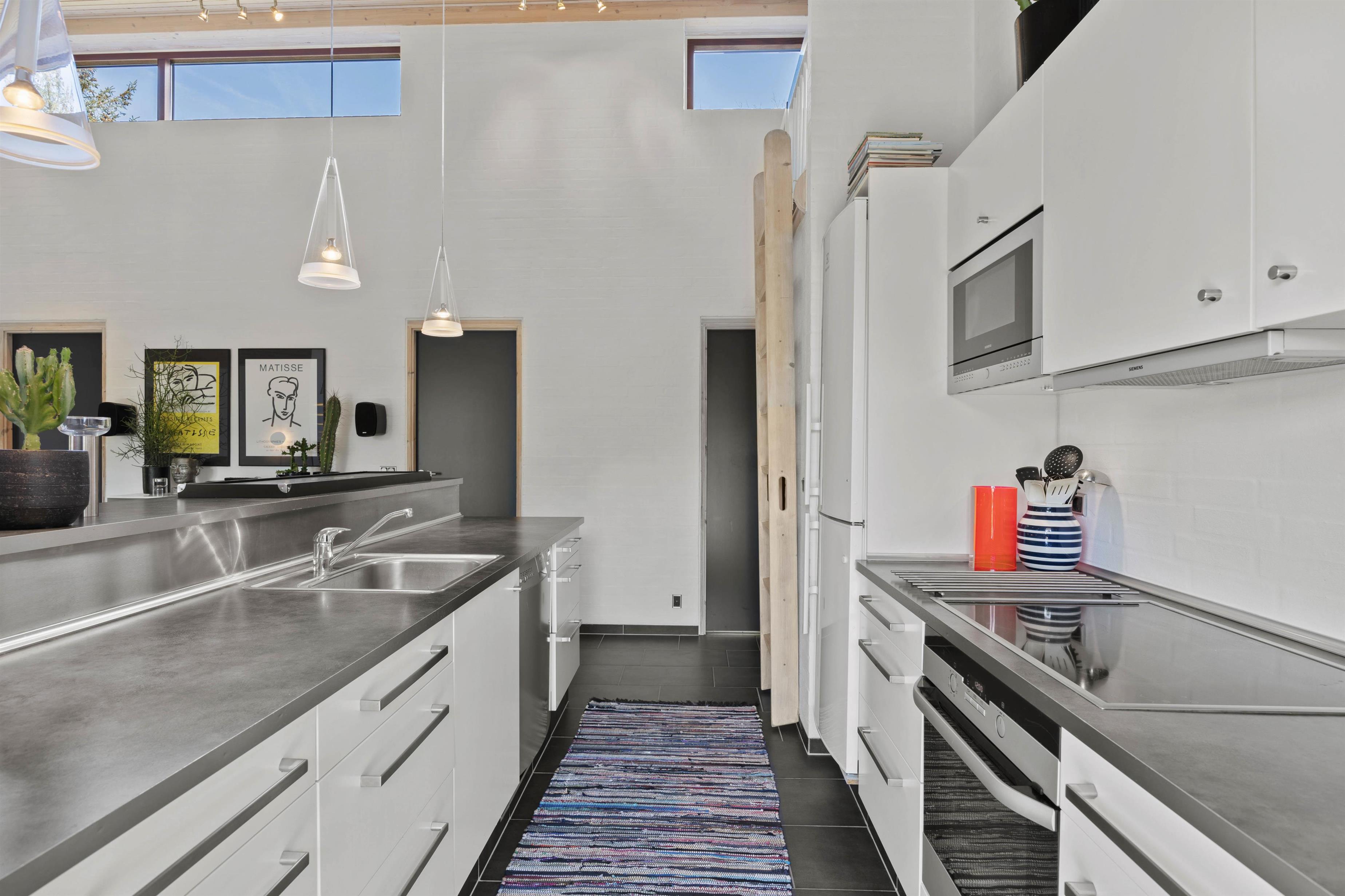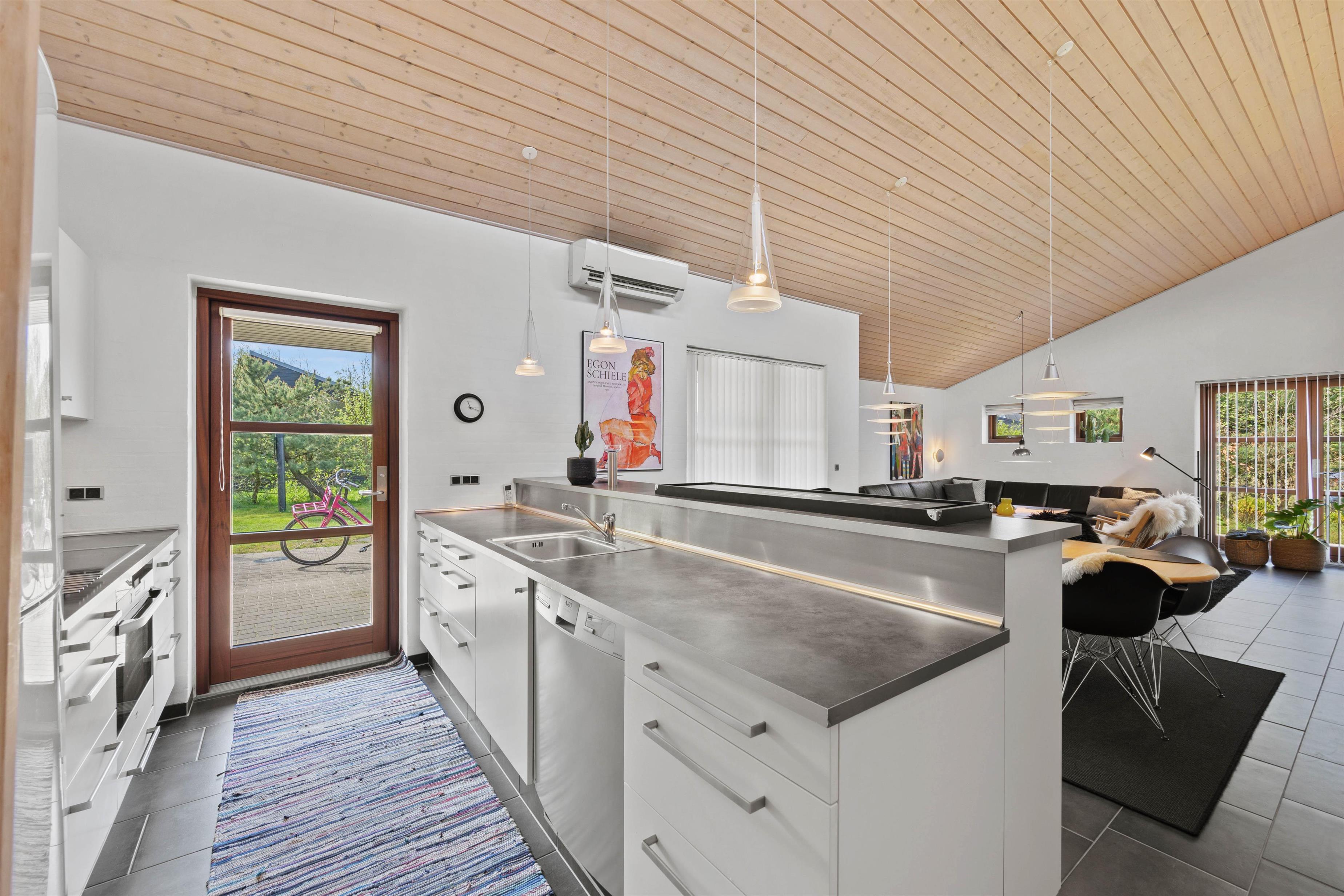 The heart of this Fanø Bad holiday home is undoubtedly the beautiful, modern and bright living room. Large windows flood the room with natural light, creating an open, welcoming atmosphere that instantly invites relaxation. The modern furnishings are both stylish and functional, offering the perfect combination of comfort and aesthetics.