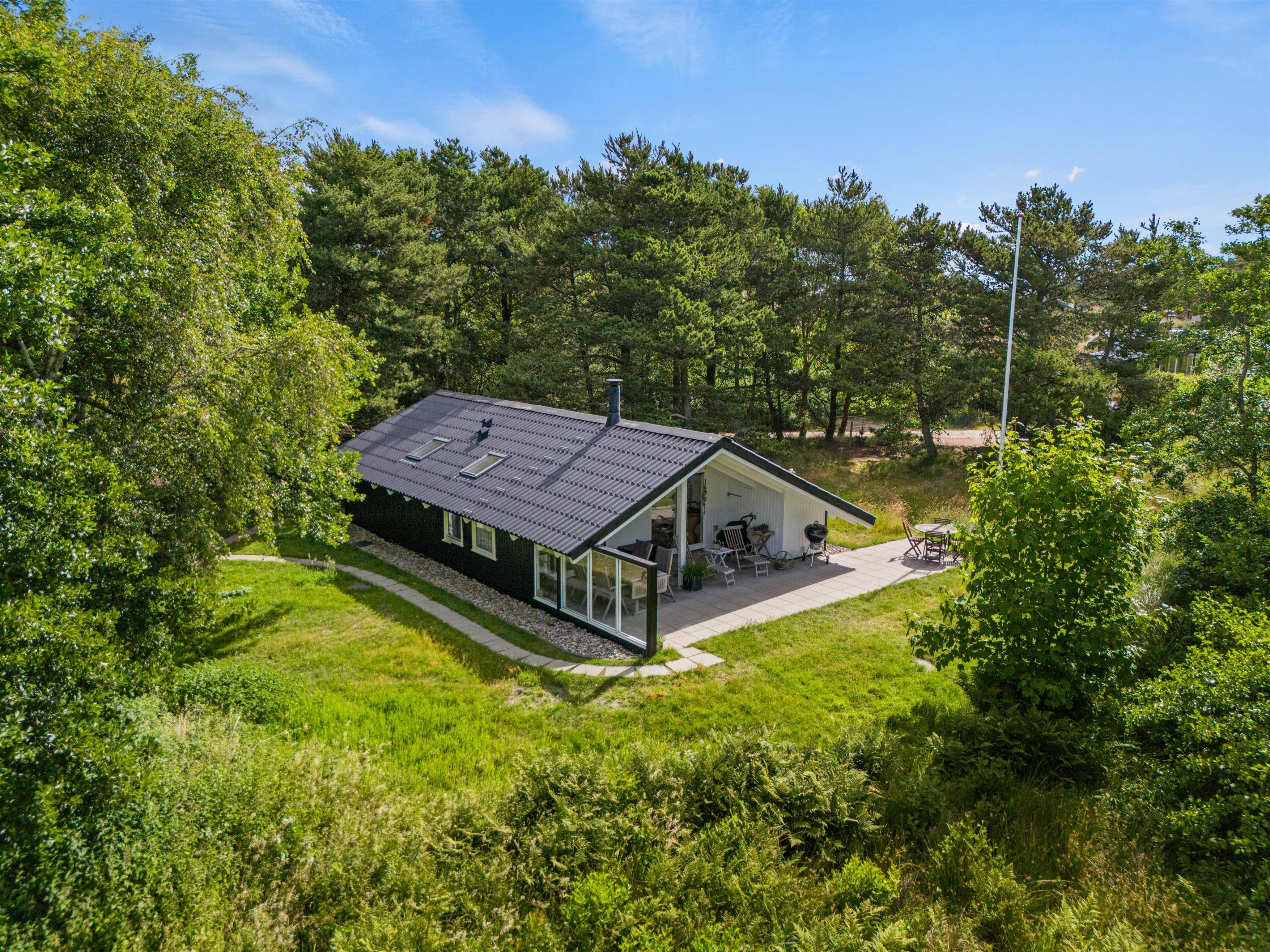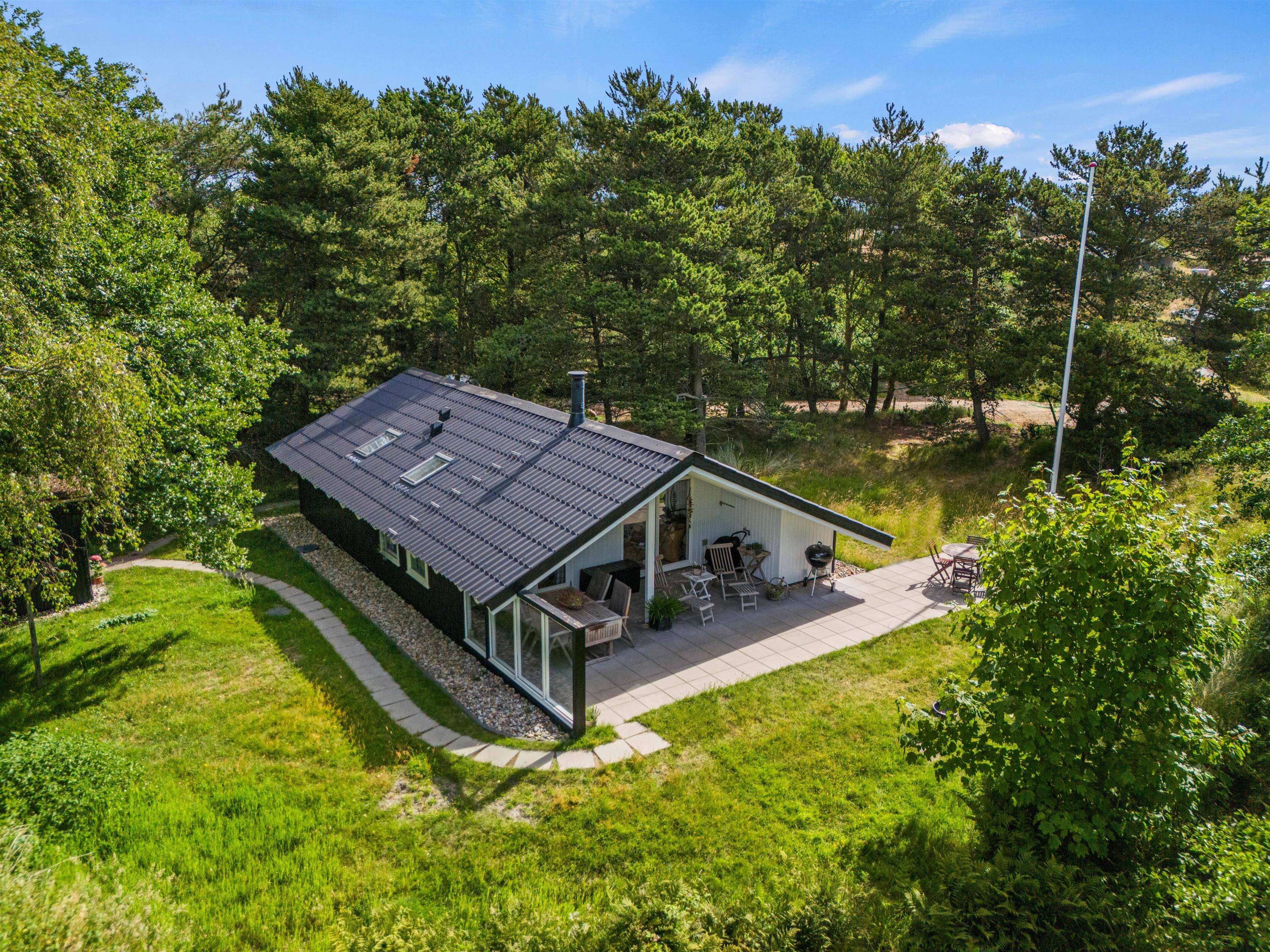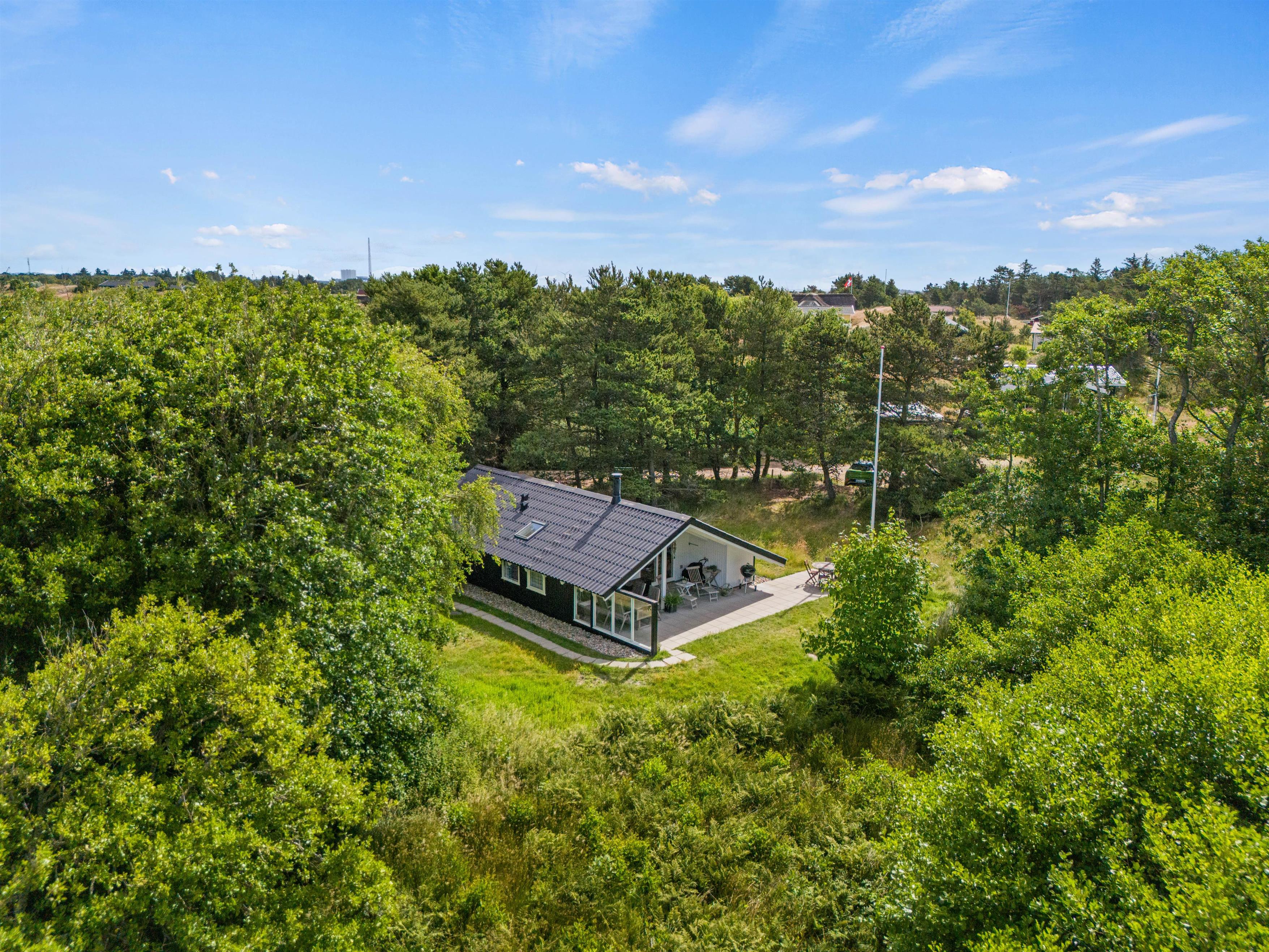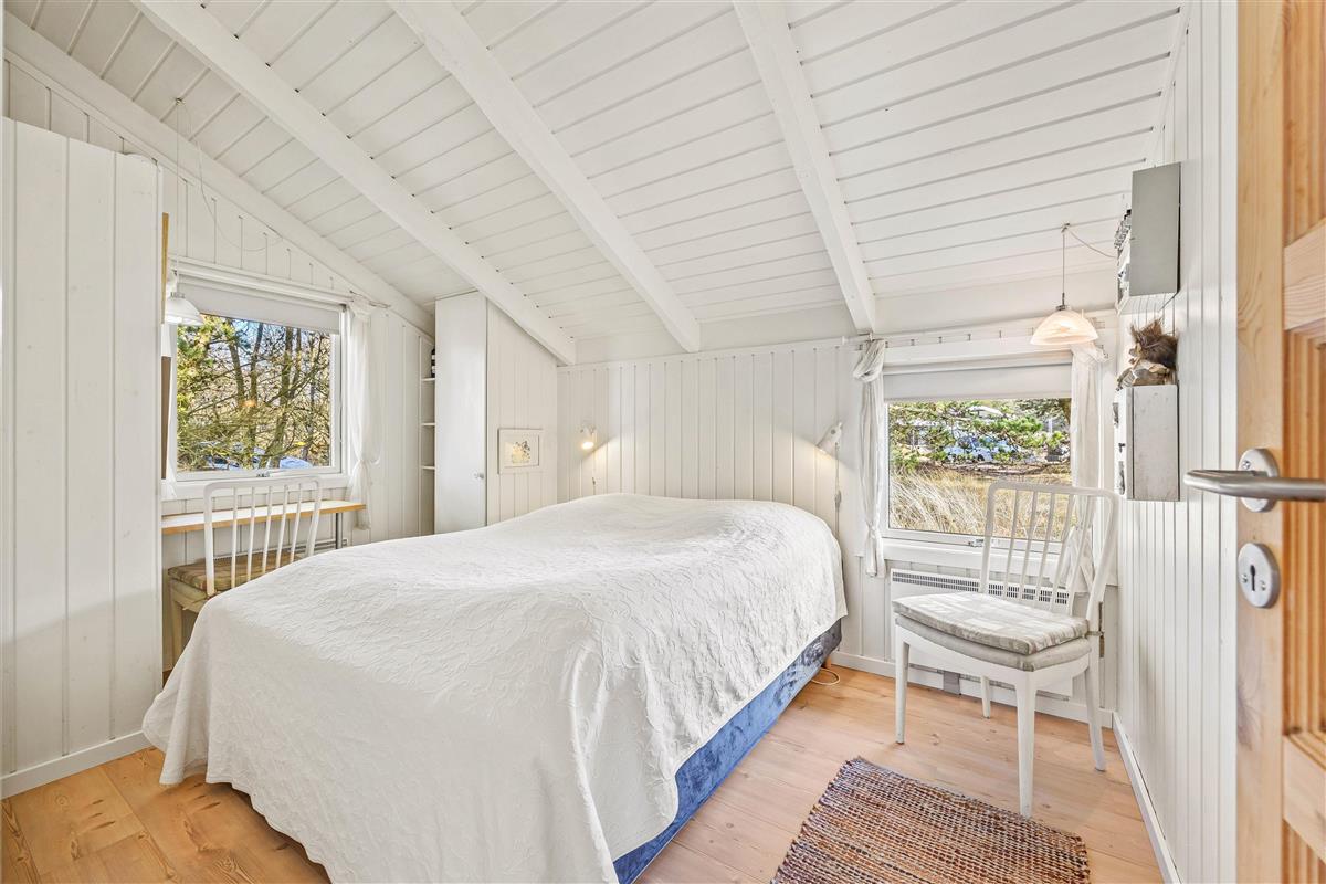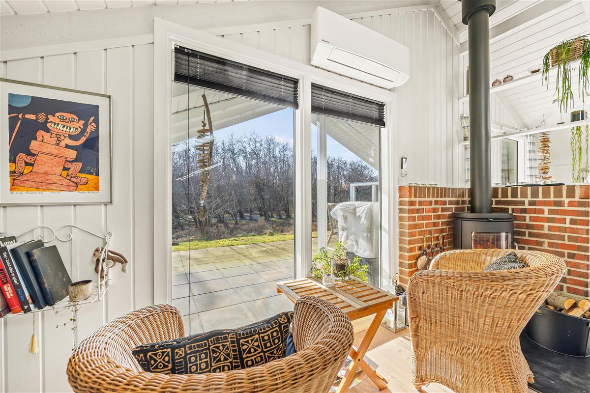 As suggested by the address Ved Skoven 10, this holiday home is beautifully situated near woodland on the holiday island of Fanø. Renovated in 2020, the 64-square-metre holiday home comfortably accommodates up to four guests. Dogs are also welcome here. The wood-burning stove creates a cosy atmosphere, and the terrace is perfect for relaxation. With final cleaning included, you can enjoy your holiday right up until the last moment.
