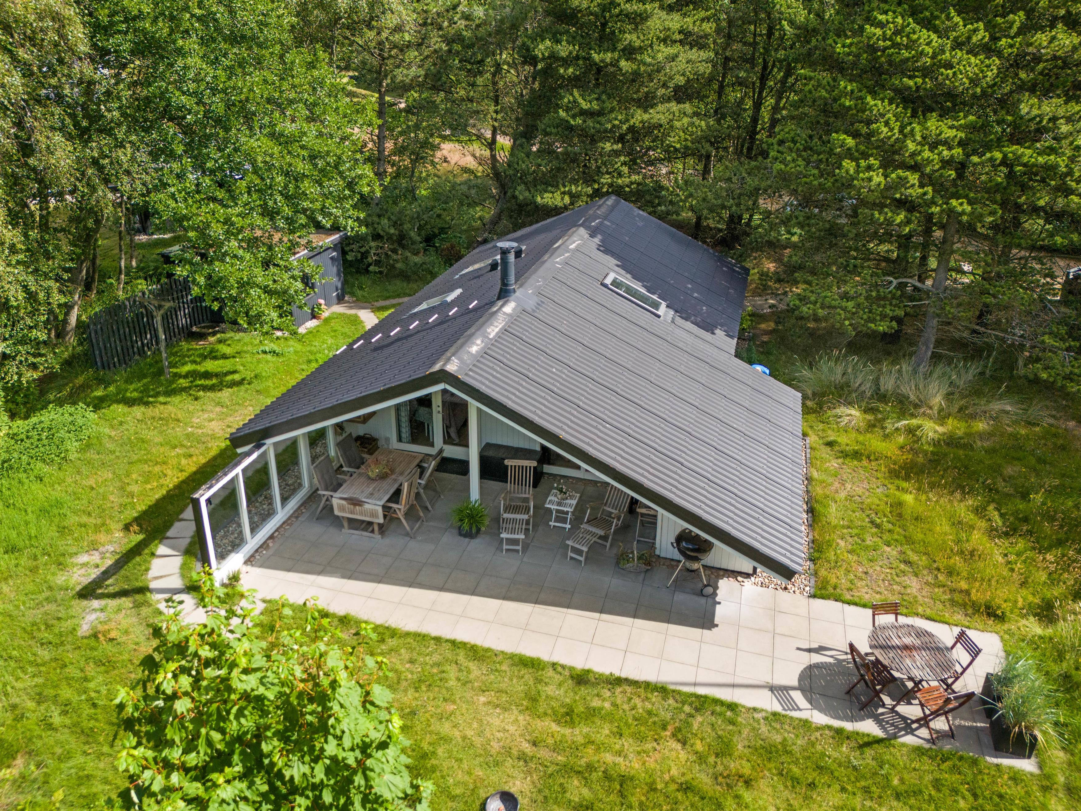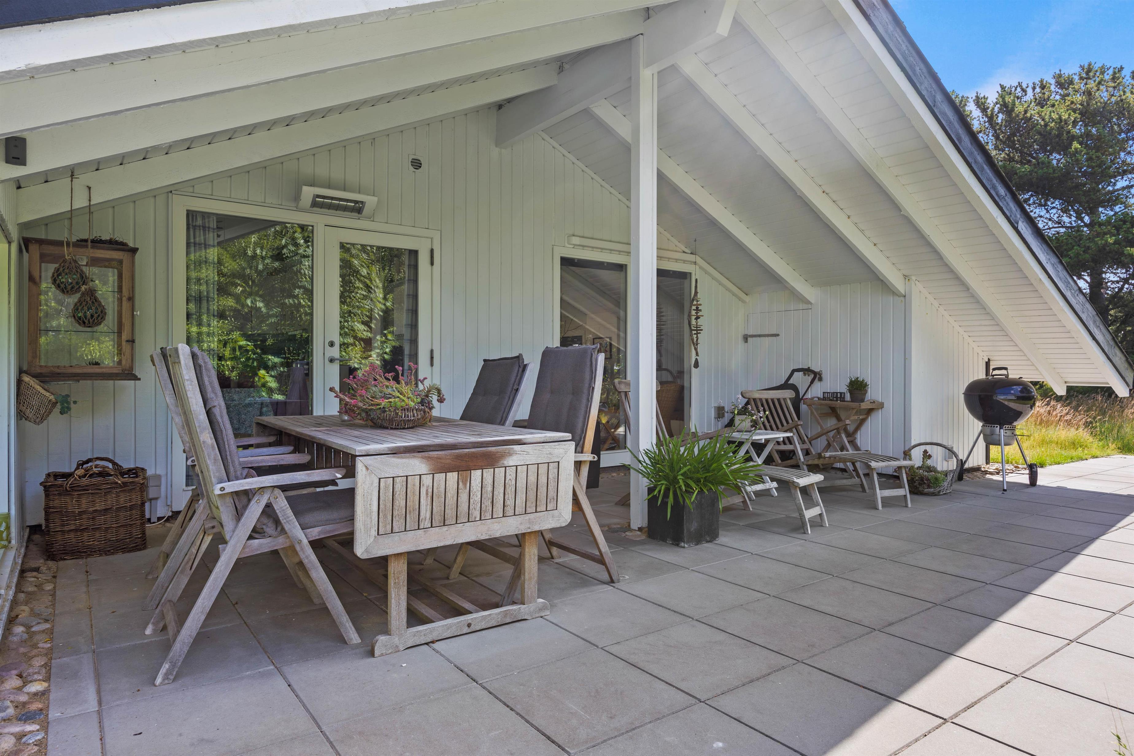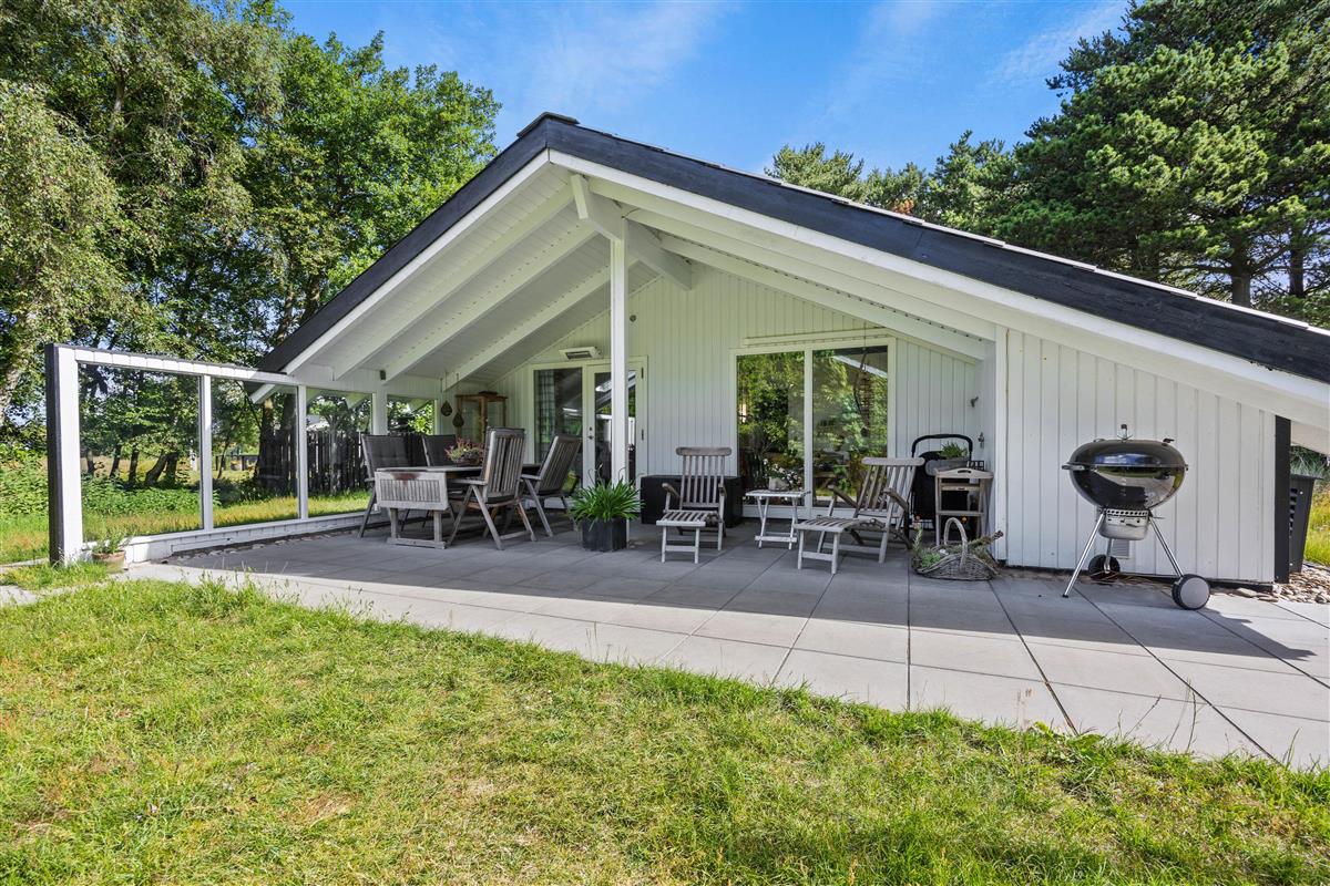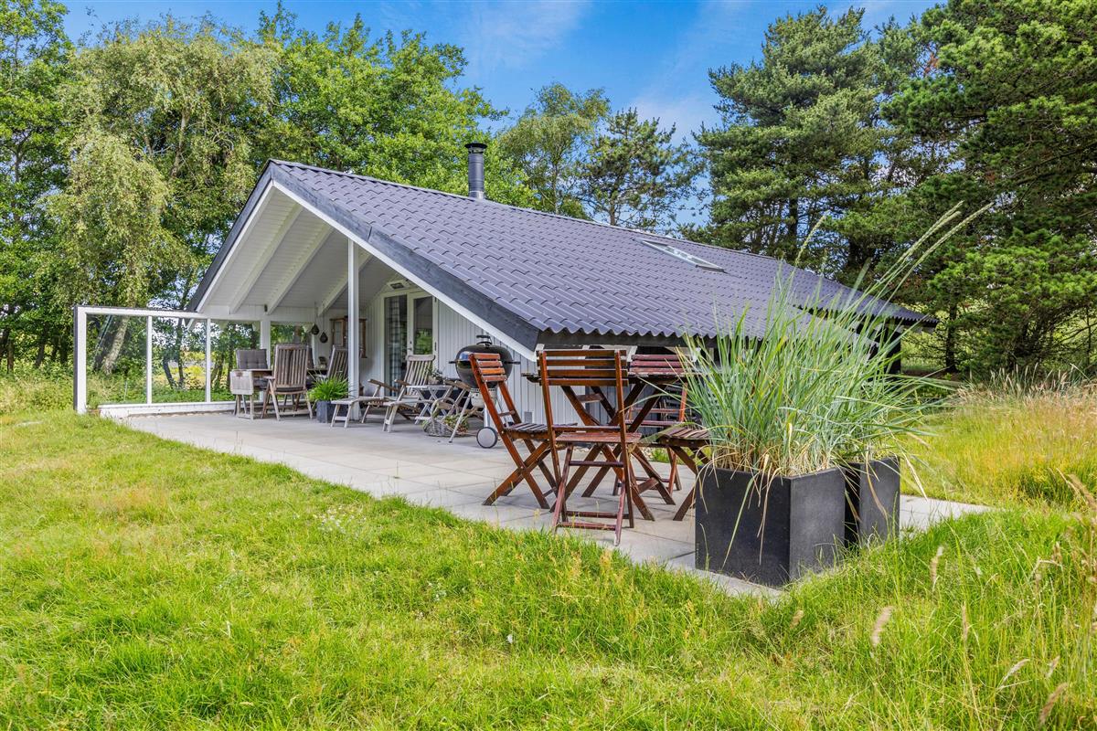A lovely terrace, partially covered, wraps around two sides of your idyllic holiday home. Surrounded by approximately 1,900 square metres of natural grounds, you can enjoy complete privacy. The shrubs and trees provide excellent shelter from the wind.