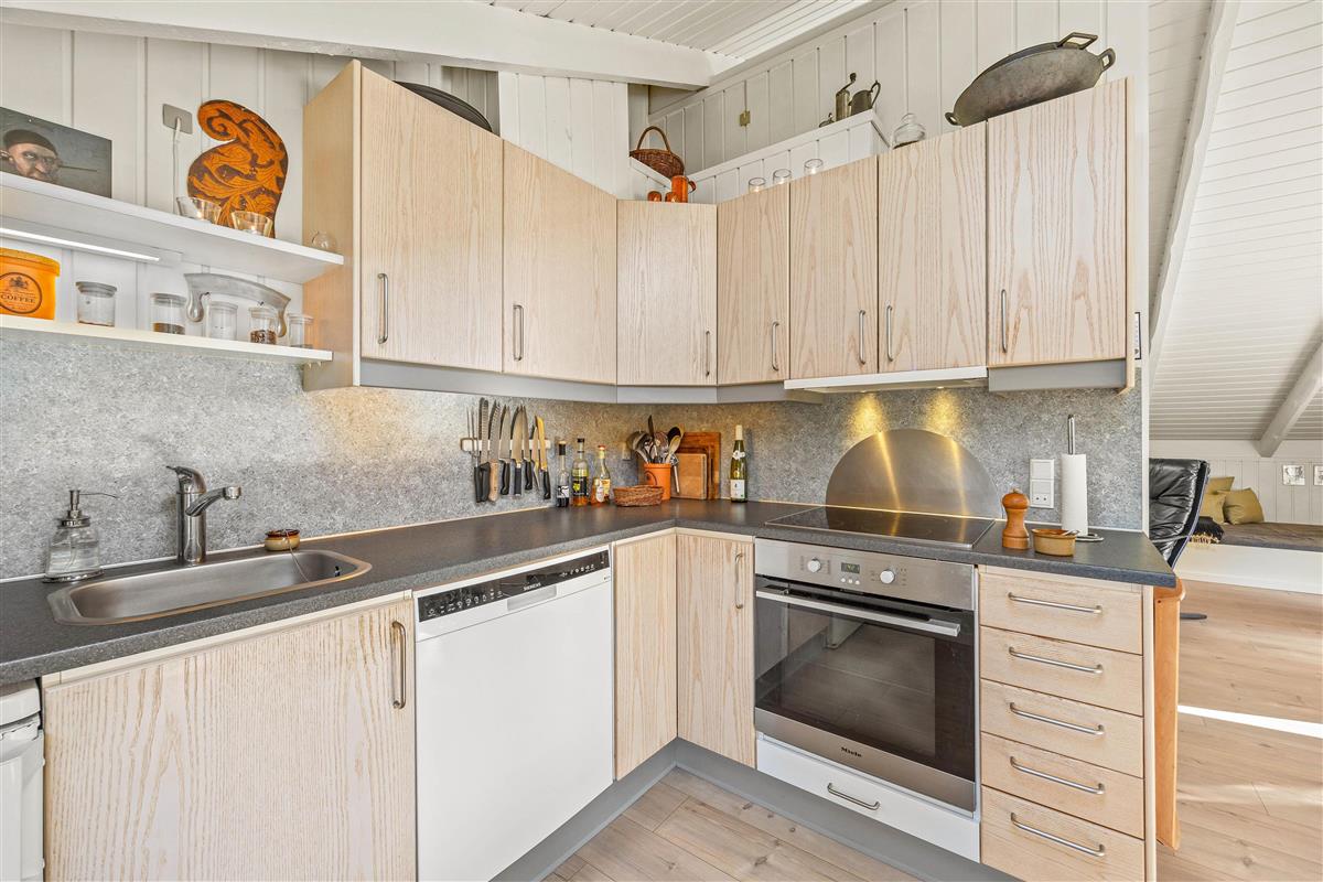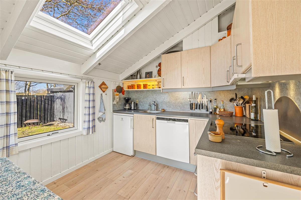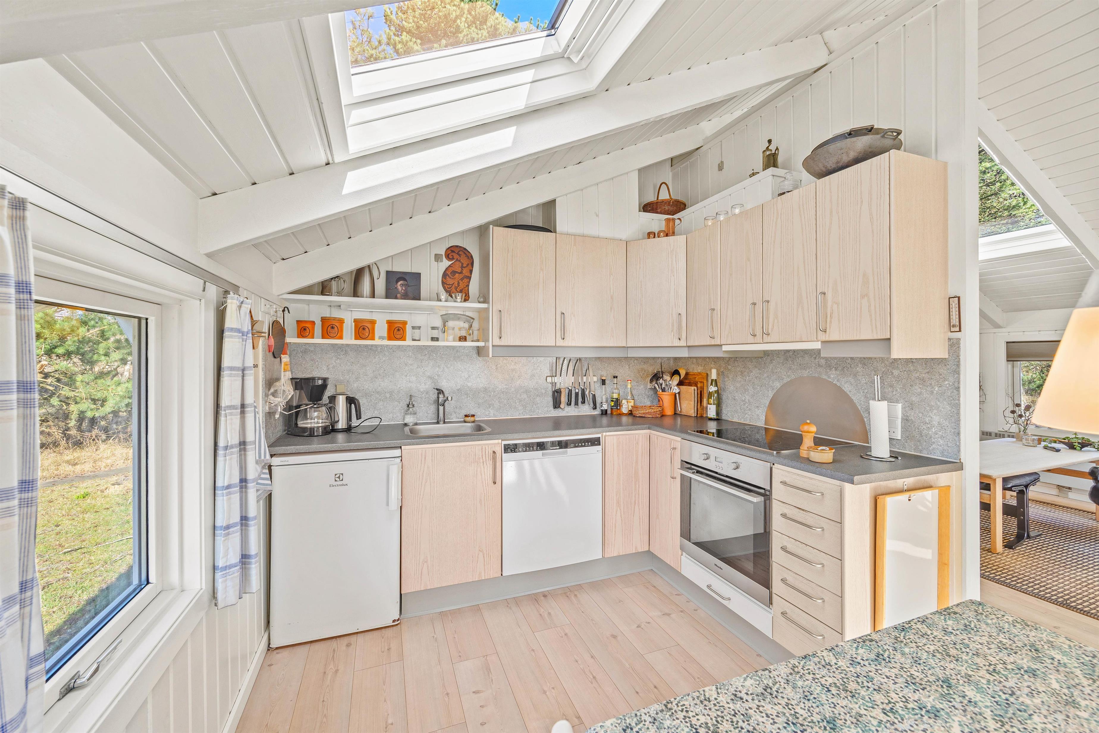 The dining area and kitchen flow openly into the living space, allowing everyone to pursue different activities while remaining together. The dining table is perfect for both game nights and sociable dinners. The well-equipped kitchen is ideal for creating delicious meals together - perhaps try a Danish-themed evening? Afterwards, the dishwasher will take care of the cleaning up.
