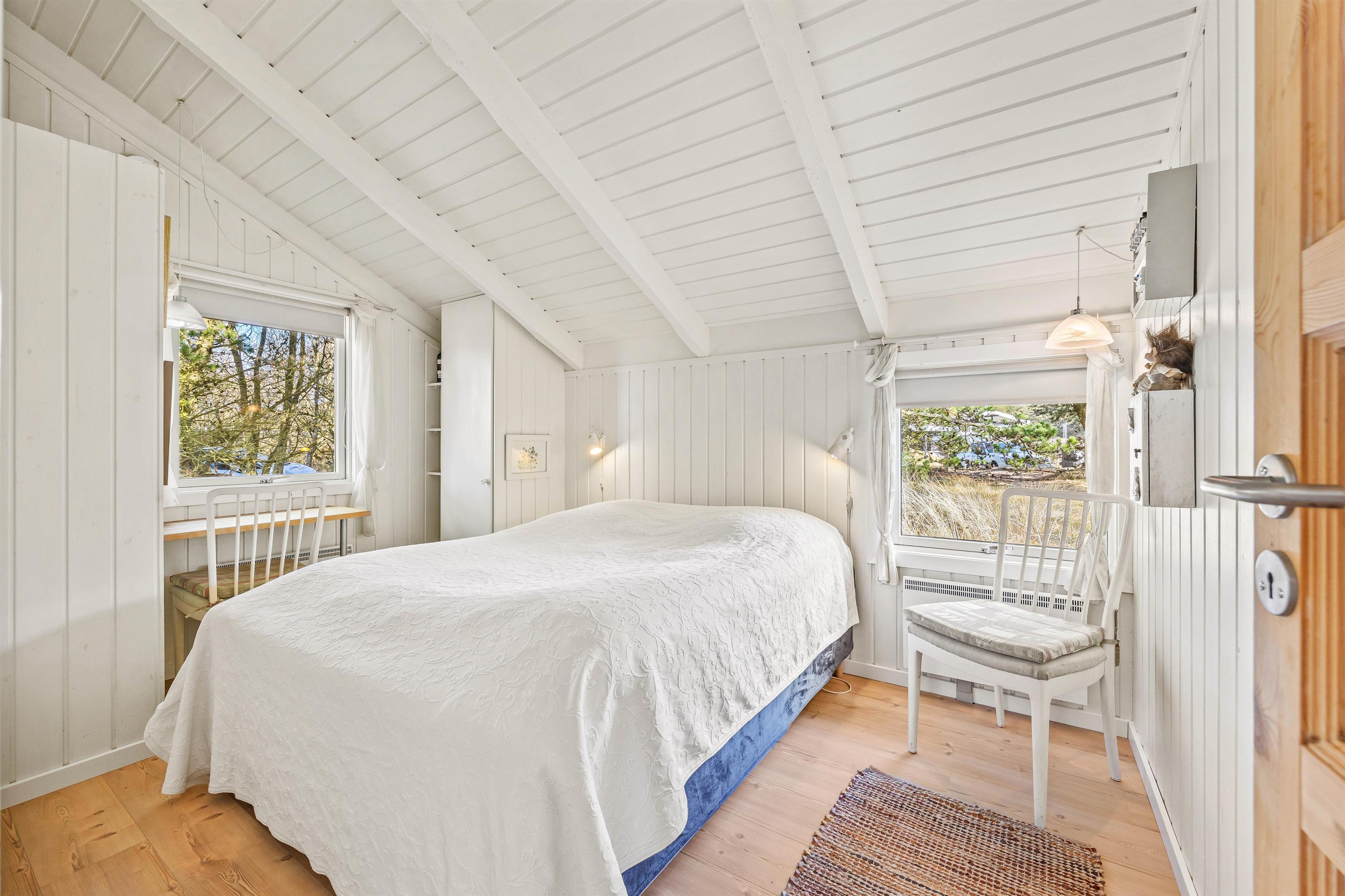 The holiday home also features a naturally lit bathroom with shower, washing machine and underfloor heating, plus two comfortable bedrooms with double beds. Here you can recharge your energy for another day of holiday activities.