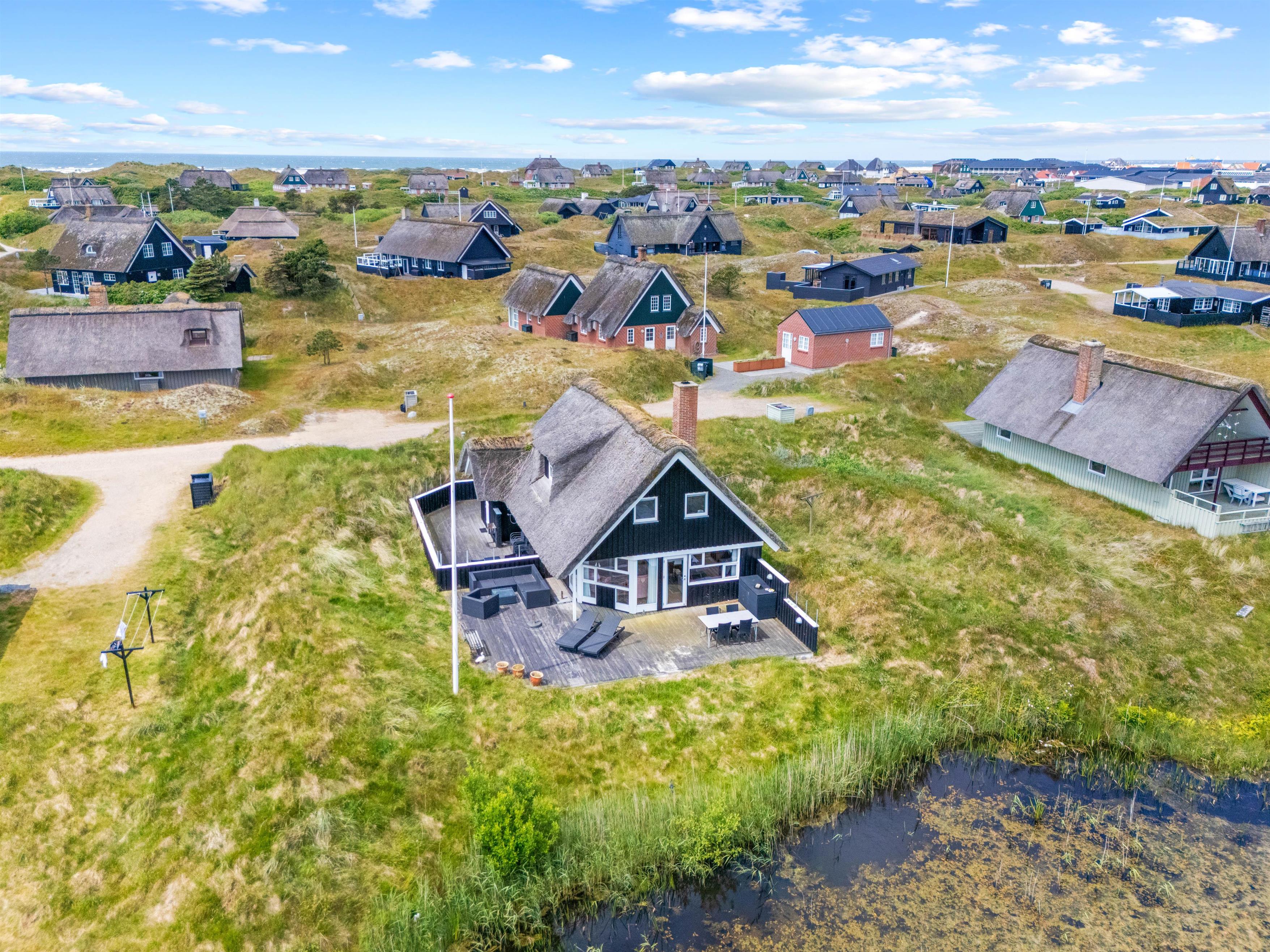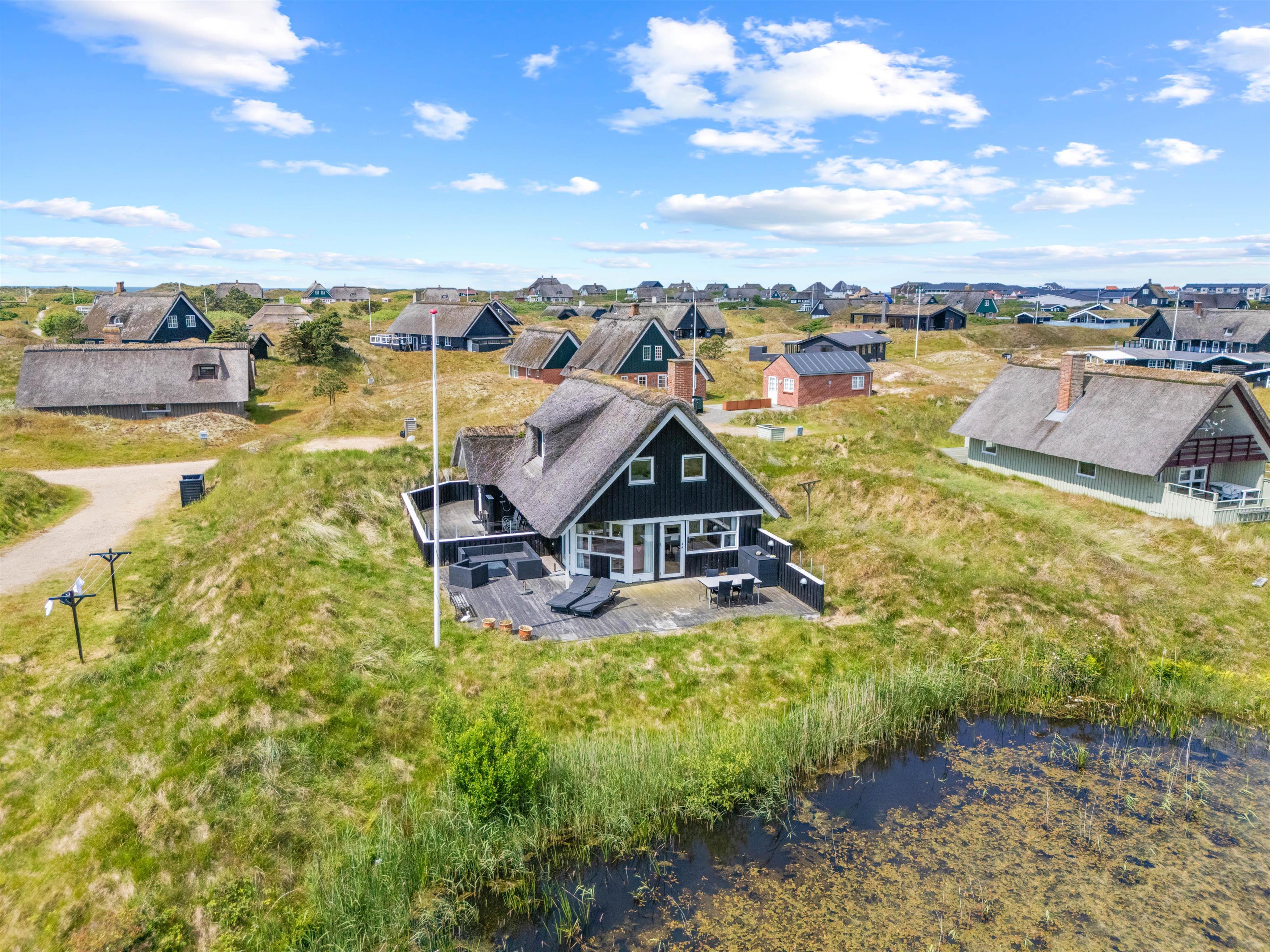 The holiday home sits within spacious natural grounds, right beside a small lake. Outdoor activities are a natural choice here. Children can play freely while you enjoy the peace and fresh air. A highlight is the proximity to the beach – just 800 metres away, where you can enjoy wonderful days sunbathing, swimming or walking.