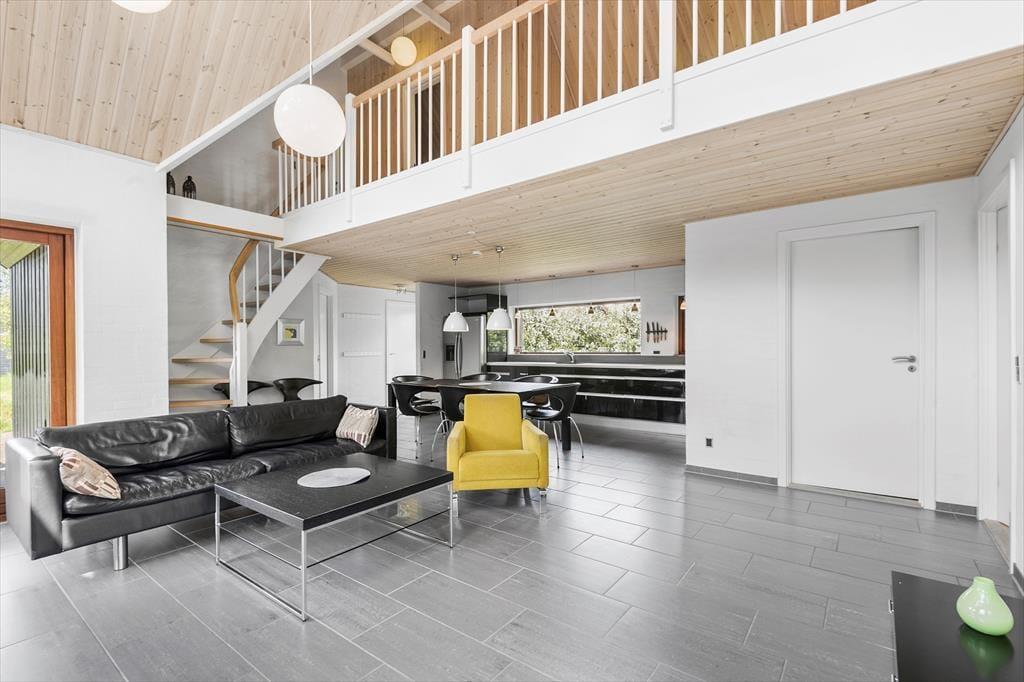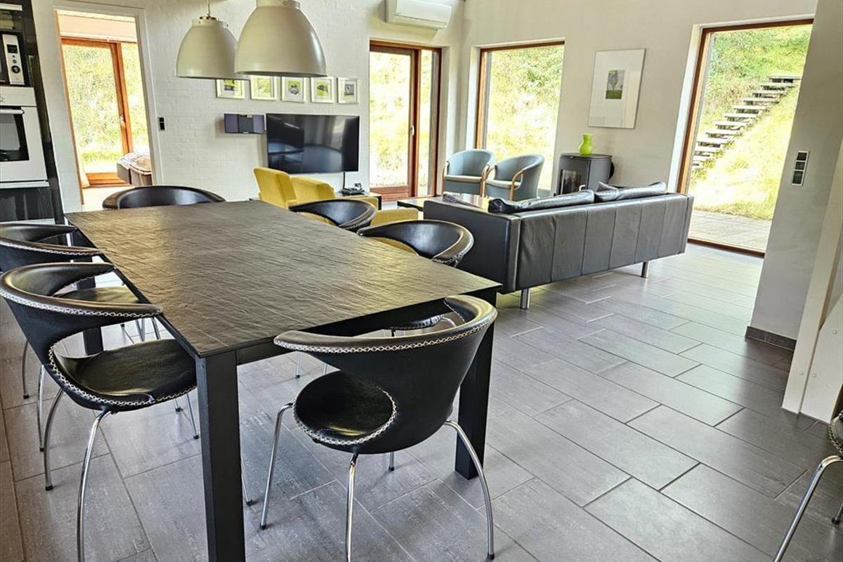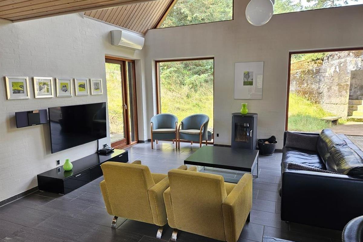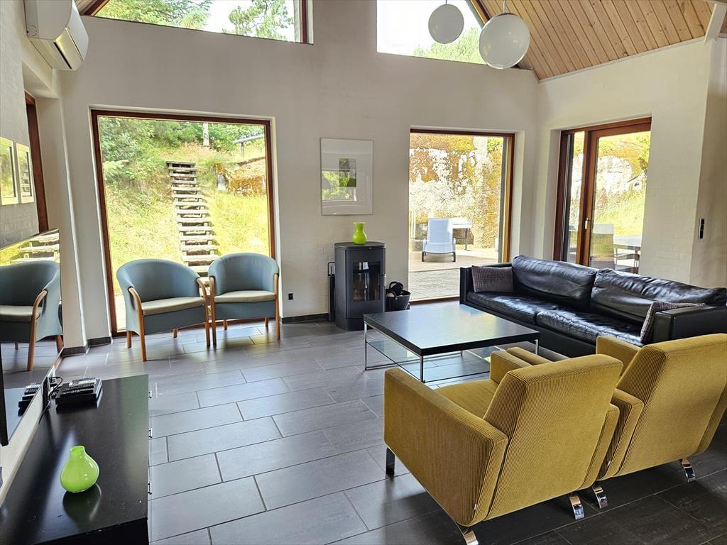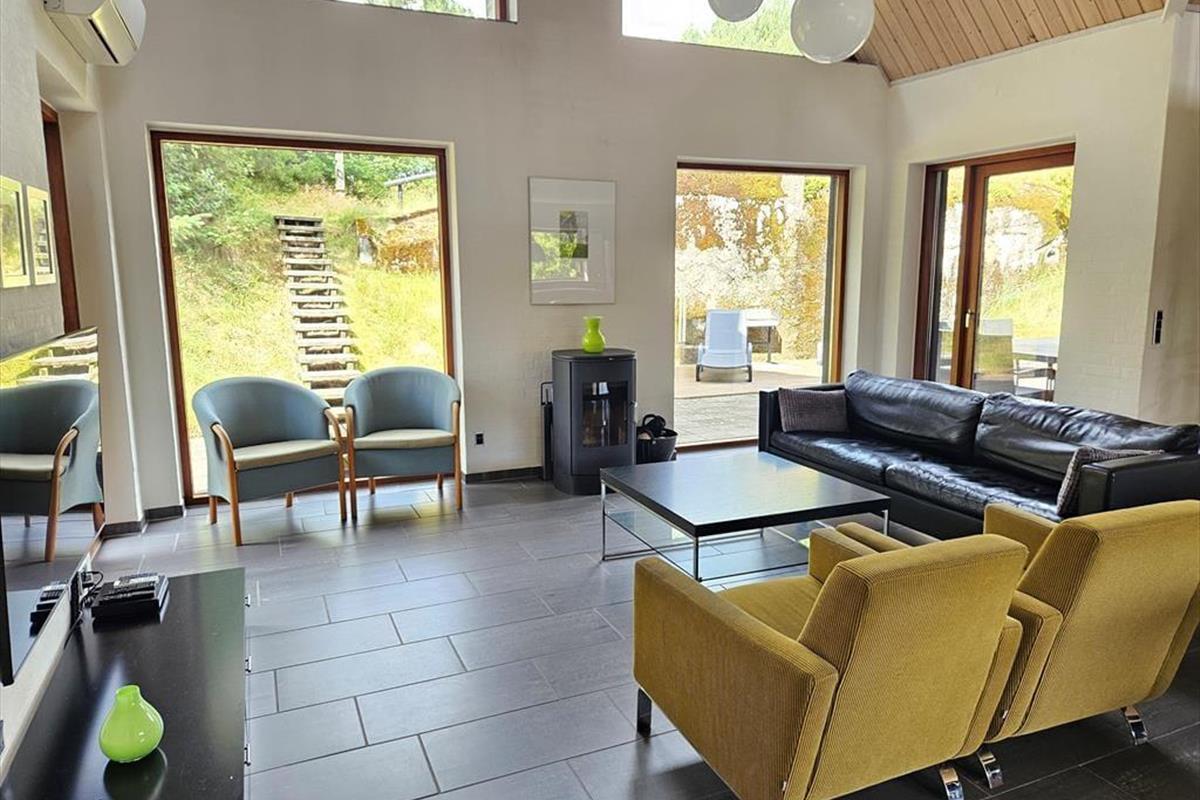 Dieses 155 m2 große Ferienhaus wurde 2007 erbaut und verfügt über eine elegante und komfortable Einrichtung mit modernen Möbeln und schönem Design. Die Raumaufteilung macht das Haus ideal für zwei Familien, denn die vier Schlafzimmer und zwei Badezimmer sind gleichmäßig auf zwei Etagen verteilt - und im Obergeschoss findest du sogar eine kleine Aussichtsstube, während das Erdgeschoss einen gemütlichen Aufenthaltsraum mit integrierter Küche bietet. Egal, wo du dich befindest, drinnen ist es wunderbar: Ist es draußen kühl, kannst du den Kamin anmachen oder dich mit warmen Whirlpoolbädern und Saunagängen entspannen. Und wenn draußen die Sonne scheint, kannst du das schöne Licht durch die Fenster genießen, es sei denn, du verbringst deine Zeit komplett draußen auf dem herrlichen Naturgrundstück.
