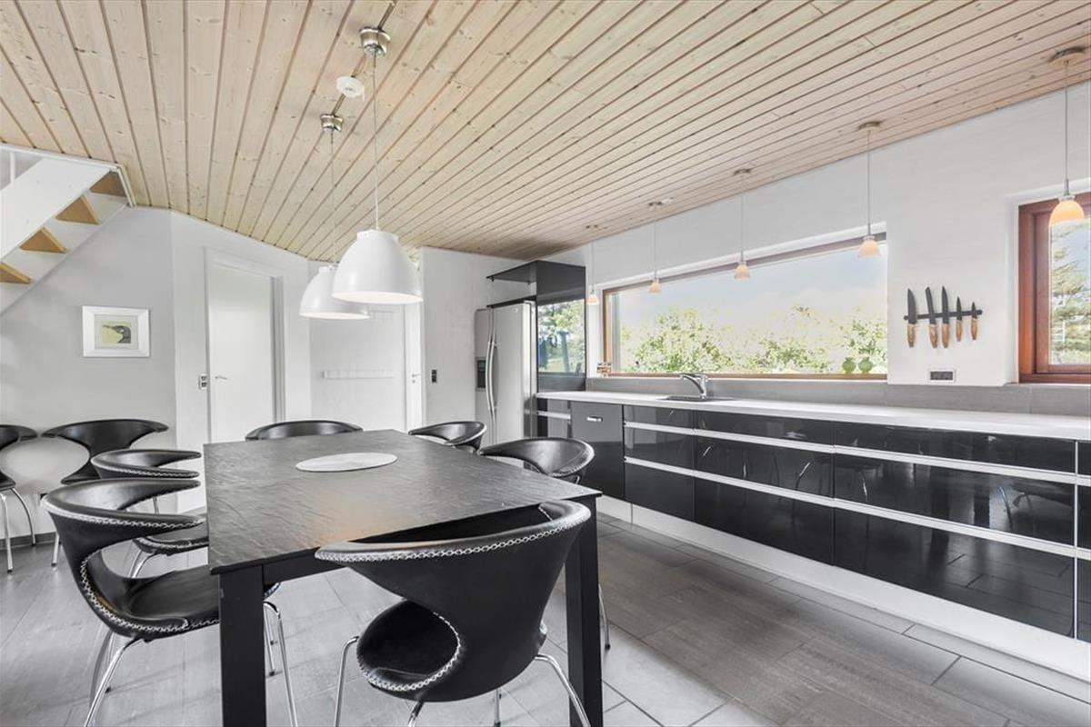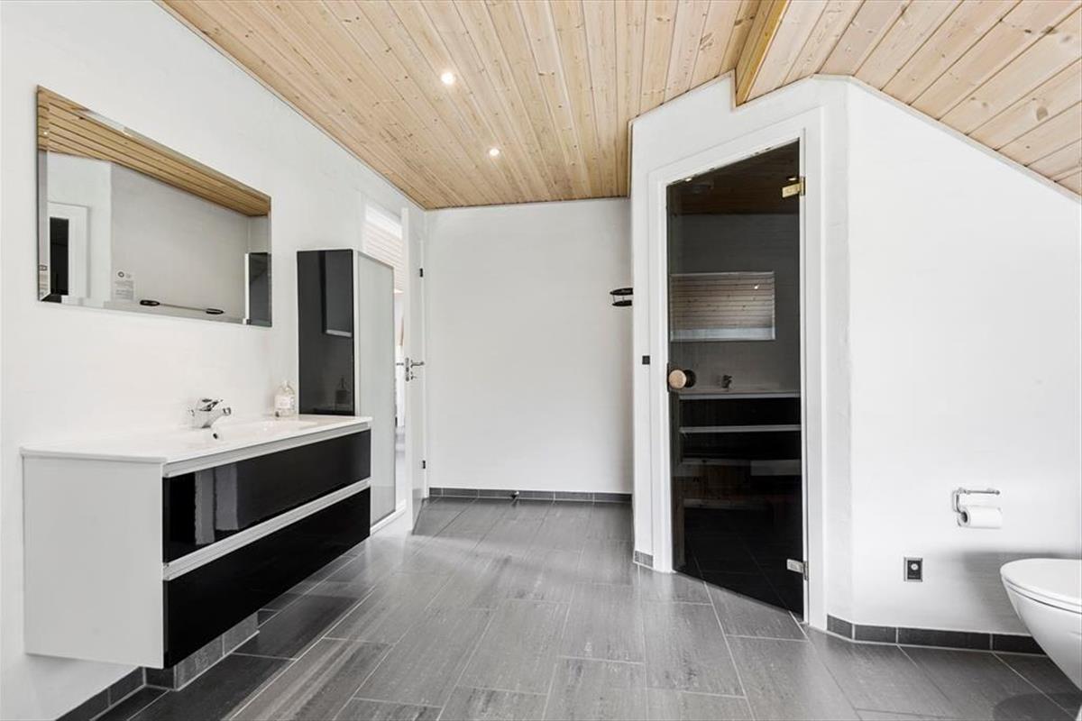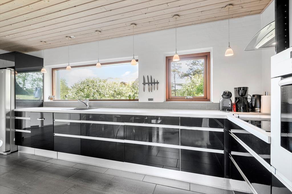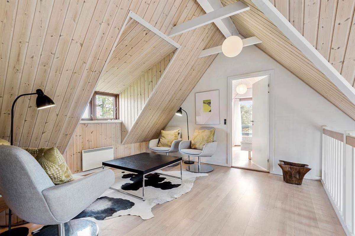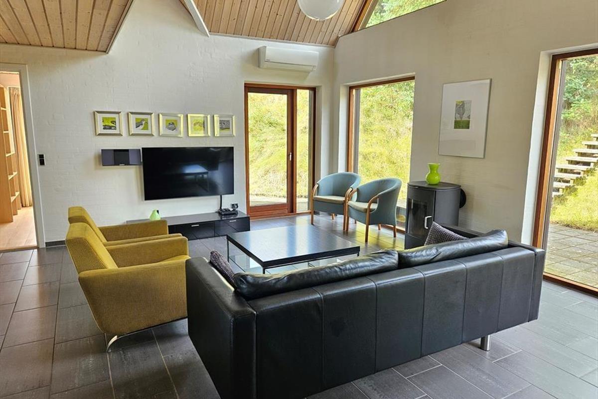 Dieses 155 m2 große Ferienhaus wurde 2007 erbaut und verfügt über eine elegante und komfortable Einrichtung mit modernen Möbeln und schönem Design. Die Raumaufteilung macht das Haus ideal für zwei Familien, denn die vier Schlafzimmer und zwei Badezimmer sind gleichmäßig auf zwei Etagen verteilt - und im Obergeschoss findest du sogar eine kleine Aussichtsstube, während das Erdgeschoss einen gemütlichen Aufenthaltsraum mit integrierter Küche bietet. Egal, wo du dich befindest, drinnen ist es wunderbar: Ist es draußen kühl, kannst du den Kamin anmachen oder dich mit warmen Whirlpoolbädern und Saunagängen entspannen. Und wenn draußen die Sonne scheint, kannst du das schöne Licht durch die Fenster genießen, es sei denn, du verbringst deine Zeit komplett draußen auf dem herrlichen Naturgrundstück.