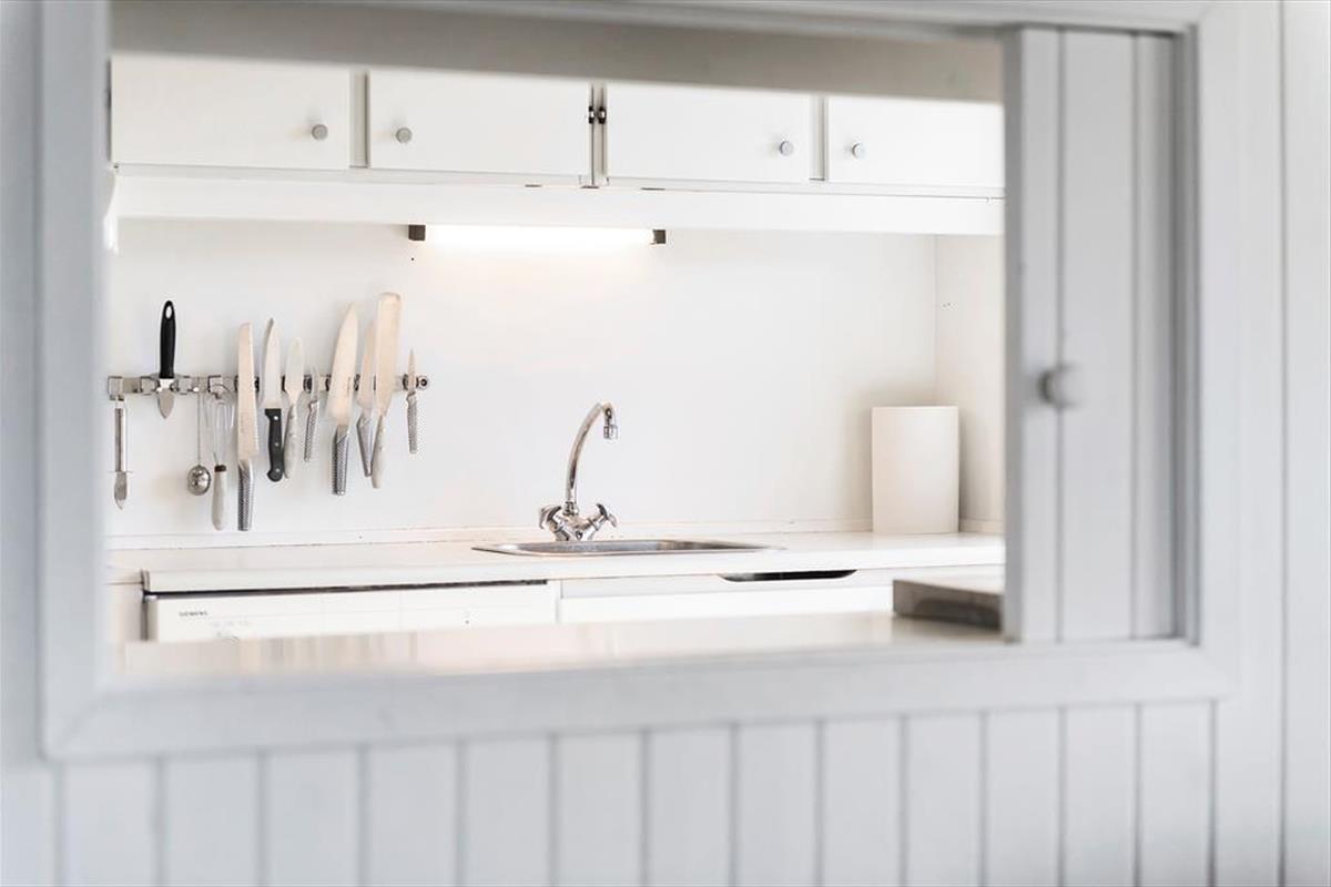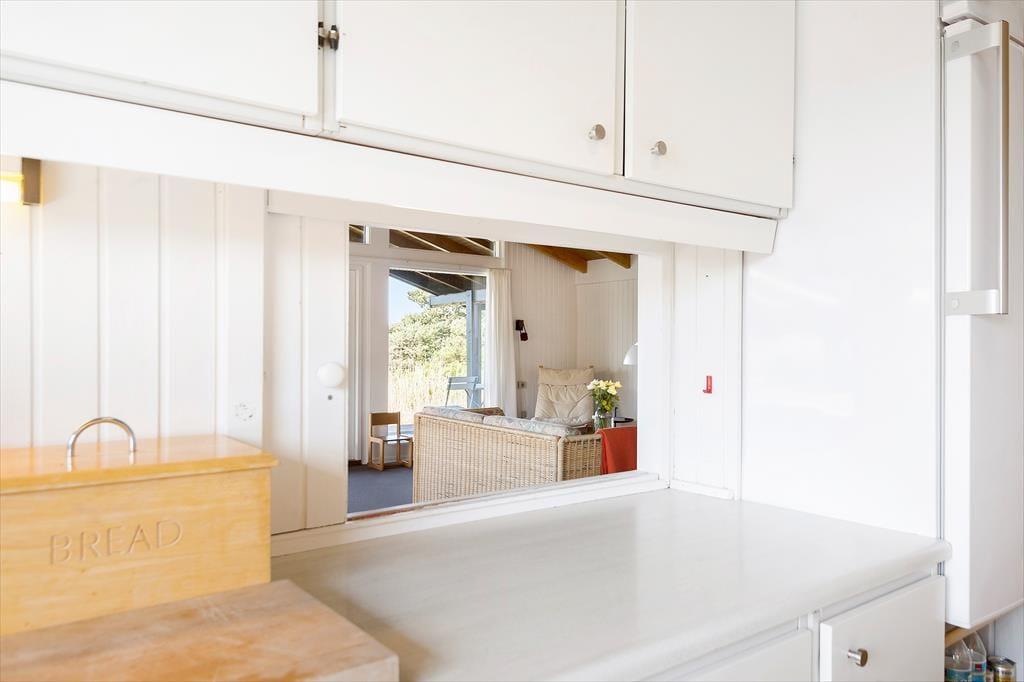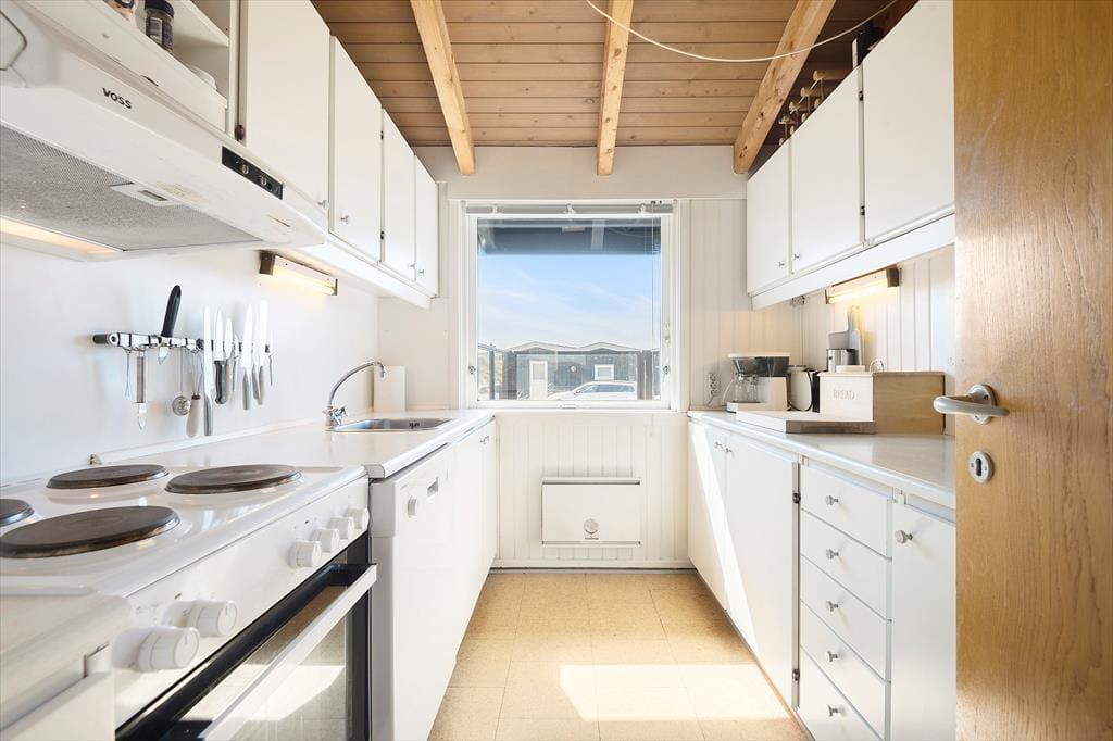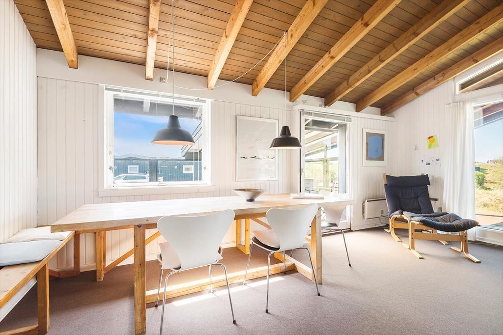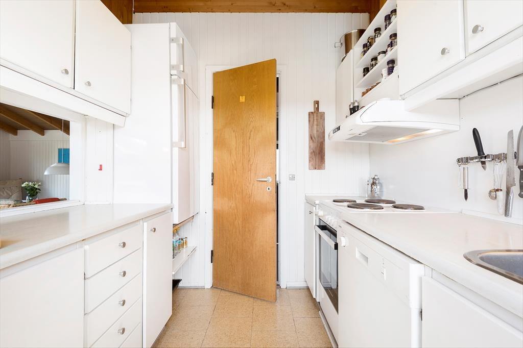 Das Ferienhaus strahlt Ruhe und Gemütlichkeit aus, und sobald du durch die Haustür trittst, spürst du die Urlaubsruhe. Das Wohnzimmer hat einen rustikalen Look mit markanten Balkenkonstruktionen an der Decke, und sowohl der Kamin als auch die komfortable Einrichtung laden dich und deine Lieben ein, die Tage ganz entspannt zu verbringen – zum Beispiel mit heißem Kaffee in den Tassen, guten Büchern oder einem spannenden Film auf der Leinwand und Chromecast für Streaming hat. Die angrenzende Küche ist gut ausgestattet, und als charmantes Detail gibt es eine kleine Luke zum Wohnzimmer, durch die du das Essen servieren kannst. Es gibt drei Schlafzimmer und auch ein Duschbad, so dass insgesamt sechs Personen Platz finden können.