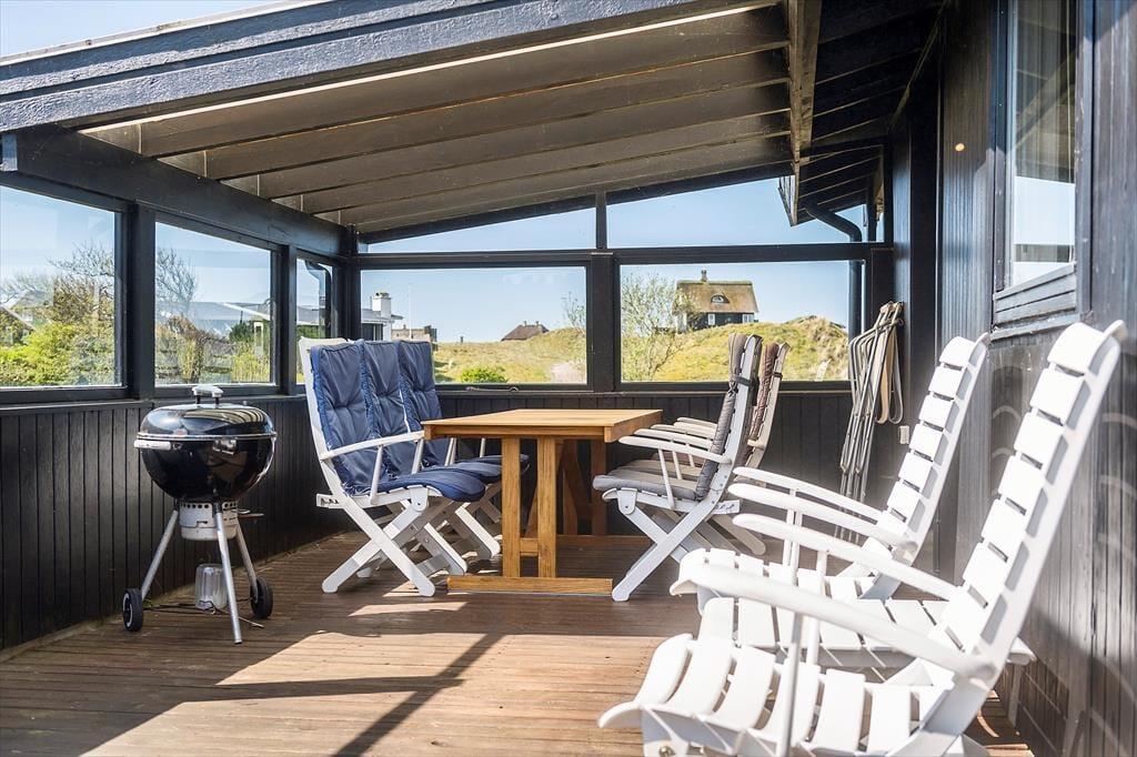 Dieses schöne Ferienhaus liegt am Ende einer Sackgasse in der Nähe von Fanø Bad und der Nordsee. Von sowohl dem Wohnzimmer als auch der Terrasse aus können Sie die malerische Landschaft bewundern, in der strohgedeckte Holzhäuser zwischen den mit Strandhafer bewachsenen Dünen hervorschauen. Mit anderen Worten haben Sie hier auf Nonboevej 29 einen schönen und ruhigen Rahmen für Ihr Urlaubsleben.