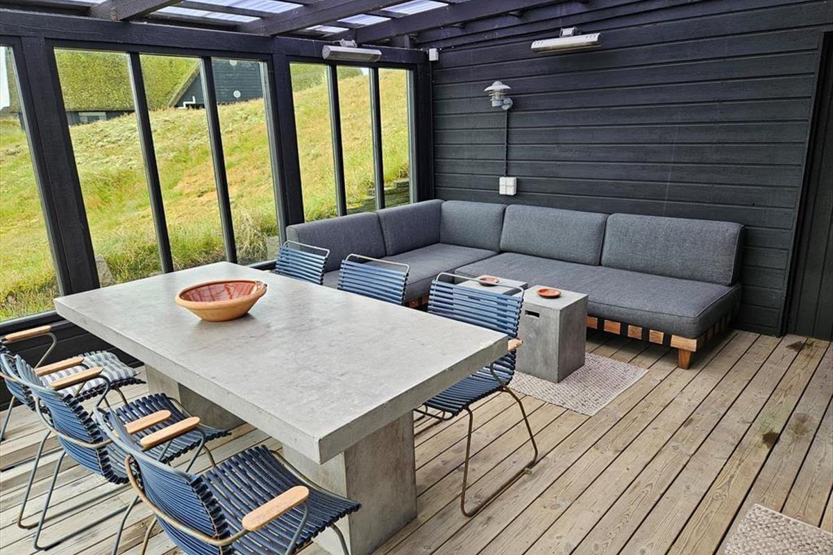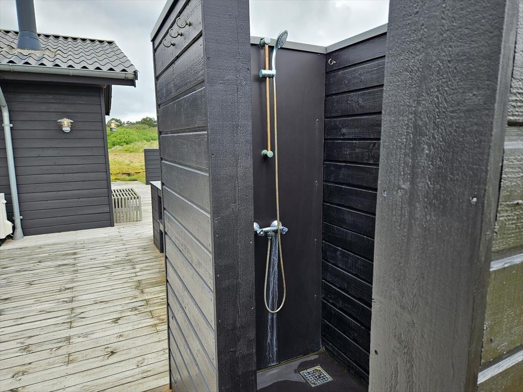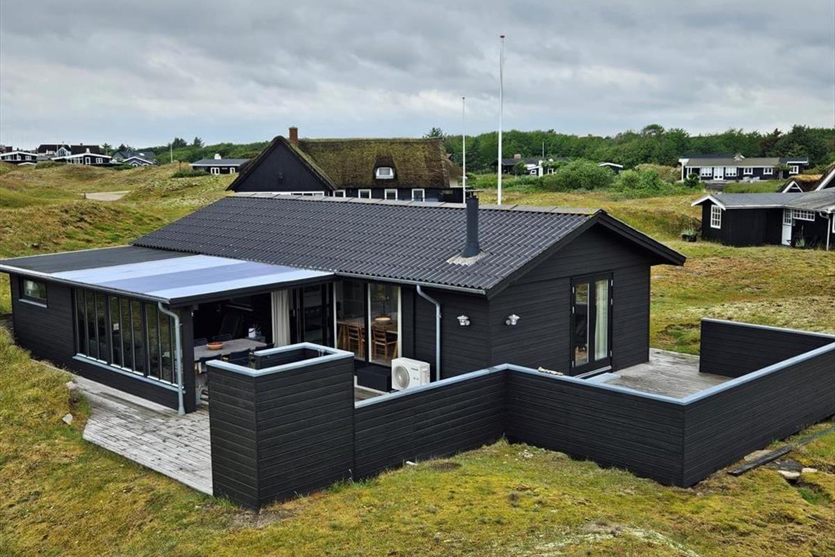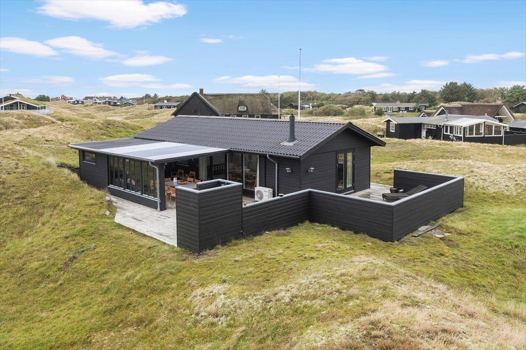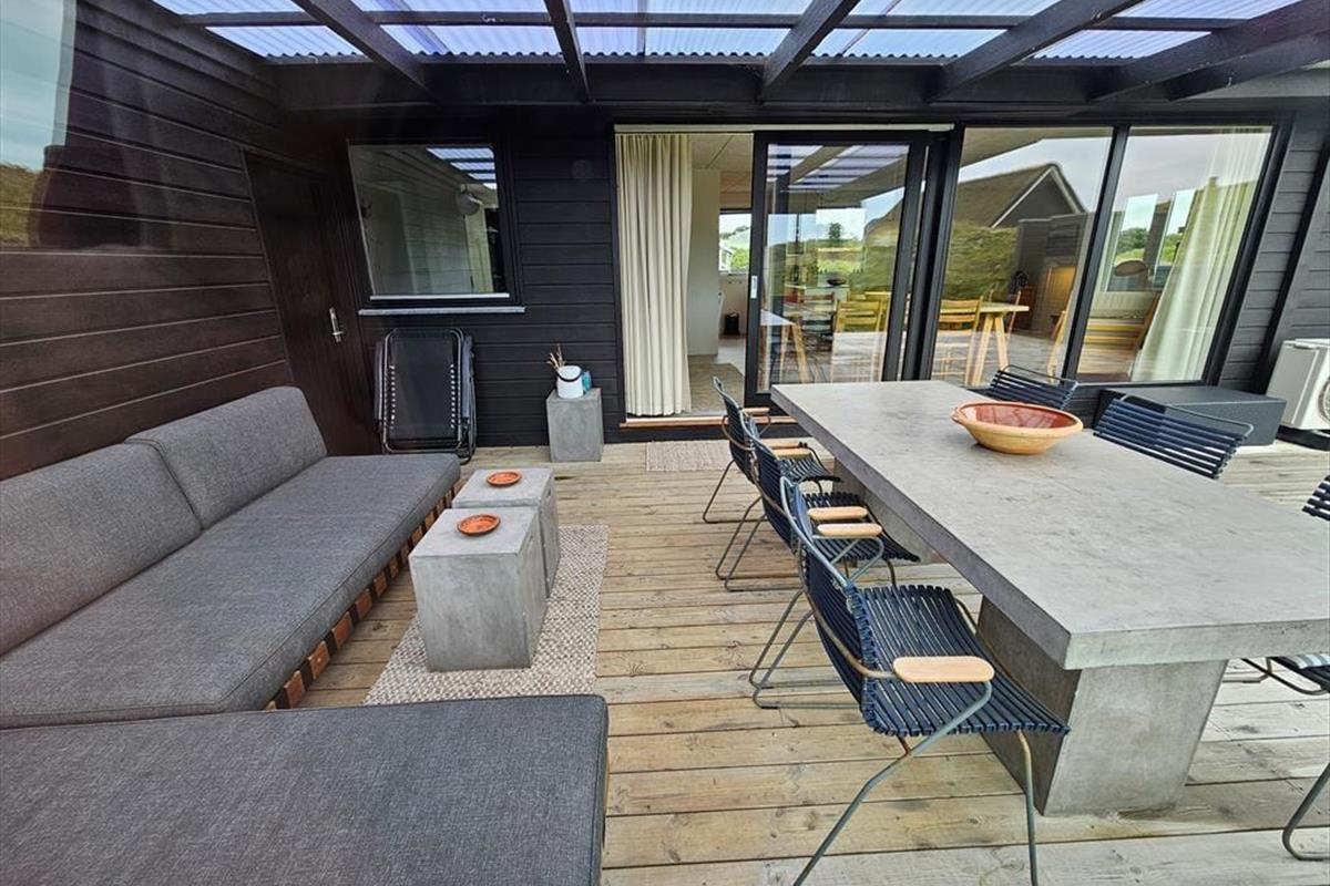 Die moderne Terrassenlandschaft des Ferienhauses erstreckt sich über 120 m² und bietet dir zahlreiche Möglichkeiten, das Sommerleben bei fast jedem Wetter zu genießen. Viele Sonnenplätze und gut geschützte Aufenthaltsbereiche stehen zur Auswahl, und wenn ein kleiner Regenschauer vorbeizieht, ist es herrlich, auf der überdachten Terrasse mit Loungemöbeln und Gartentisch zu sitzen. Der Blick auf die Dünen ist beeindruckend – sowohl nach einer Dusche im Freien als auch beim Kochen mit lokalen Zutaten in der schicken Außenküche.