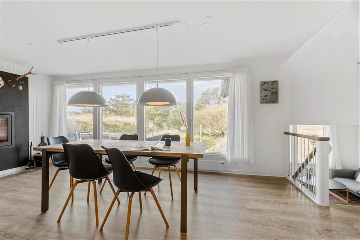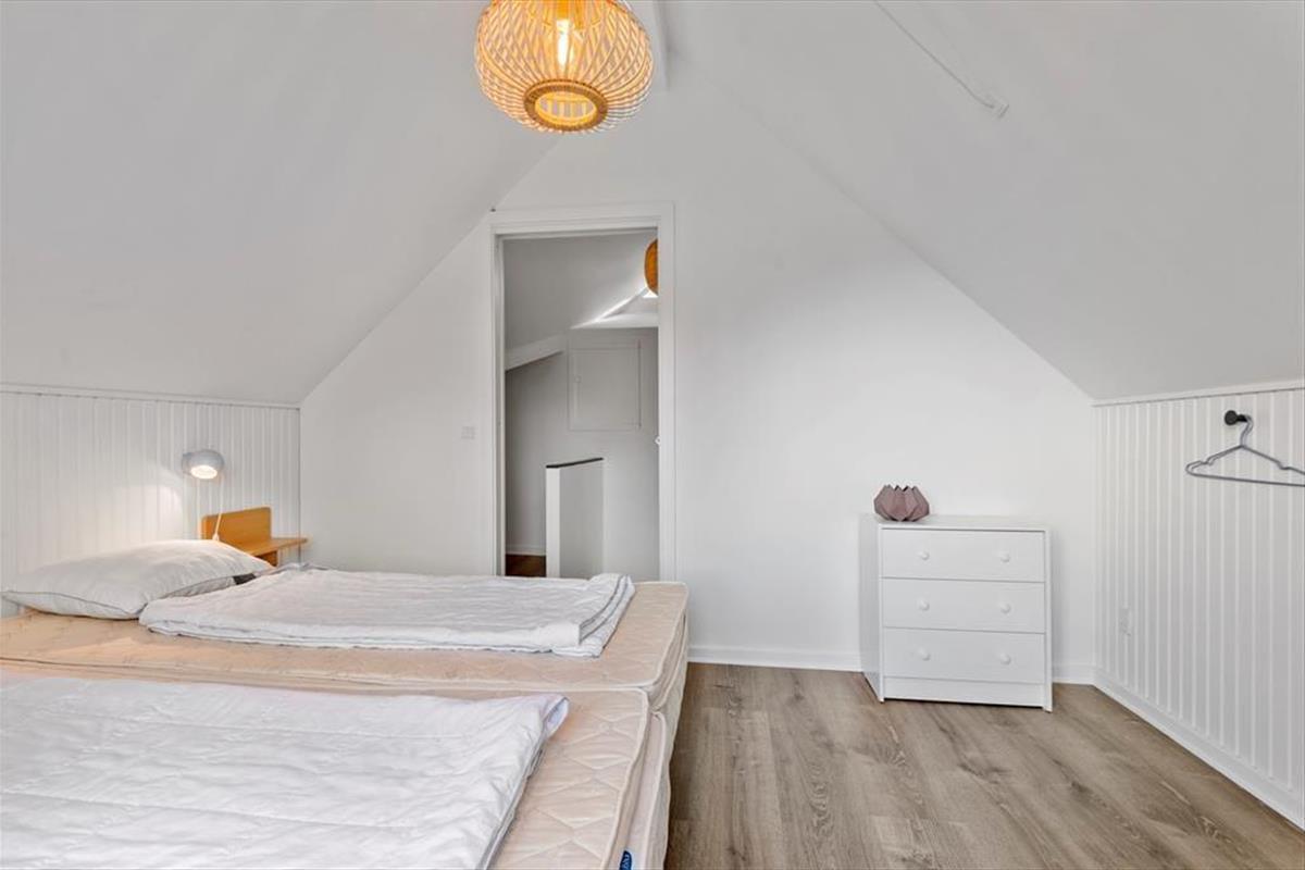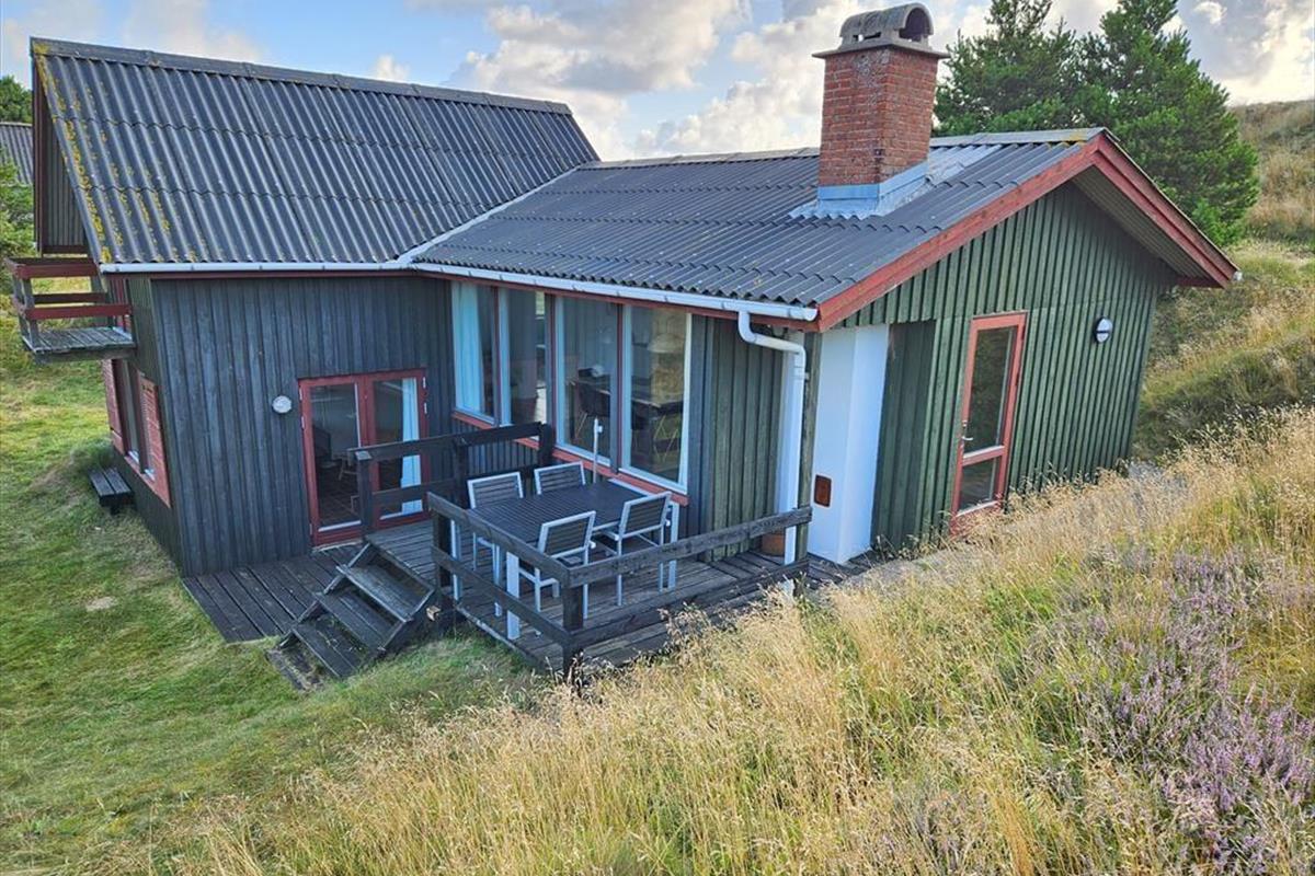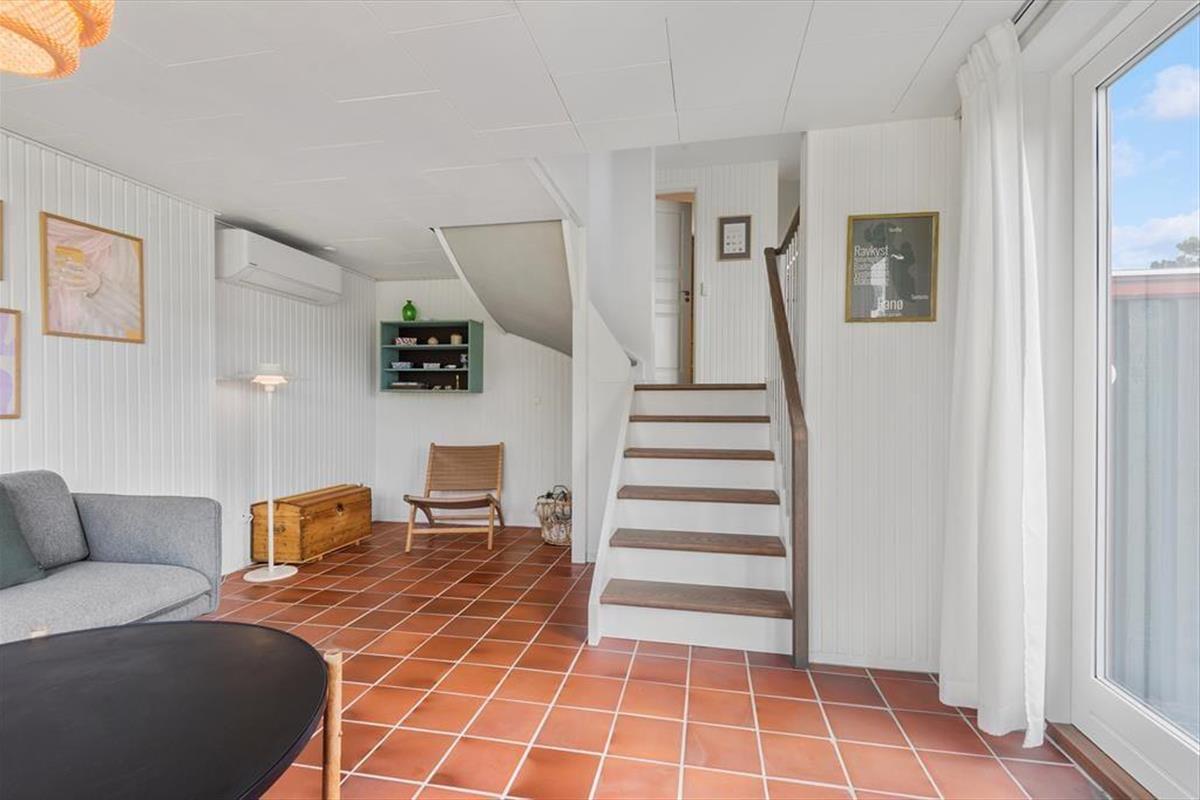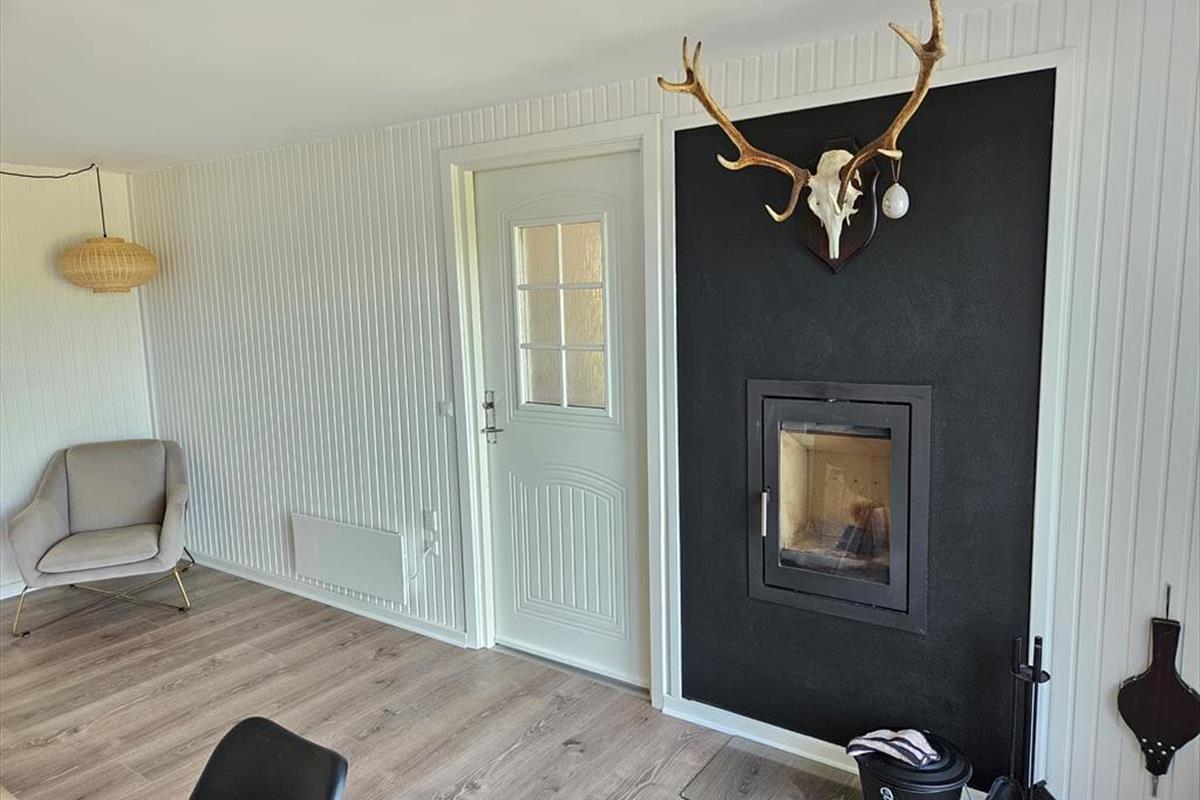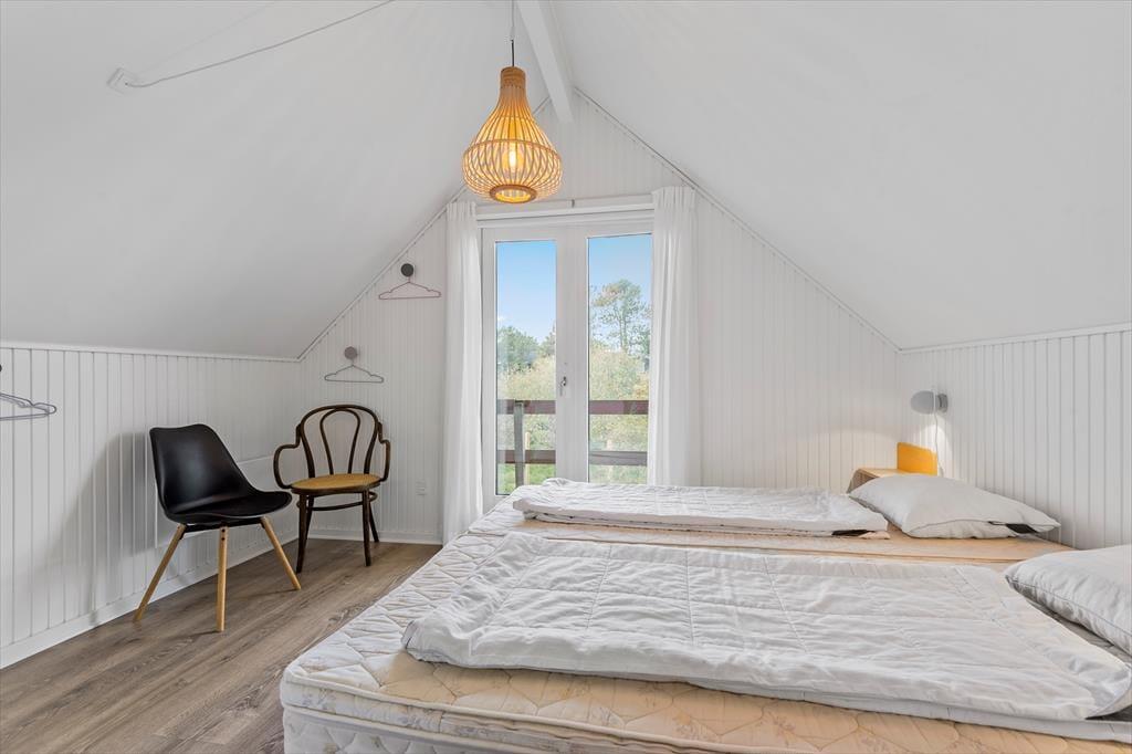 Vom Schlafzimmer im ersten Stock hast du Zugang zu einem kleinen Balkon, also wenn du den Tag mit frischer Luft und Blick auf das Naturgrundstück beginnen möchtest, ist das der richtige Ort für dich. Und wenn das Wetter warm und sommerlich ist, kannst du deinen Morgenkaffee auf einer der drei schönen Terrassen rund um das Ferienhaus genießen. Die erhöhte Holzterrasse wirst du vielleicht besonders lieben, denn es ist herrlich, hier an einem hellen Sommerabend zu sitzen und auf die hügelige Landschaft zu blicken. Auf dem Grundstück gibt es außerdem eine Schaukel und einen Sandkasten für die Kinder. Die ruhige Umgebung der Sackgasse wird sowohl große als auch kleine Familienmitglieder erfreuen.