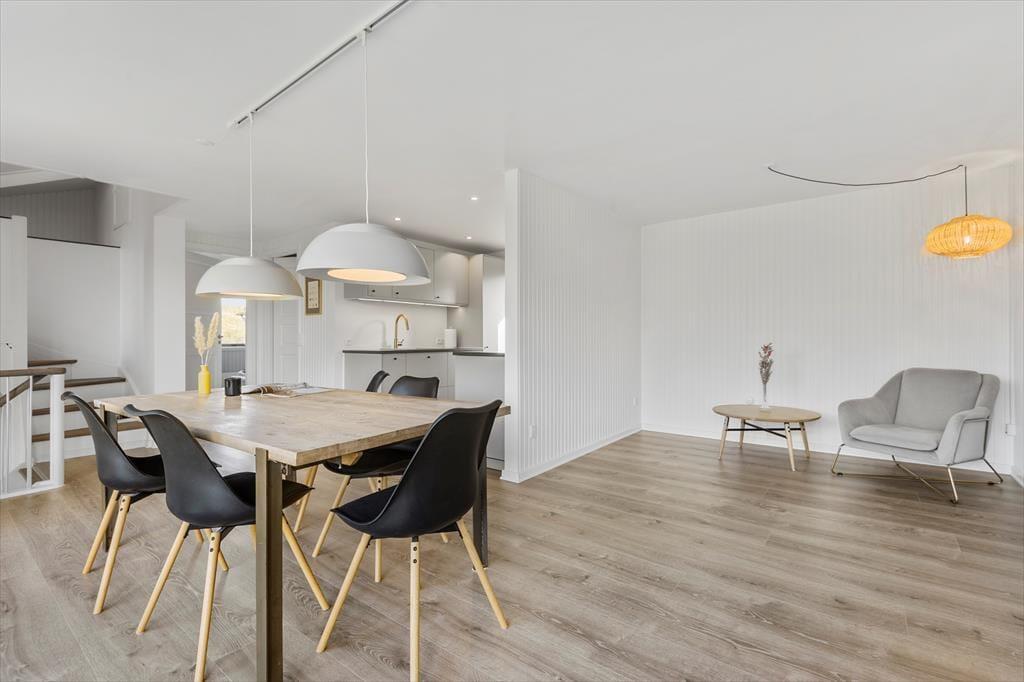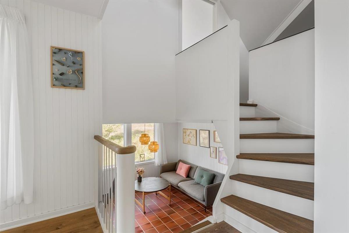 Dieses Haus auf Norges Fjelde 9 ist eindeutig kein Standardhaus, denn die Architektur ist an das hügelige Naturgrundstück angepasst, sodass es mehrere Ebenen und große Fenster mit Blick auf die wunderschöne Landschaft gibt.Der besondere Grundriss bedeutet auch, dass du große Flexibilität hast, je nachdem, ob ihr zusammen oder jeder für sich mit einem guten Buch, einem Podcast oder einem Film auf dem Flachbildfernseher entspannen möchtet. Im abgesenkten Wohnzimmer gibt es einen gefliesten Boden mit Fußbodenheizung, und im zentralen Aufenthaltsraum steht ein Kaminofen für die kühleren Tage und Abende des Jahres bereit. Das Erdgeschoss bietet ein Duschbad und ein Schlafzimmer, und die Wendeltreppe des Hauses führt zu einem weiteren Schlafzimmer im ersten Stock. Alles in allem bekommst du eine schöne und stimmungsvolle Ferienwohnung für vier Personen!