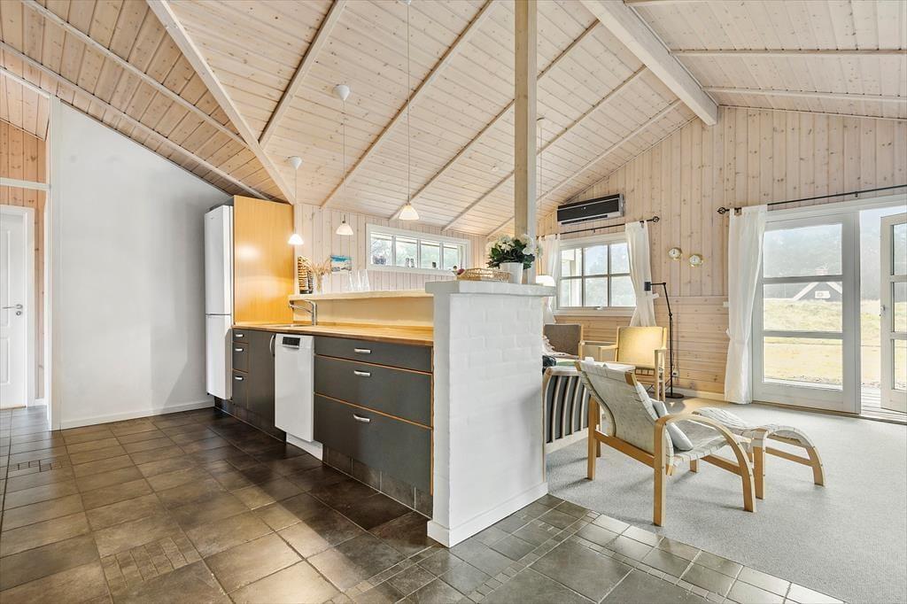 Drinnen wirst du von einer hellen und freundlichen Atmosphäre empfangen, in der der gemütliche Wohnbereich den natürlichen Treffpunkt des Hauses bildet. Hier kannst du dich nach einem langen Tag am Strand auf dem Sofa entspannen, während im Hintergrund das Kaminfeuer knistert. Die offene Küche macht es einfach, die Mahlzeiten für den Urlaub zuzubereiten, und am Esstisch kann die Familie zu langen Abendessen und gemütlichen Gesprächen zusammenkommen. Nach einem erlebnisreichen Tag kannst du dich mit einem entspannenden Bad im hauseigenen Whirlpool oder einem wohltuenden Saunagang verwöhnen – pure Erholung für Körper und Seele.