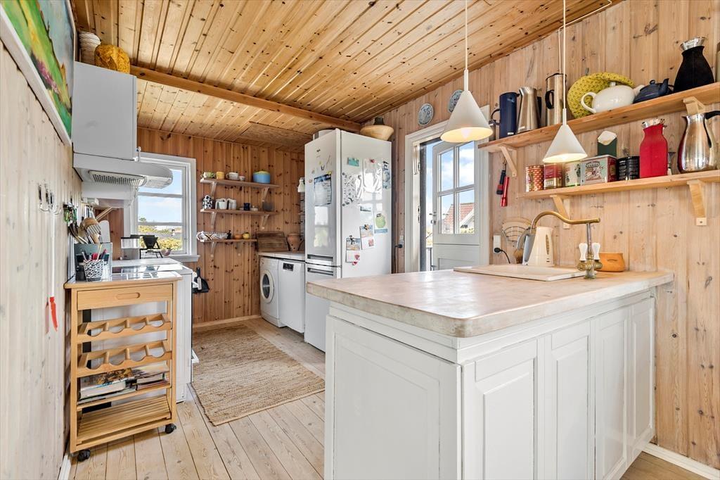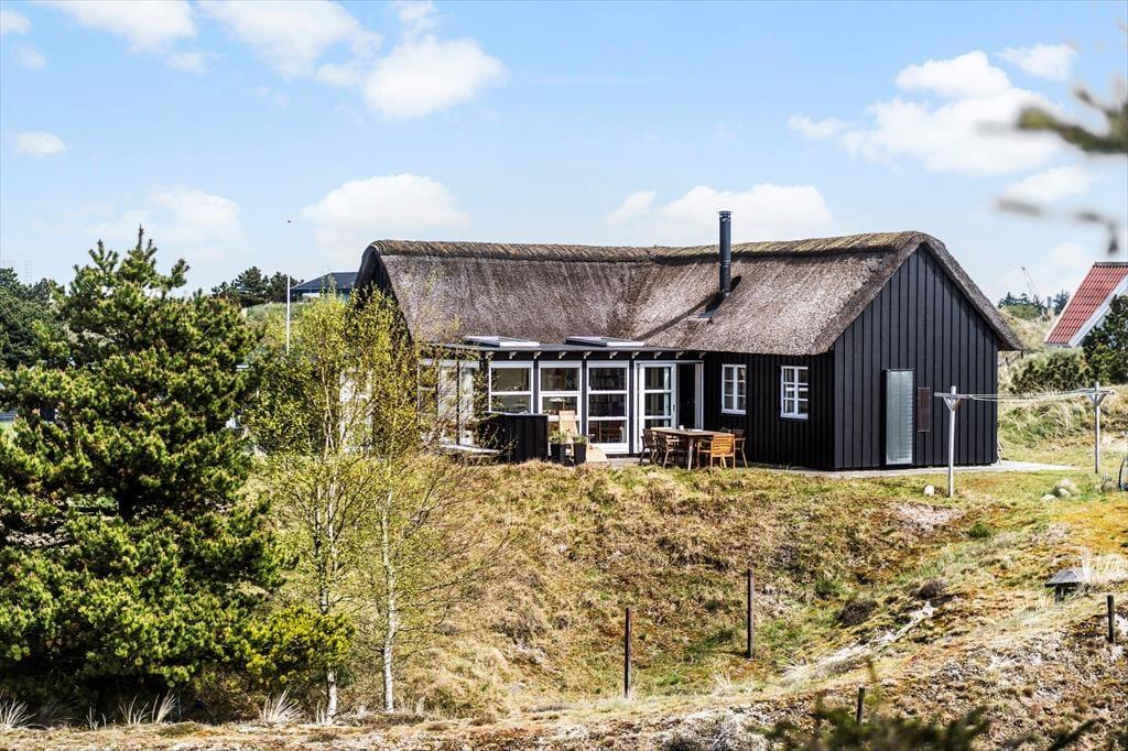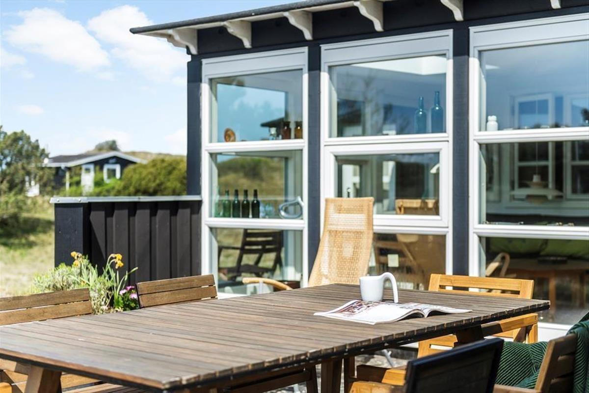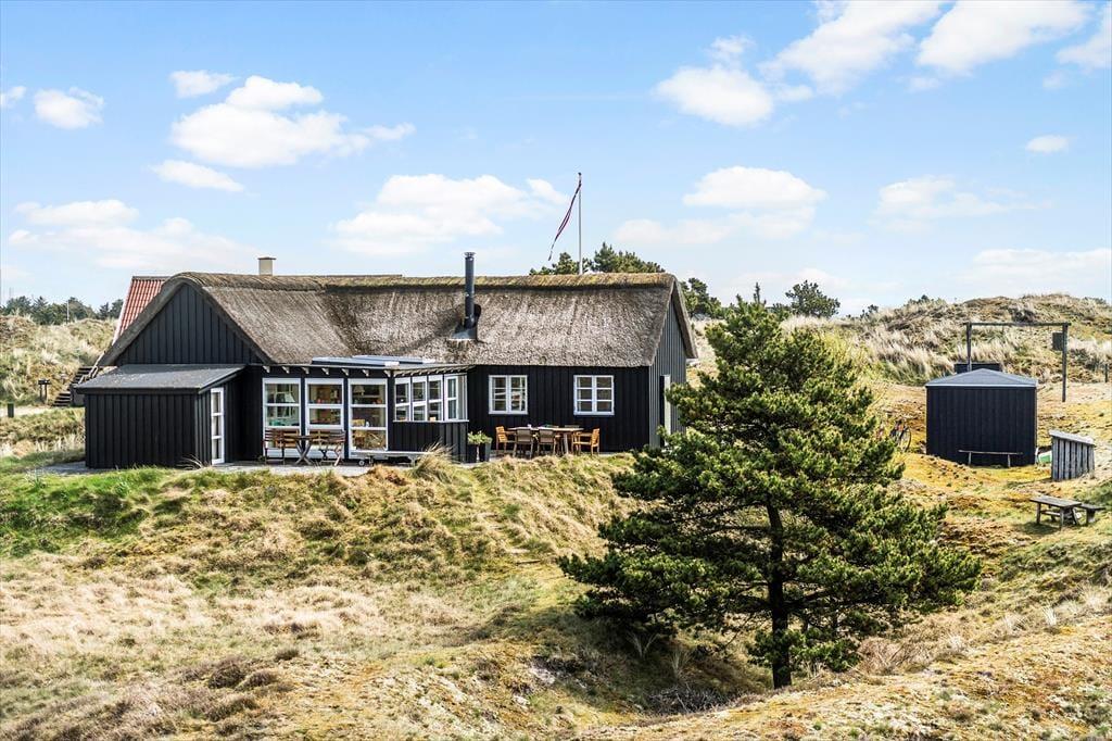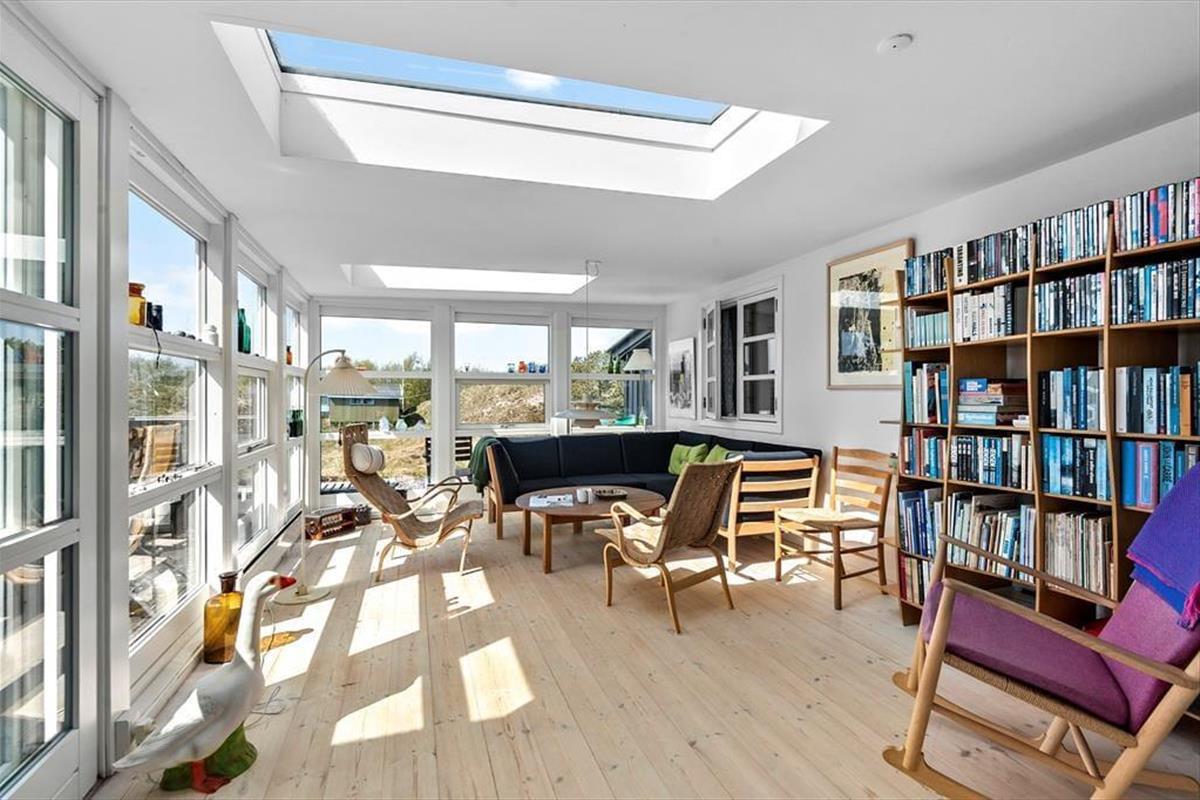 Draußen ist das Ferienhaus von Terrassen umgeben, die dir je nach Tageszeit und Wetter Sonne, Schatten oder Schutz bieten. Hier kannst du den Morgen mit einer frisch gebrühten Tasse Kaffee in der stillen Morgenluft beginnen oder den Abend mit einem Glas Wein ausklingen lassen, während du im Hintergrund das Rauschen des Meeres hörst. Die verschiedenen Terrassen bieten reichlich Gelegenheit, dass jeder seinen Lieblingsplatz findet – sei es mit einem guten Buch, geselligem Beisammensein oder einem Mittagsschläfchen in der Sonne. Die natürliche Bepflanzung rund um das Haus rundet die Ferienatmosphäre ab und sorgt dafür, dass du dich eins mit der schönen Natur Fanøs fühlst.