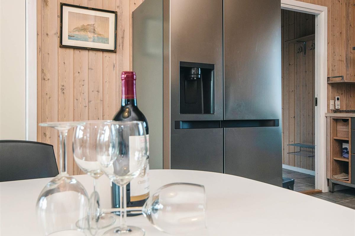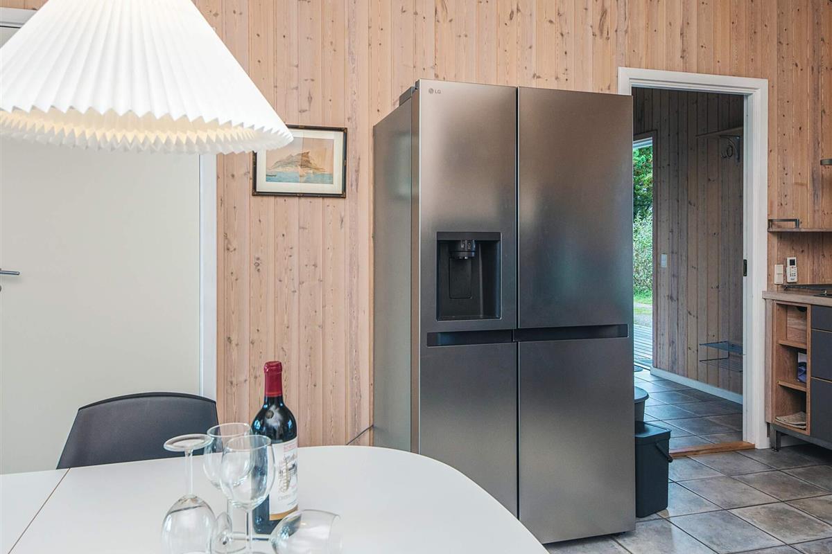 In der Küche steht ein amerikanischer Kühlschrank mit Eiswürfelmaschine