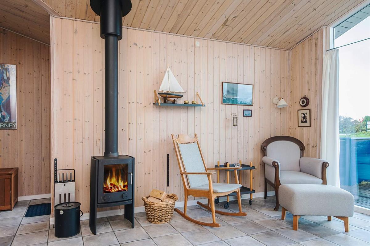 und mit einem Holzofen eingerichtet. In der Küche, im Wohnzimmer und im