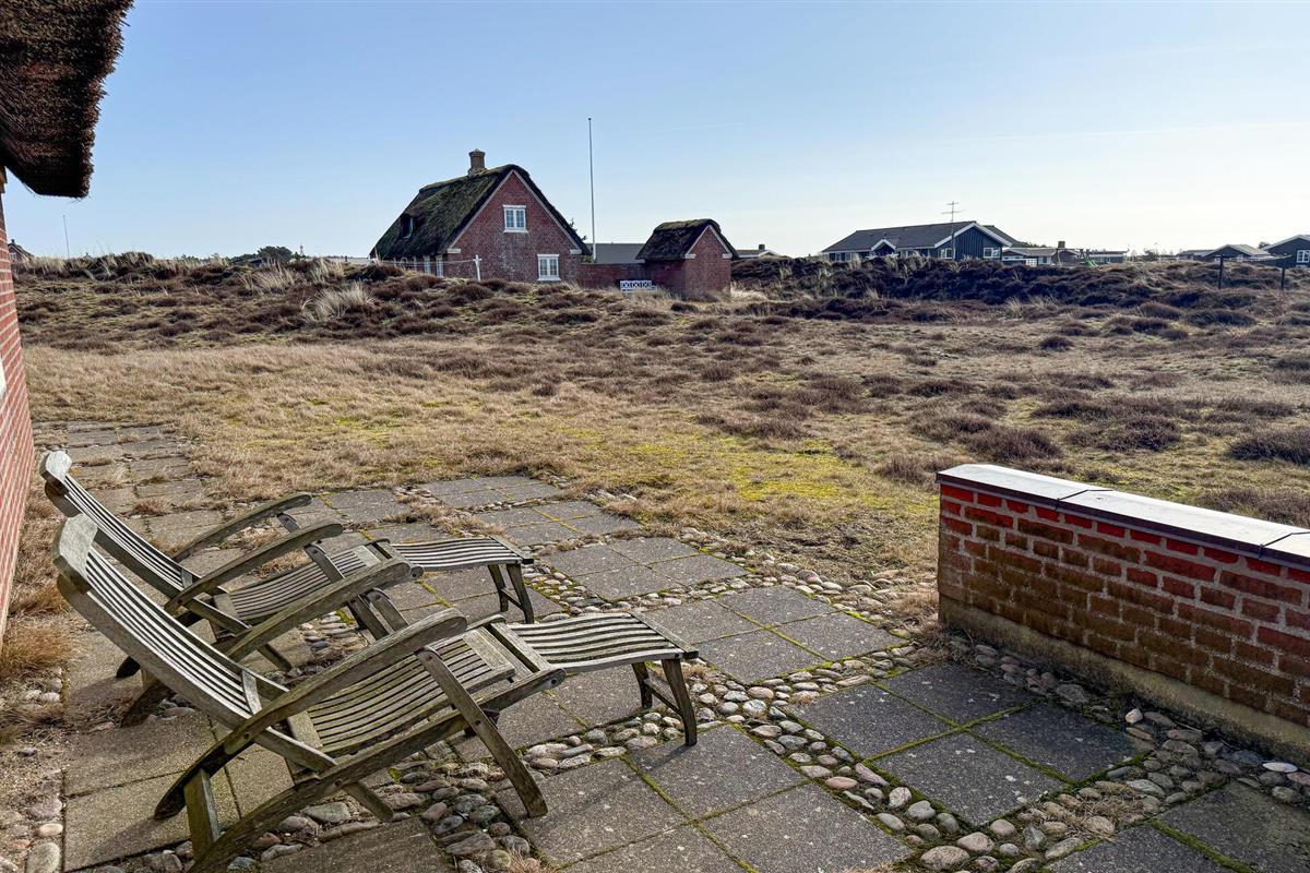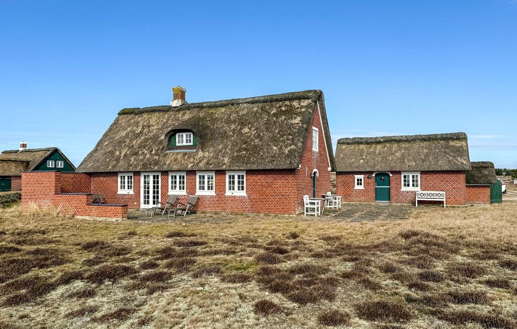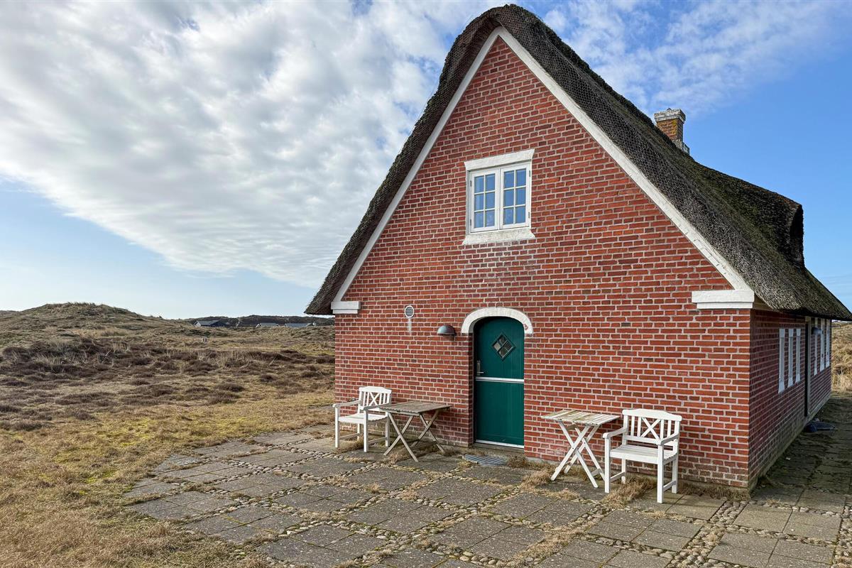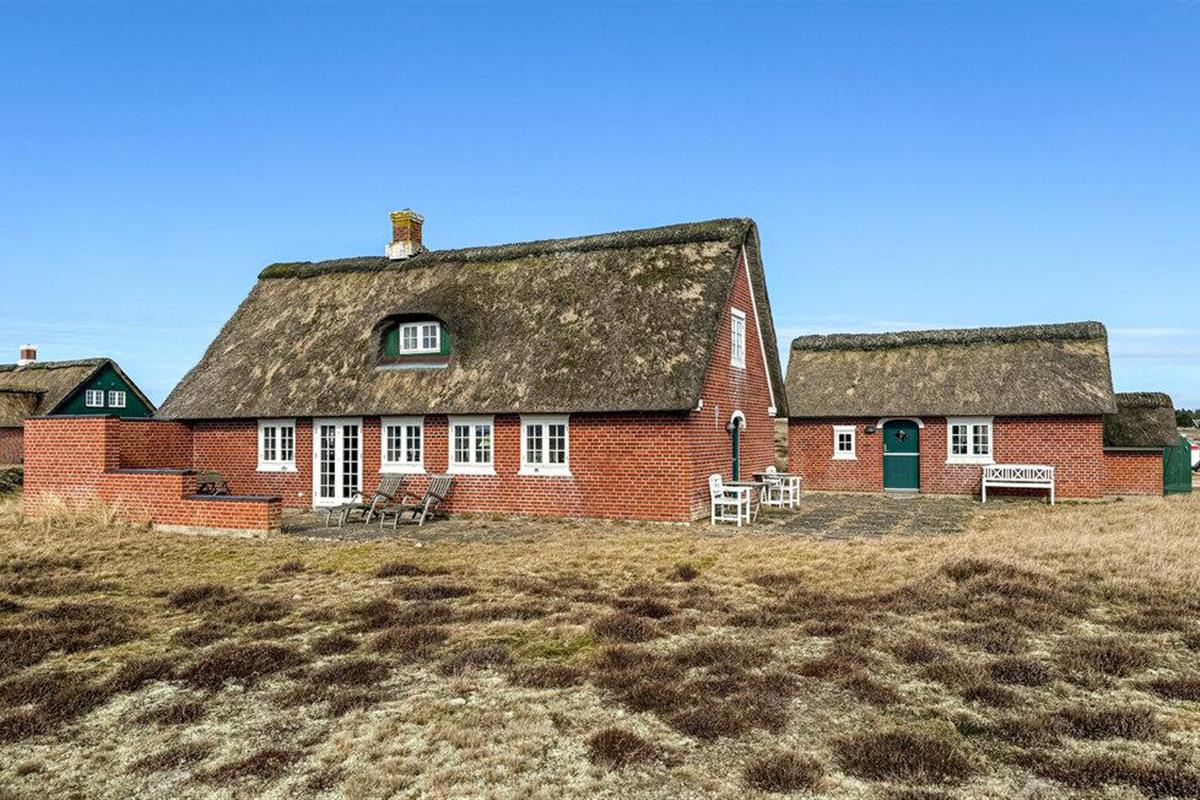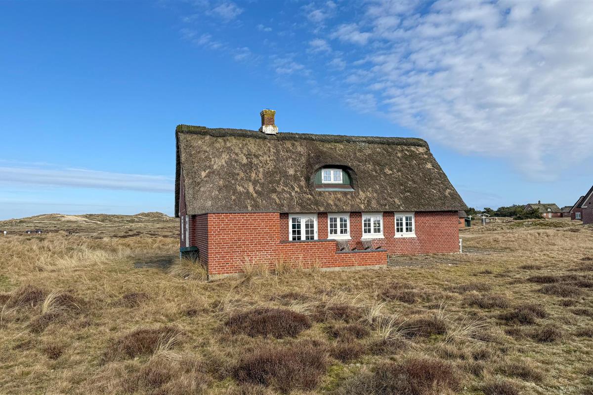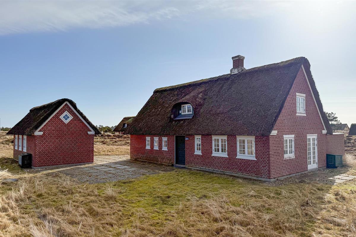 Stijlvol vakantiehuis met rieten dak, sauna en uitzicht op de duinen op Fanø, dichtbij het zandstrand.