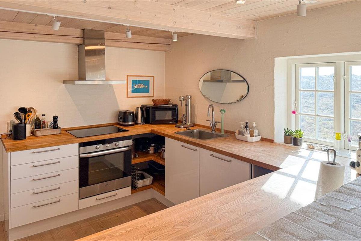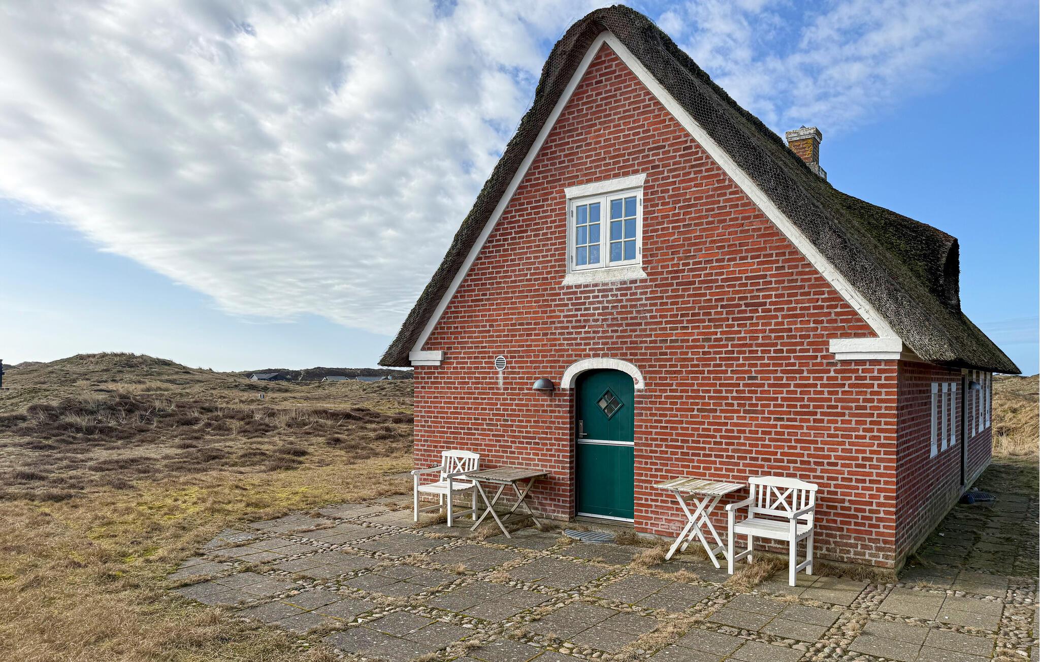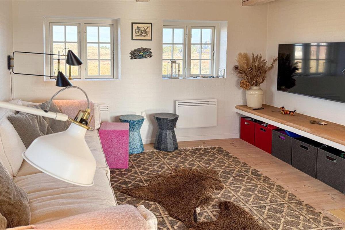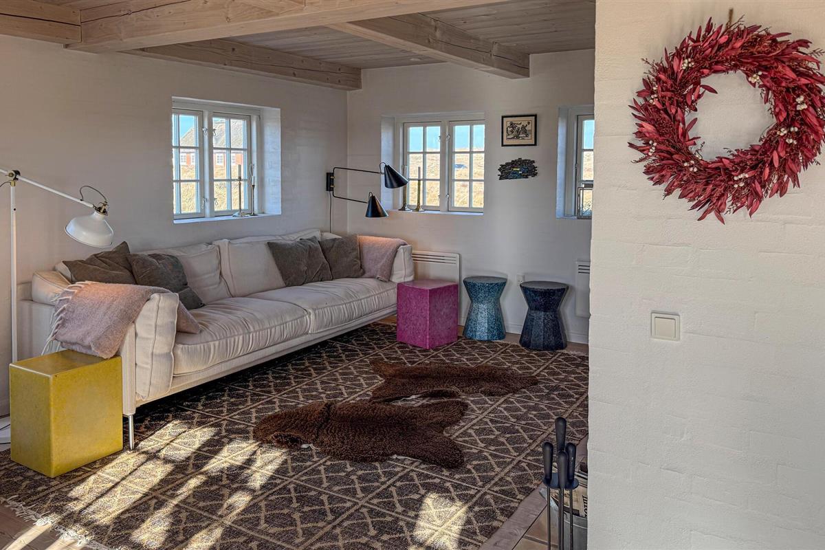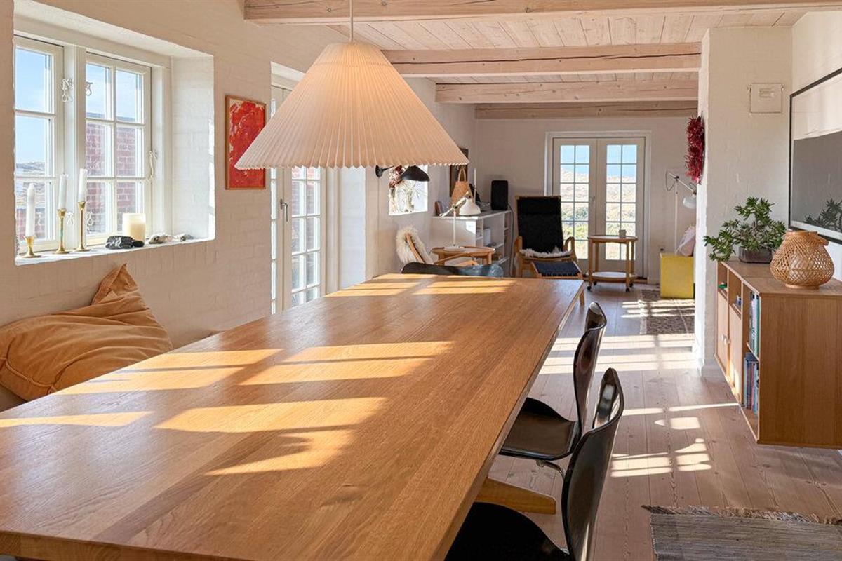 Stijlvol vakantiehuis met rieten dak, sauna en uitzicht op de duinen op Fanø, dichtbij het zandstrand.