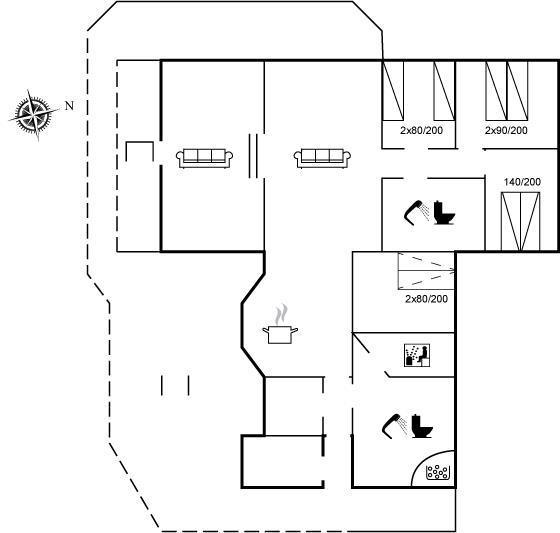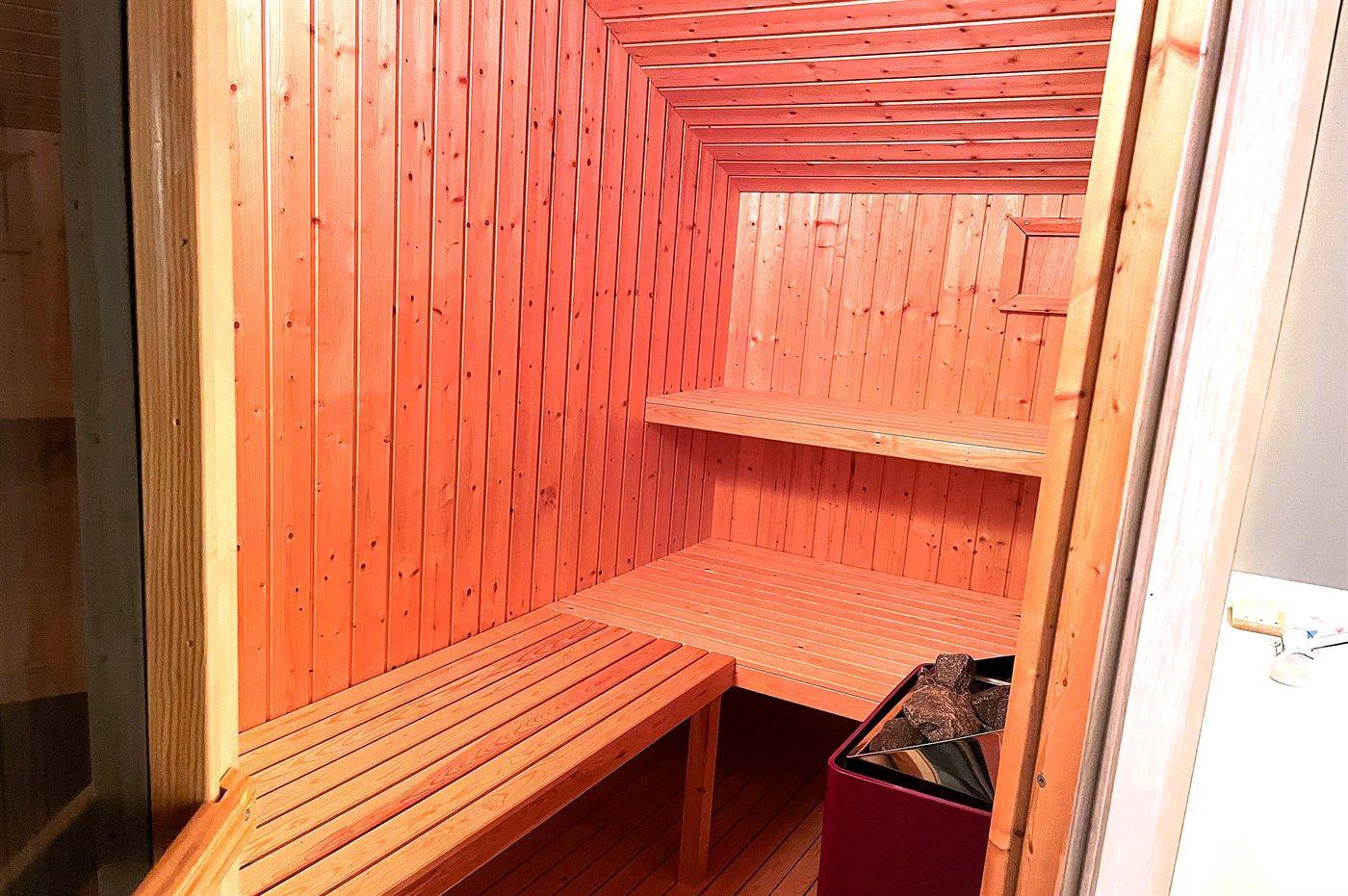 Er is 2 badkamers met douchehok en 2 toiletten. Er is vloerverwarming in 2 van de badkamers. De sauna biedt de gelegenheid tot ontspanning.