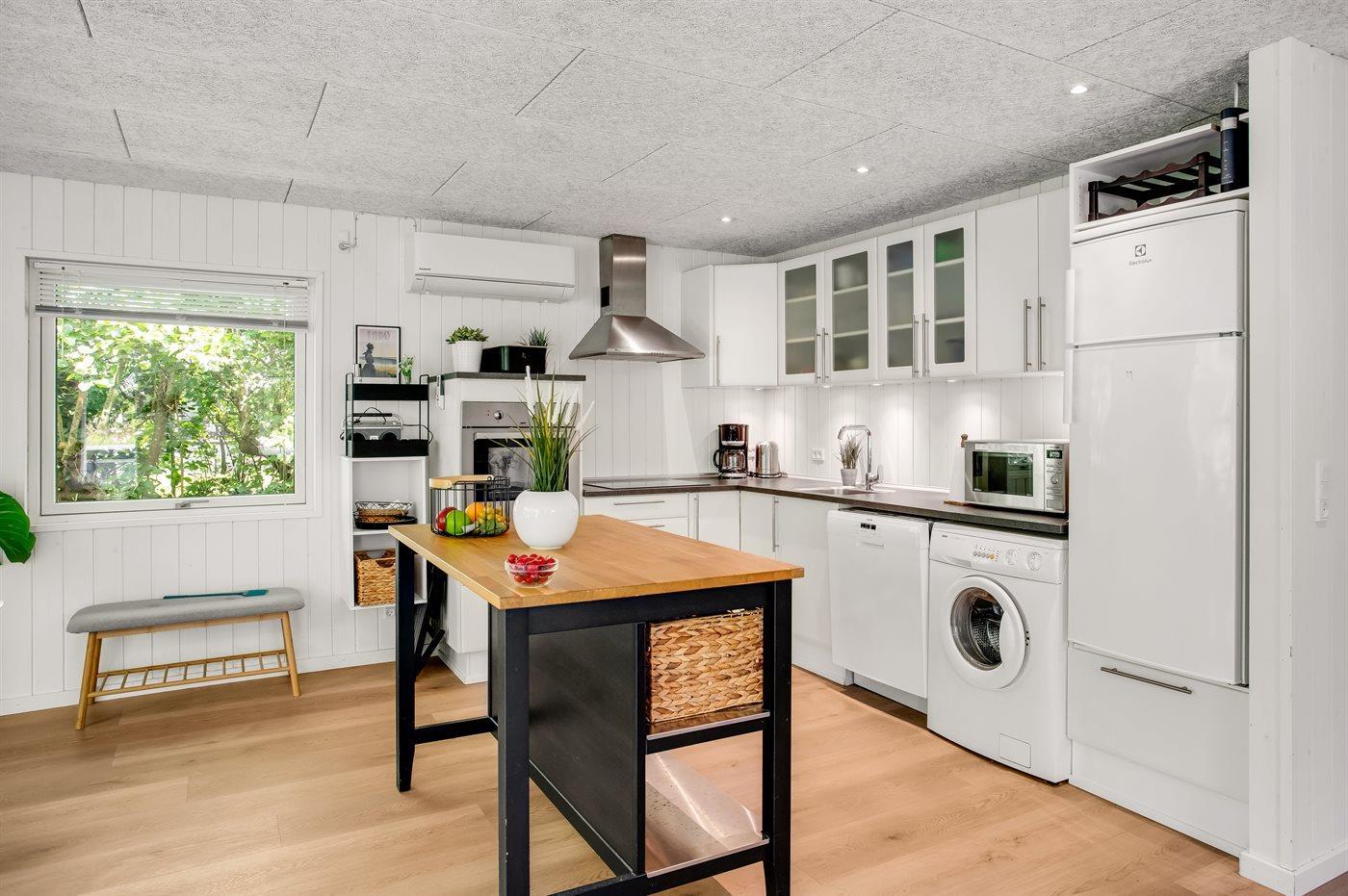 De keuken is uitgerust met koelkast Er zijn 4 keramische kookplaten, heteluchtoven, magnetron en vaatwasser.