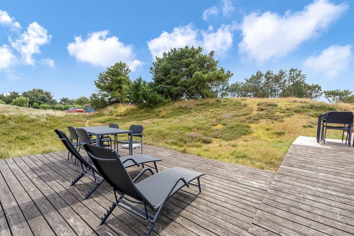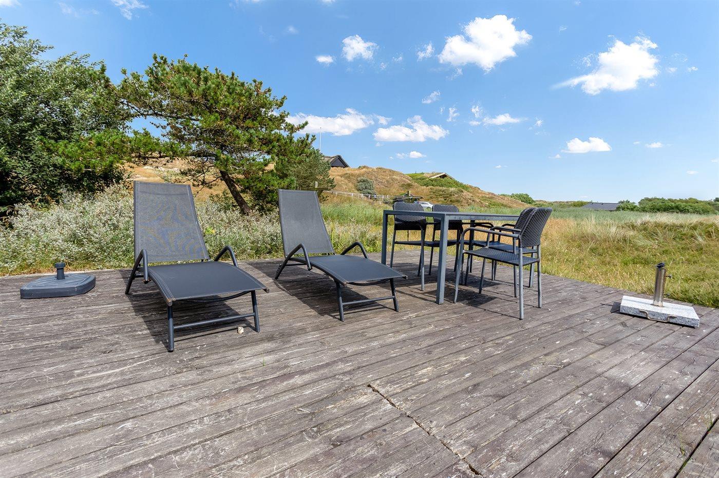 De vakantiewoning is gelegen op een 2616 m² groot natuural grond. Afstand tot de zee 800 m. Dichtstbijzijnde winkel 2000 m. Bij de vakantiewoning hoort 50 m² terras. Zandbak.
