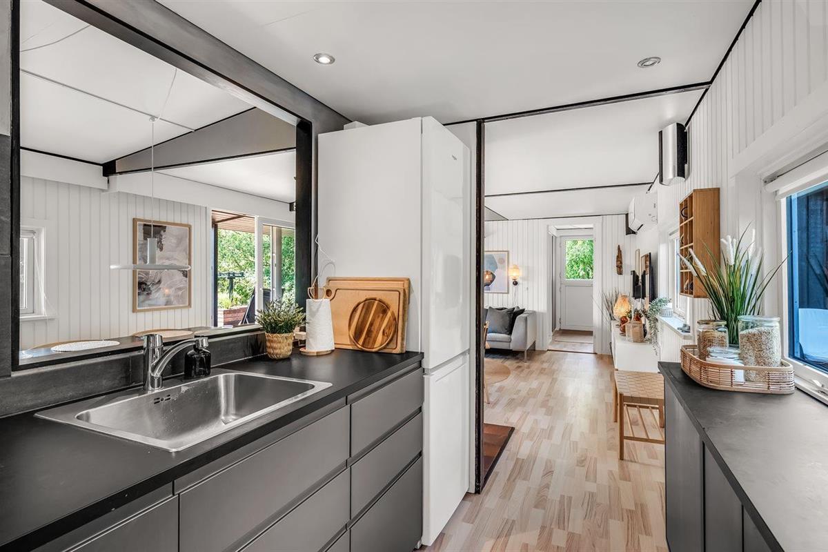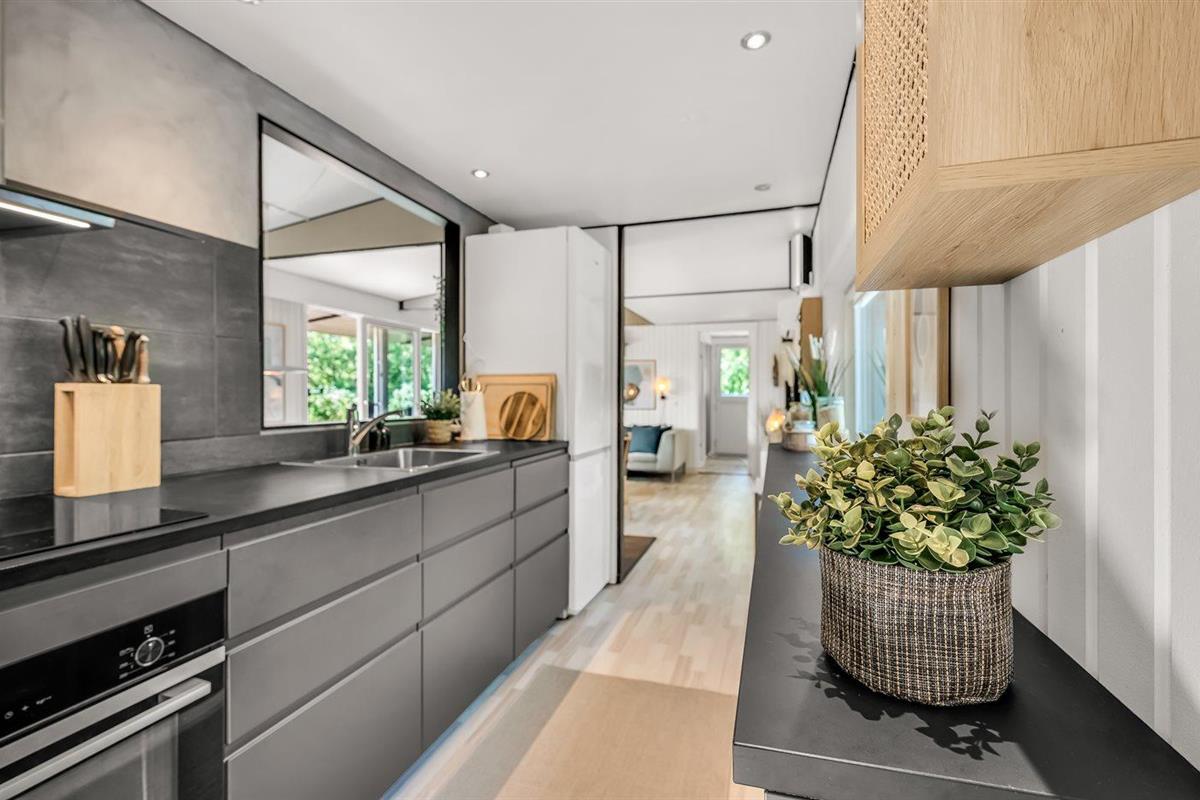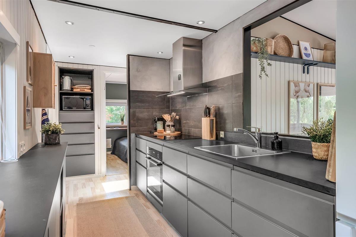 De keuken is uitgerust met koelkast Er is 4 inductiekookplaten, heteluchtoven, magnetron en vaatwasser.