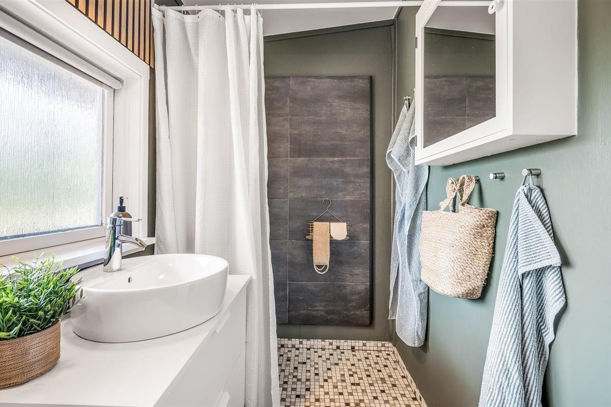 Er is 2 badkamers met douchehok en 2 toiletten. Er is vloerverwarming in 2 van de badkamers.