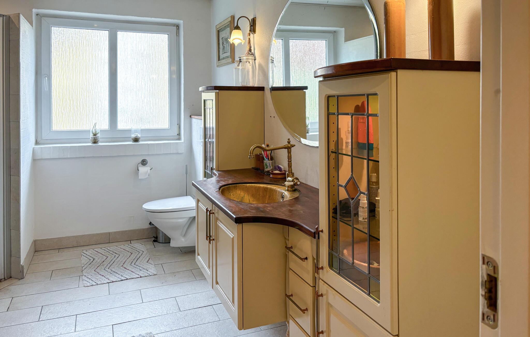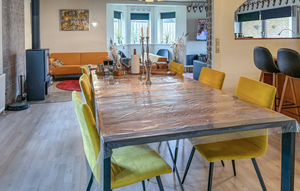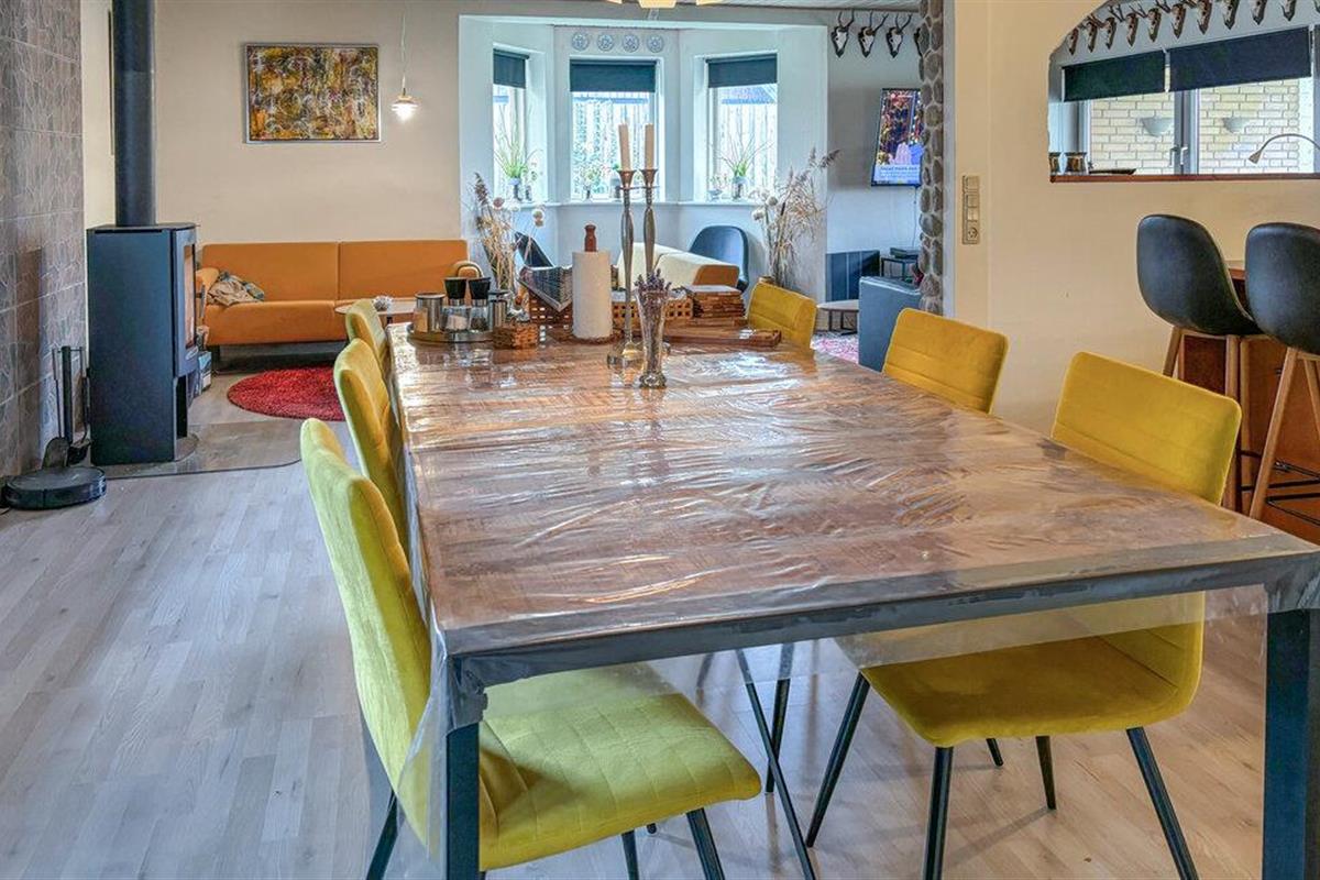 Dit huis nodigt je meteen uit om je thuis te voelen met zijn ruime, lichte woonkamer en warme kleuren. De open haard creëert een gezellige sfeer op koelere dagen, terwijl comfortabele banken en stijlvolle zithoeken veel ruimte bieden om te ontspannen. Grote ramen laten natuurlijk licht binnen en creëren een harmonieuze verbinding tussen binnen en buiten. Of je nu samen eet, spelletjes speelt of gewoon geniet van de rust, elk moment hier voelt als vakantie.