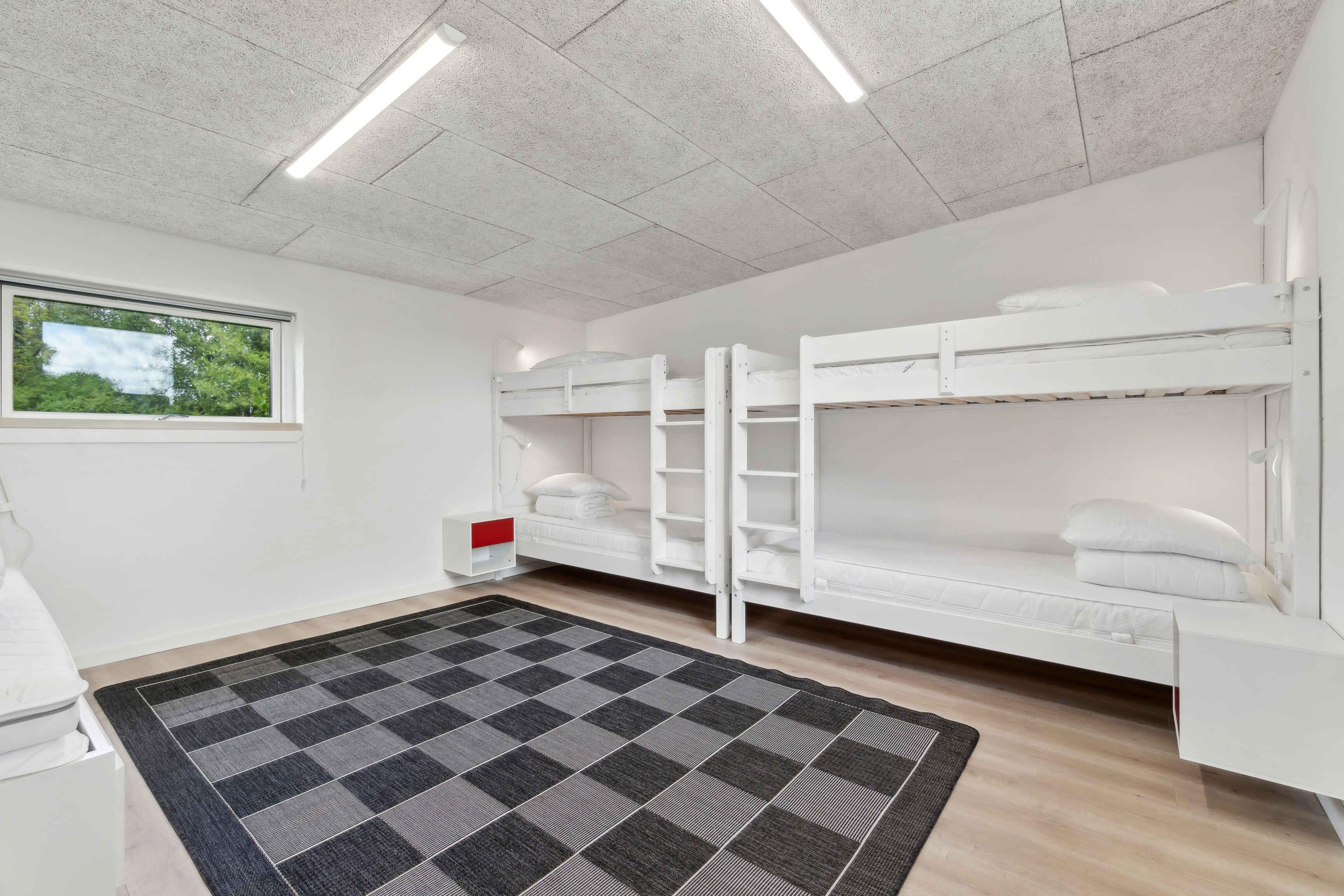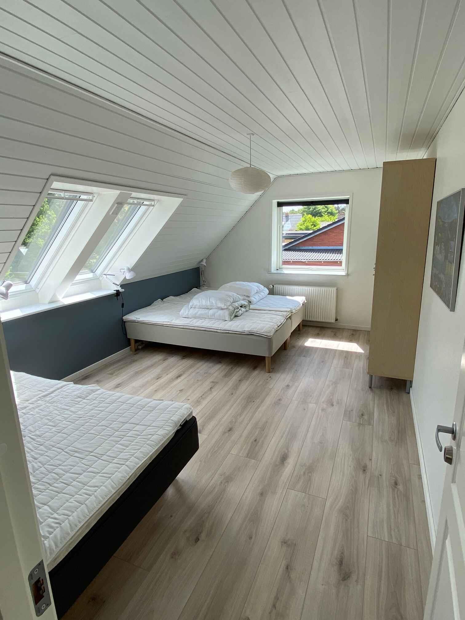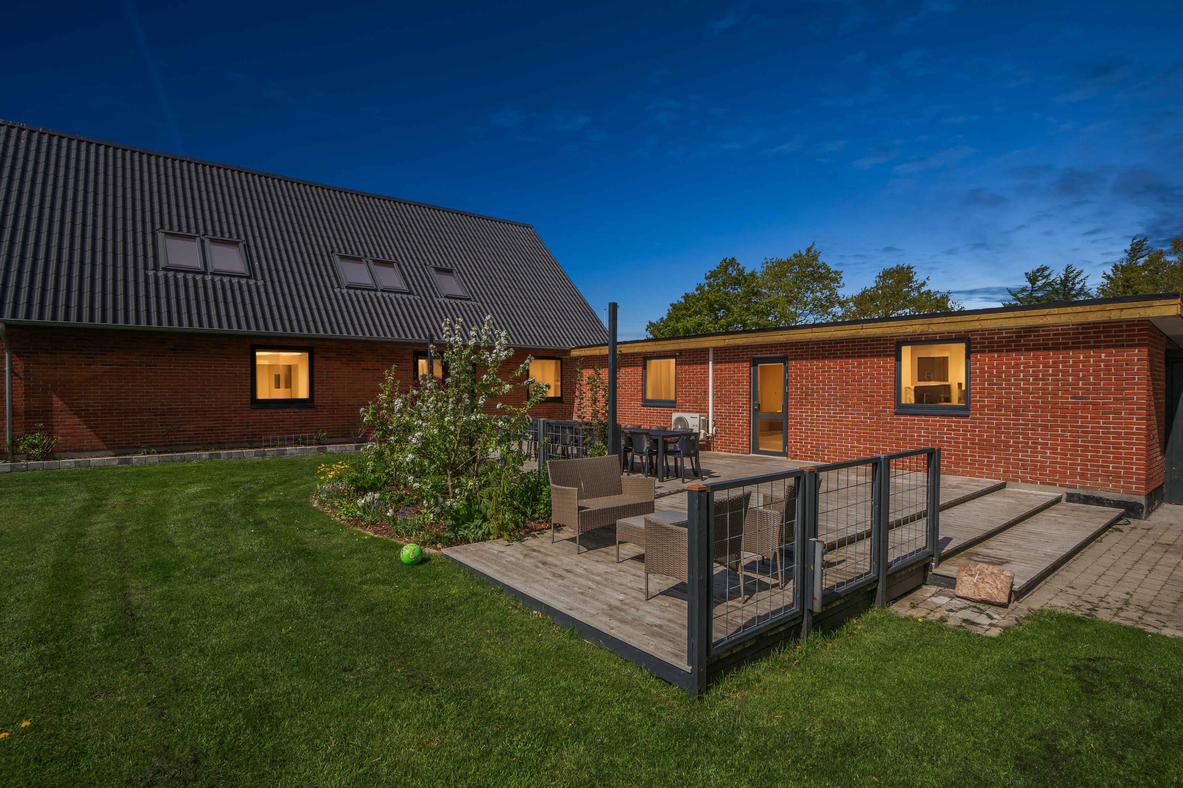 Beleef een vakantie die jarenlang bijblijft in dit ruime en charmante huis in Hvalpsund! Deze woning van 222 m² is ideaal voor grote groepen. Met plaats voor 14 personen, verdeeld over 6 slaapkamers, is er volop ruimte voor zowel gezelligheid als privacy. Het grote houten terras ligt op het zuiden, zodat je de hele dag van de zon kunt genieten, en er is een grote speeltuin direct naast het huis. Het huis heeft twee verdiepingen, waardoor kinderen en volwassenen hun eigen plek kunnen hebben. Er is een bijgebouw met 2 stapelbedden, één slaapkamer op de begane grond en vier slaapkamers op de eerste verdieping. De omheinde tuin is perfect voor gezinnen met kinderen of huisdieren en biedt veilige omstandigheden voor spel en ontspanning. Met slechts 400 meter naar het water heb je eenvoudig toegang tot het strand. Hier kun je zwemmen, wandelen en genieten van de natuur. Voor golfliefhebbers biedt de omgeving enkele van de beste banen met een prachtig uitzicht op het water. Slechts 1 km verderop vind je Hvalpsund Golfclub. Visliefhebbers zullen genieten van de vele vismeren en de mogelijkheid om vanaf het strand of de haven te vissen. Natuurliefhebbers kunnen zich uitleven op de wandel- en fietsroutes direct voor de deur. Voor de culinaire liefhebbers zijn er lokale restaurants waar je heerlijke visgerechten of eenvoudige maaltijden kunt proeven. Als bijzondere ervaring kun je de veerboot nemen naar Sundsøre en Brænderiet Limfjorden bezoeken. Geniet van tapasplanken en krijg een rondleiding door de sfeervolle distilleerderij, waar whisky, gin en rum worden geproduceerd. Dit alles en meer wacht op je in Hvalpsund – de perfecte bestemming voor een onvergetelijke vakantie! Let op: Niet te huur voor commercieel gebruik.