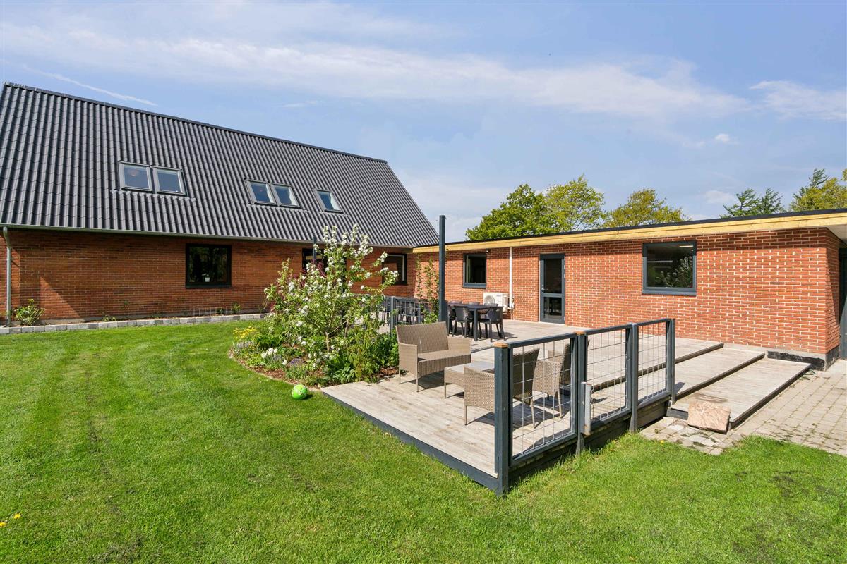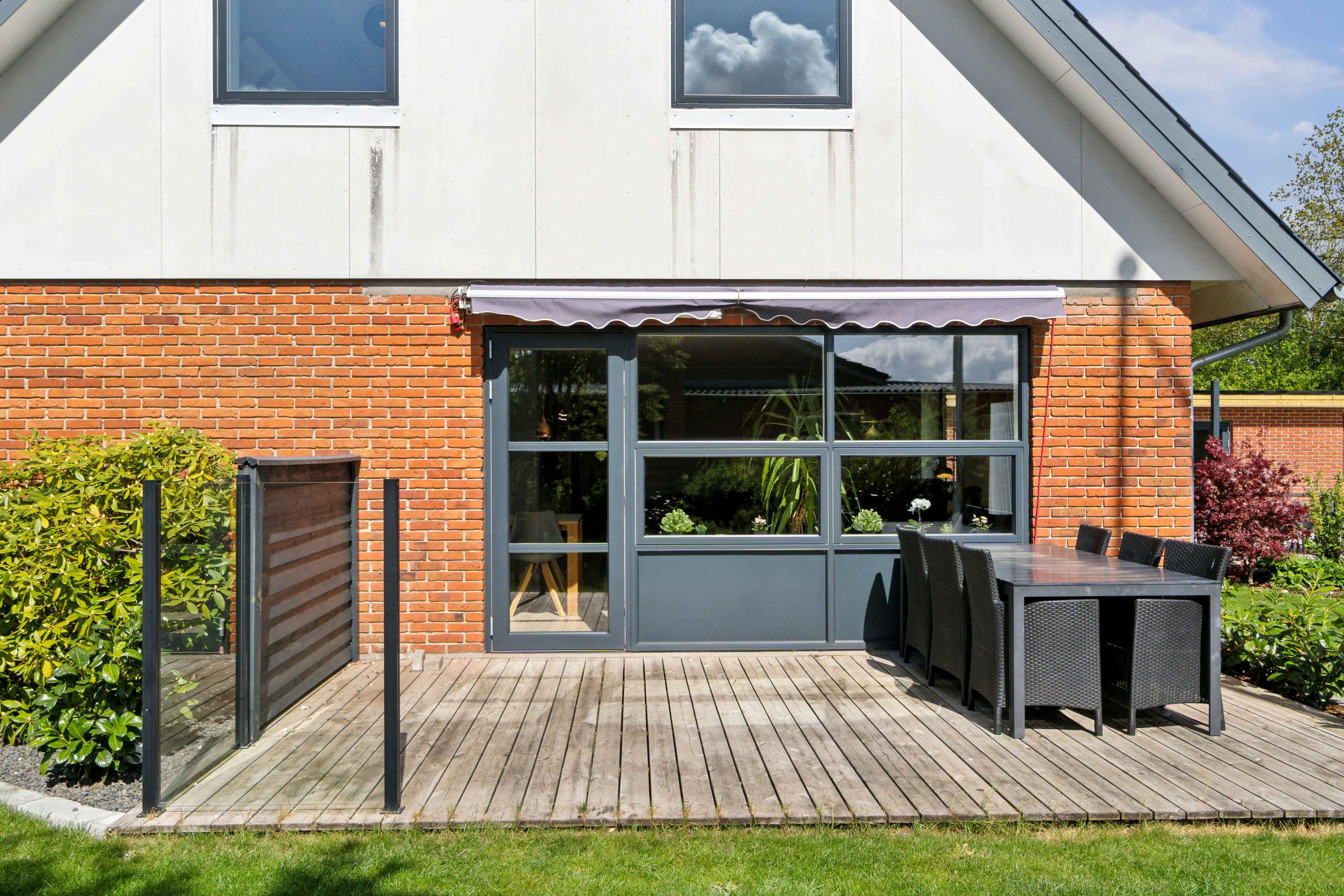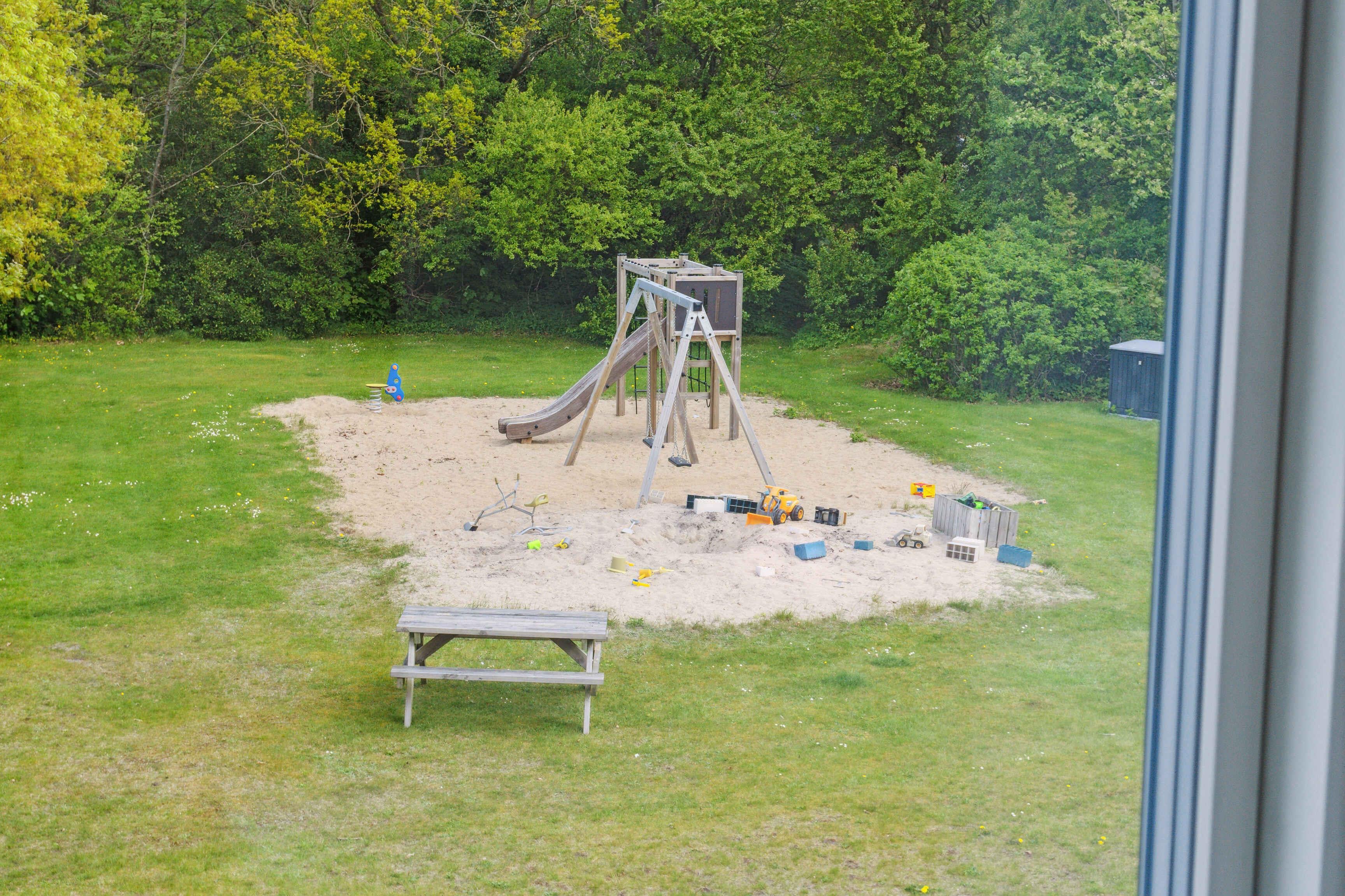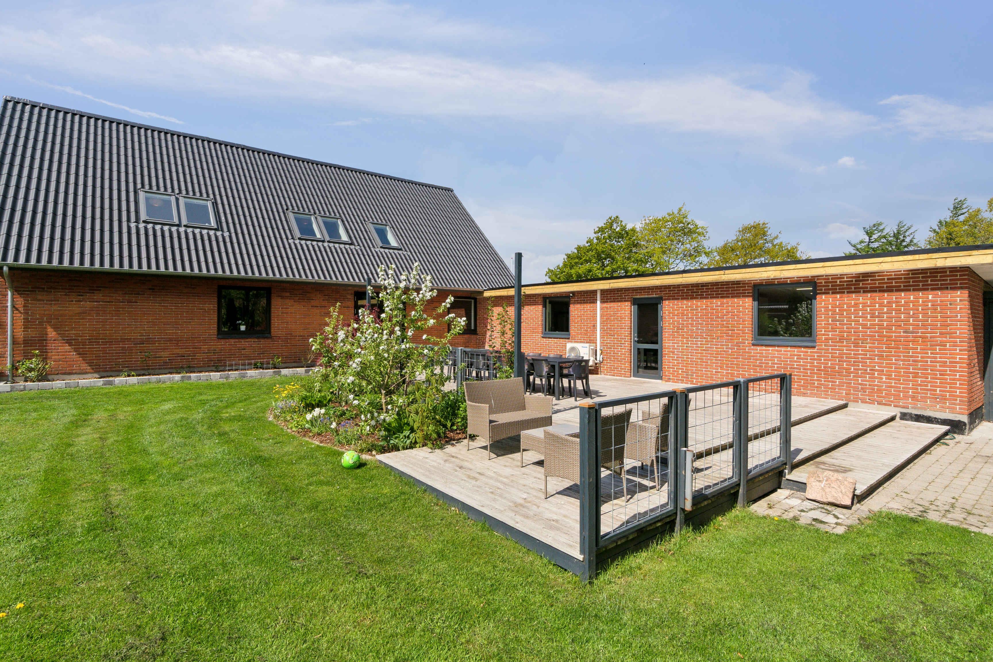 Ruim en zonnig vakantiehuis in Hvalpsund met speelplaats en nabij strand en golf.