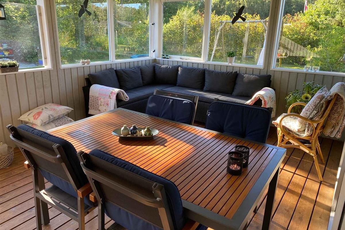 Vakantiehuis 104 m² met 3 slaapkamers voor 7. Lichte woonkeuken, volledig uitgerust. Kindvriendelijke tuin met vuurplaats, trampoline en zandbak. 150 m naar ondiep zandstrand met zwemsteiger. Dicht bij bos, speeltuin en zomerhuur van kajak/SUP.