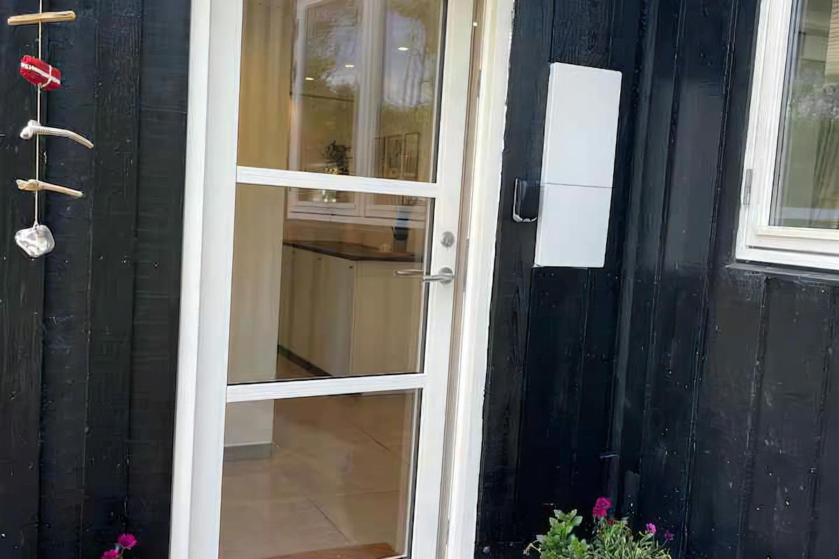 Nieuw gerenoveerd vakantiehuis op 150 m van de fjord met ruime woonkamer, overdekt terras, speelplaats en barbecue.