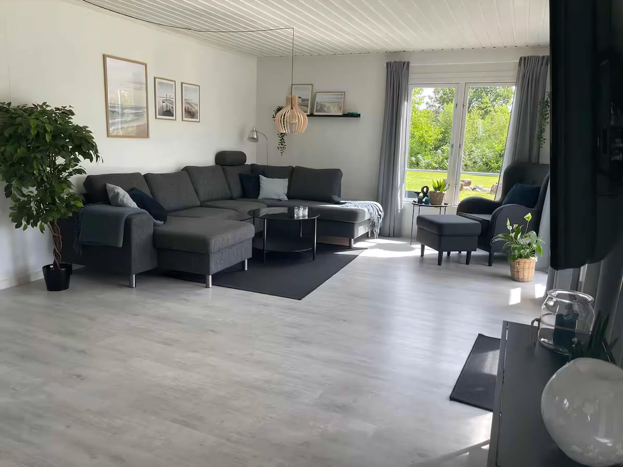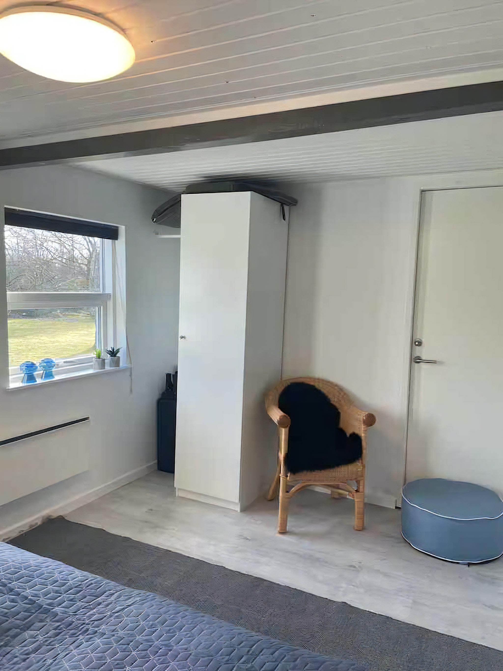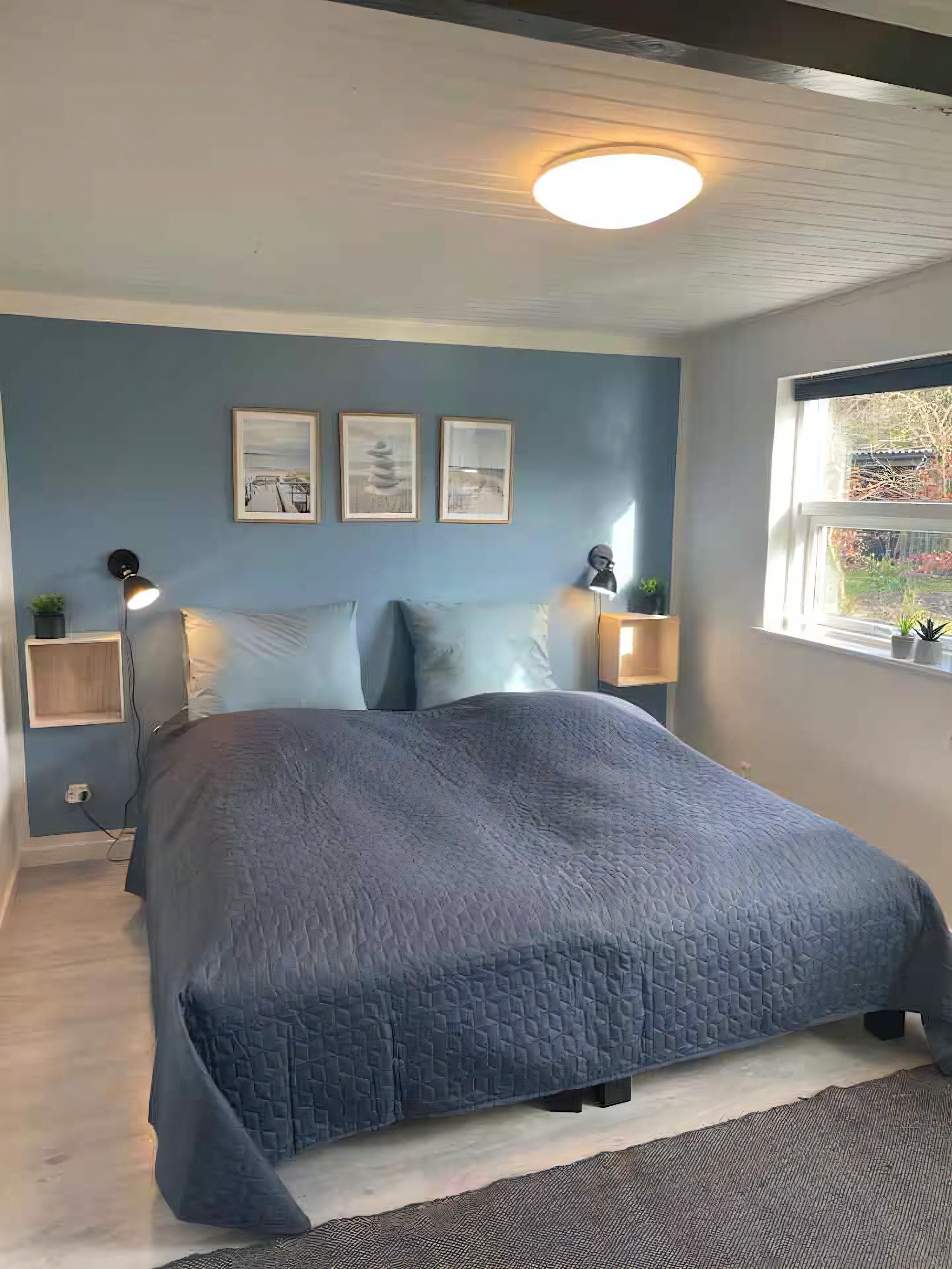Dit heerlijke vakantiehuis heeft een ruime woonkamer met een gezellige zithoek met plaats voor het hele gezin en een eethoek, ook met voldoende ruimte als sommigen bijvoorbeeld een bordspel willen spelen terwijl anderen koken in de nieuwe, mooie keuken die in open verbinding staat met de woonkamer. De woonkamer heeft grote ramen, zodat u kunt genieten van het uitzicht op al het groen. Dubbele deuren geven toegang tot het grote, overdekte terras. Er is een tv met Deense zenders, kabel-tv en Chromecast. Het huis heeft 4 goede slaapkamers met tweepersoonsbedden; 2 kamers hebben 2 eenpersoonsbedden die samengevoegd kunnen worden tot tweepersoonsbedden. Er zijn een kinderstoel en kinderbedje beschikbaar. Beddengoed en handdoeken zijn aanwezig. Indien nodig dient u deze zelf te wassen. De badkamers hebben een douche en toilet. Het huis ligt op een mooi perceel van ca. 1200 m². Er zijn twee terrassen bij het huis – een open terras van 20 m² en een overdekt terras van 35 m². Hier kunt u ’s avonds zitten en barbecueën, ook als het weer niet helemaal meewerkt. Er is een vuurplaats waar u brood op een stok kunt bakken of worstjes kunt roosteren, en er is parkeergelegenheid op het terrein. In de tuin staan een trampoline en een zandbak. Vanaf het huis is het ca. 2,5 km naar de kleine haven van Hvalpsund, vanwaar de veerboot naar Sundsøre vertrekt. De overtocht duurt ongeveer 10 minuten en de veerboot vertrekt elk half uur. De zwemmogelijkheden zijn goed. Hvalpsund Strand is een breed zandstrand met zeer goede omstandigheden voor zowel kinderen als volwassenen. Een duiktoren biedt uitdaging voor de iets grotere kinderen en surfers hebben hier ook goede omstandigheden met maar liefst drie surfplekken. In de omgeving van Hvalpsund is er ook een gezellige jachthaven, diverse goede restaurants en een mooie 18-holes golfbaan. Het huis wordt niet verhuurd aan jongerengroepen.
