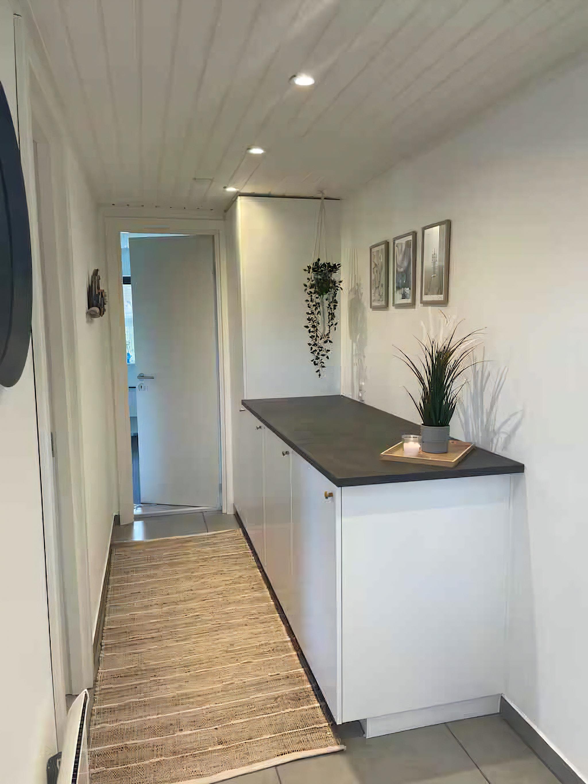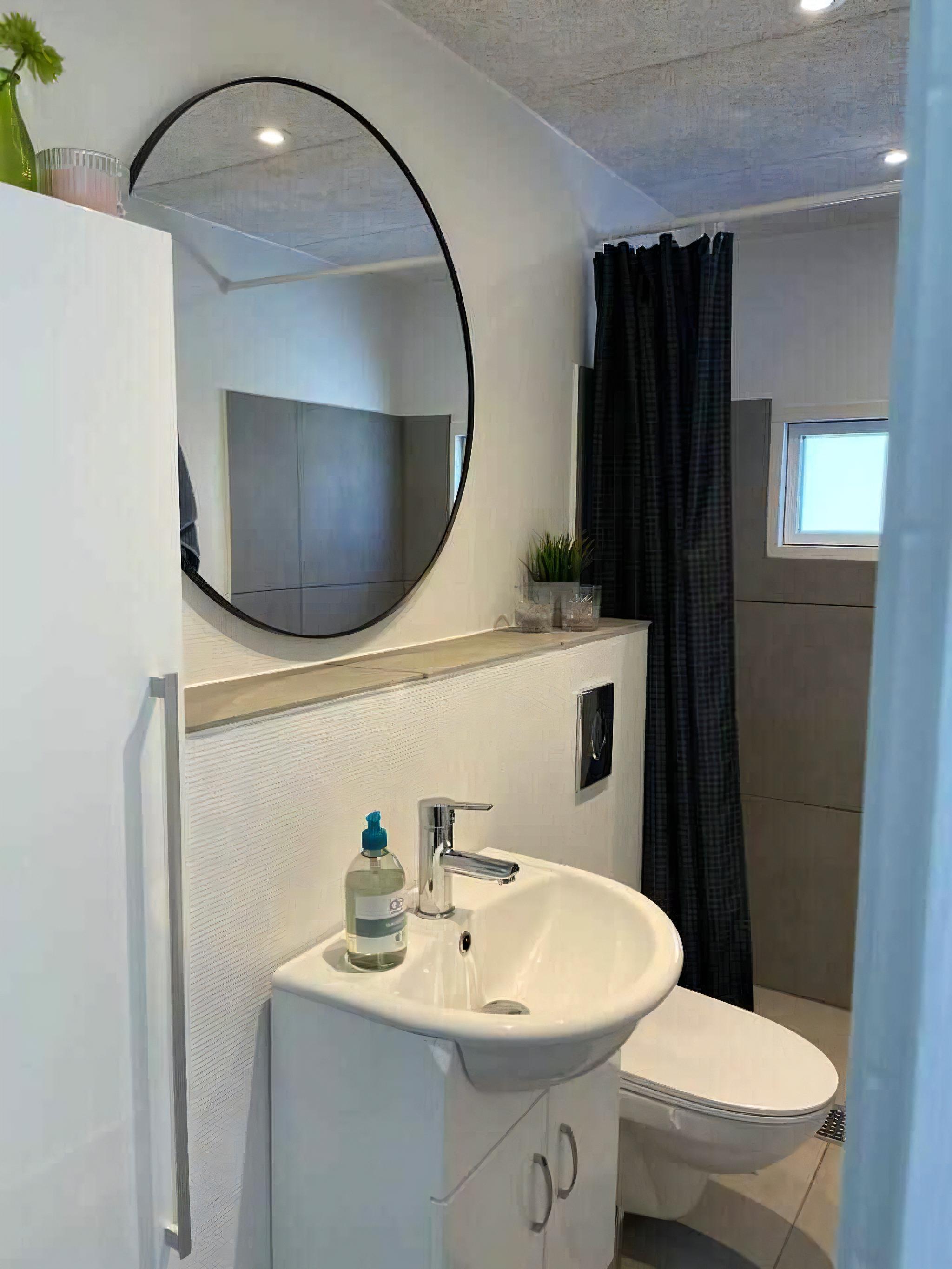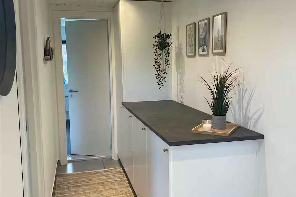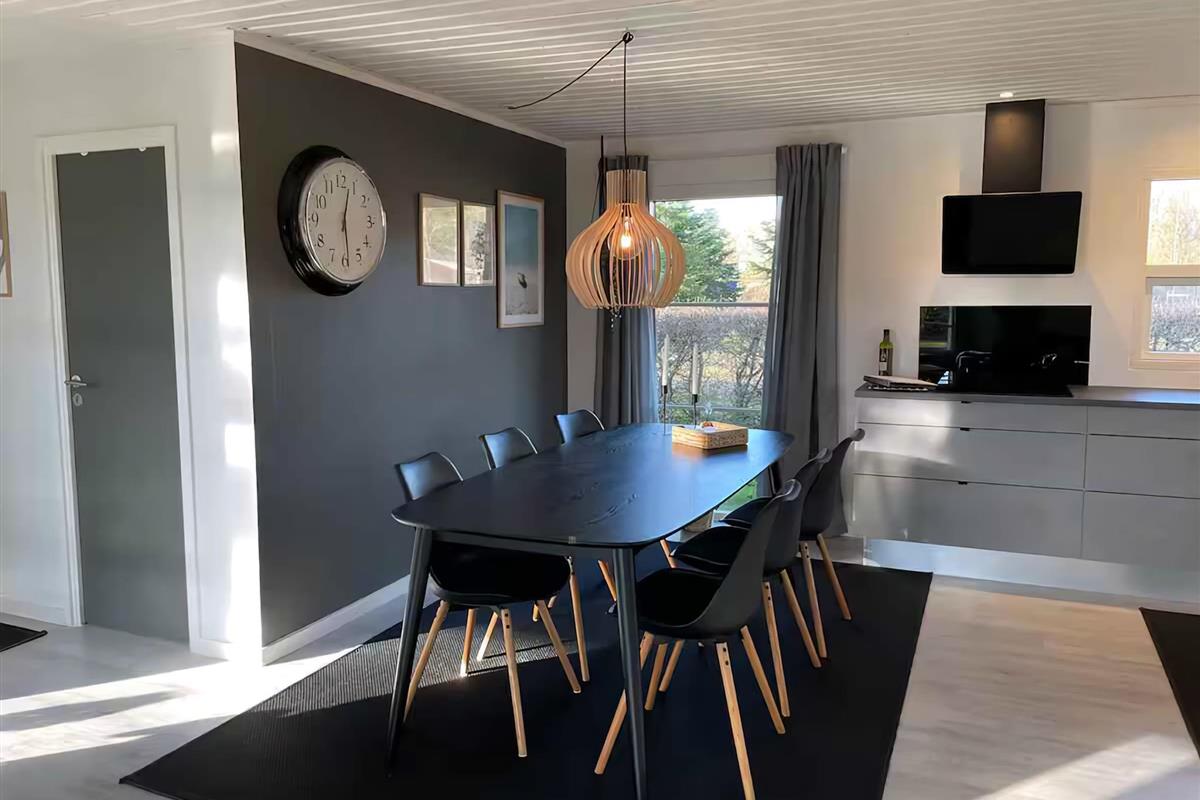 Dit heerlijke vakantiehuis heeft een ruime woonkamer met een gezellige zithoek met plaats voor het hele gezin en een eethoek, ook met voldoende ruimte als sommigen bijvoorbeeld een bordspel willen spelen terwijl anderen koken in de nieuwe, mooie keuken die in open verbinding staat met de woonkamer. De woonkamer heeft grote ramen, zodat u kunt genieten van het uitzicht op al het groen. Dubbele deuren geven toegang tot het grote, overdekte terras. Er is een tv met Deense zenders, kabel-tv en Chromecast. Het huis heeft 4 goede slaapkamers met tweepersoonsbedden; 2 kamers hebben 2 eenpersoonsbedden die samengevoegd kunnen worden tot tweepersoonsbedden. Er zijn een kinderstoel en kinderbedje beschikbaar. Beddengoed en handdoeken zijn aanwezig. Indien nodig dient u deze zelf te wassen. De badkamers hebben een douche en toilet. Het huis ligt op een mooi perceel van ca. 1200 m². Er zijn twee terrassen bij het huis – een open terras van 20 m² en een overdekt terras van 35 m². Hier kunt u ’s avonds zitten en barbecueën, ook als het weer niet helemaal meewerkt. Er is een vuurplaats waar u brood op een stok kunt bakken of worstjes kunt roosteren, en er is parkeergelegenheid op het terrein. In de tuin staan een trampoline en een zandbak. Vanaf het huis is het ca. 2,5 km naar de kleine haven van Hvalpsund, vanwaar de veerboot naar Sundsøre vertrekt. De overtocht duurt ongeveer 10 minuten en de veerboot vertrekt elk half uur. De zwemmogelijkheden zijn goed. Hvalpsund Strand is een breed zandstrand met zeer goede omstandigheden voor zowel kinderen als volwassenen. Een duiktoren biedt uitdaging voor de iets grotere kinderen en surfers hebben hier ook goede omstandigheden met maar liefst drie surfplekken. In de omgeving van Hvalpsund is er ook een gezellige jachthaven, diverse goede restaurants en een mooie 18-holes golfbaan. Het huis wordt niet verhuurd aan jongerengroepen.