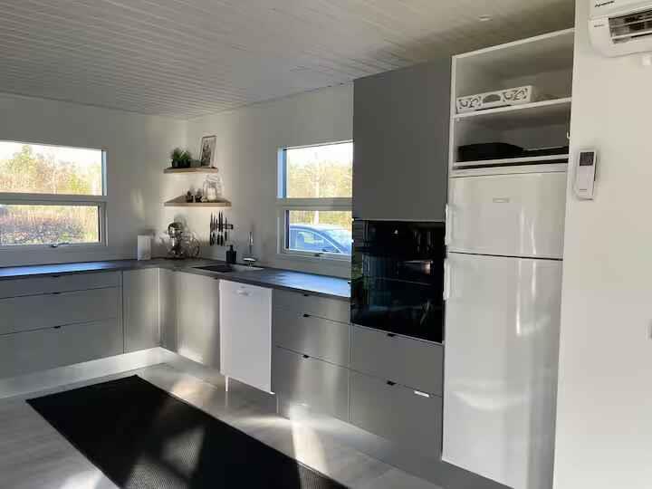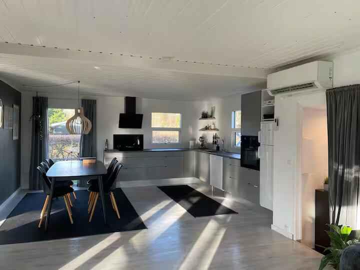 Nyrenoveret sommerhuset med kun 150 m til fjorden. Der er 4 soveværelser og 2 badeværelser Se mere om sommerhuset på vores fb. side Sommerhus Illeris hvalpsund. Der skal afregnes direkte til ejer ved afrejse for forbrug udover lejen. 3,5kr/0,5€ pr. KWh, vand med 20 kr/3€. pr døgn Vi lejer ikke ud til ungdomsgrupper. Boligen Dejlig, rummelig stue med skønt sofahjørne med plads til hele familien og spiseplads, også med god plads hvis nogen for eksempel vil spille brætspil, mens andre tilbereder maden i det nye, lækre køkken, der ligger i åben forbindelse med stuen. Nyt Køkken med bl.a opvaskemaskine og mikroovn. Stuen har store vinduer, så I kan nyde udsigten til alt det grønne. Der er dobbelte døre ud til den store, overdækkede terrasse. Der er TV med danske kanaler, kabel-TV samt Chromecast. Huset har 4 gode soveværelser med dobbeltsenge, 2 af værelserne har 2 enkelt senge som kan samles til dobbeltsenge. Der er barnestol og barneseng til rådighed. Der er sengelinned, håndklæder til rådighed. Har man brug for det skal vaskes sørger man selv for det. Badeværelser har brusebad og toilet. Der er et par ruller par toiletpapir men ellers sørger man selv for det. Huset ligger på en dejlig grund på ca. 1200 m2. Der er to terrasser ved huset – en åben terrasse på 20 m2 og en overdækket terrasse på 35 m2. Her kan I sidde og grille om aftenen, også hvis vejret ikke er helt, som man kunne ønske sig. Der er bålplads, så I kan bage snobrød eller riste pølser, og der er også p-plads på grunden. Der er trampolin og sandkasse i haven. Fra huset er der ca. 2,5 km til den lille Hvalpsund havn, hvorfra færgen sejler over til Sundsøre. Sejlturen tager ca. 10 min, og færgen sejler hver halve time. Bademulighederne er gode. Hvalpsund Strand er en bred sandstrand med rigtig gode forhold for både børn og vokse. Et udspringstårn giver udfordringer for de lidt større børn, og surfere har også gode forhold, da der er hele 3 surf-pladser. I Hvalpsund-området er der også en hyggelig lystbådehavn og flere gode restauranter samt en flot 18-hullers golfbane.