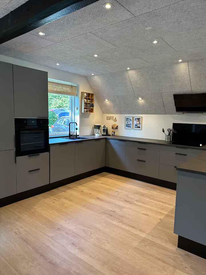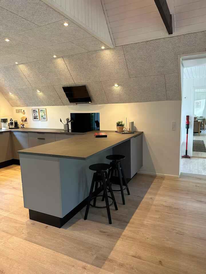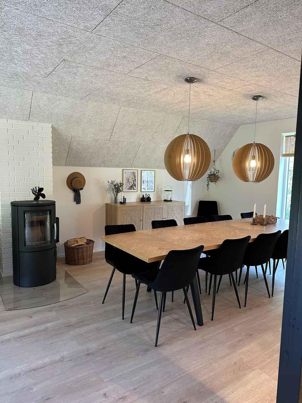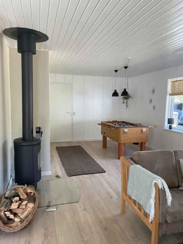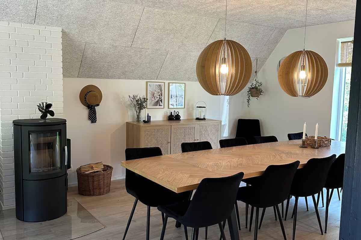 Dit ruime vakantiehuis van 198 m² biedt een comfortabele basis voor vakanties met maximaal 12 gasten. Met vijf slaapkamers is er plaats voor zowel familie als vrienden, en de indeling maakt het gemakkelijk om samen te zijn zonder in te leveren op privacy. Er zijn 4 slaapkamers in het huis en één slaapkamer in het bijgebouw. De woonkamer is het natuurlijke verzamelpunt van het huis met voldoende ruimte voor gezamenlijke maaltijden en ontspanning. De houtkachel zorgt voor sfeer op koele avonden, terwijl de warmtepomp het hele jaar door een aangename temperatuur garandeert. Internet maakt het eenvoudig om films te streamen of praktische zaken te regelen tijdens het verblijf. Buiten zijn er goede faciliteiten voor het vakantiegevoel. De terrassen nodigen uit tot lange avonden buiten en na een dag aan het water kunt u ontspannen in de houtgestookte hottub (tegen betaling). De elektrische auto kan bij het huis worden opgeladen en er is slechts 500 meter naar de kust. Het gebied rond de Limfjorden staat bekend om het rustige water en kindvriendelijke stranden. Er zijn goede mogelijkheden om te zwemmen, kajakken, paddleboarden en vissen. Kleine havenstadjes bieden ijs, lokale eetgelegenheden en een maritieme sfeer, terwijl paden langs de kust mooie routes bieden om te wandelen en te fietsen met uitzicht op de fjord. In het gevarieerde Himmerland vindt u zowel bossen als open landschappen en gezellige uitstapjes. Golfbanen, speelplekken voor kinderen en kleine attracties liggen op korte afstand. Dit geeft u de vrijheid om rustige dagen aan het water te combineren met actieve natuurbelevenissen. Wordt niet verhuurd aan jongerengroepen.