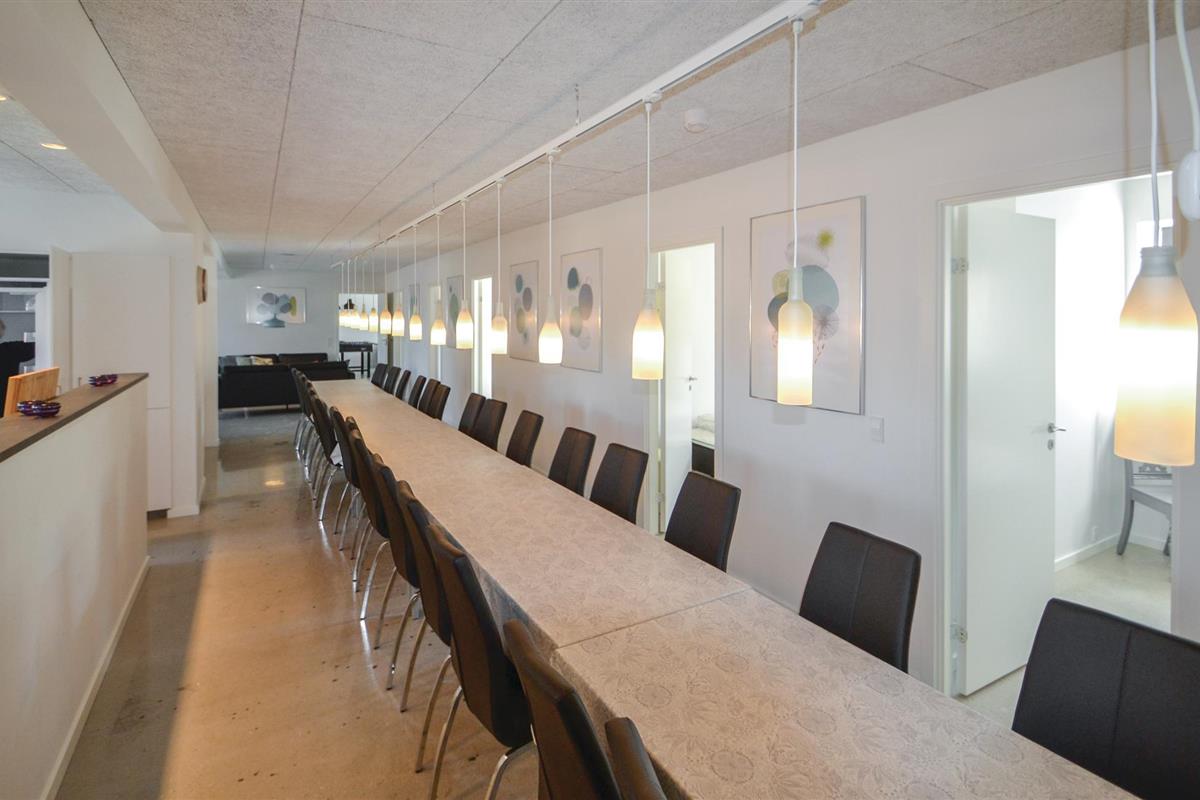 In Fausing, tussen Randers en Grenaa, ligt deze prachtige, gerenoveerde boerderij voor 27 personen. Het is een vierkantshoeve waarbij één vleugel wordt verhuurd, de eigenaar in de tweede vleugel woont en in de derde vleugel een galerie is gevestigd. De Grevelsgaard Gallery stelt kunst en design tentoon in keramiek en glas en schilderijen. Het hele gezin kan hier vakantie vieren en het huis biedt ook een feestelijke omgeving voor een feest. Het huis heeft een grote en moderne eetkeuken en een activiteitenruimte (pooltafel). Het terras is privé en ongestoord en je kunt je kinderen zien spelen op het grasveld. Als je in de galerie met glas wilt werken, kun je dit regelen met de eigenaar. Niet ver van het huis ligt het Deense landhuismuseum Gammel Estrup, dat het verhaal vertelt van het landhuis vanaf de Renaissance tot rond 1900. Andere bestemmingen voor uitstapjes: Randers Regnskov, Elvis Museum Memphis Mansion, kunstmuseum, klimpark.
