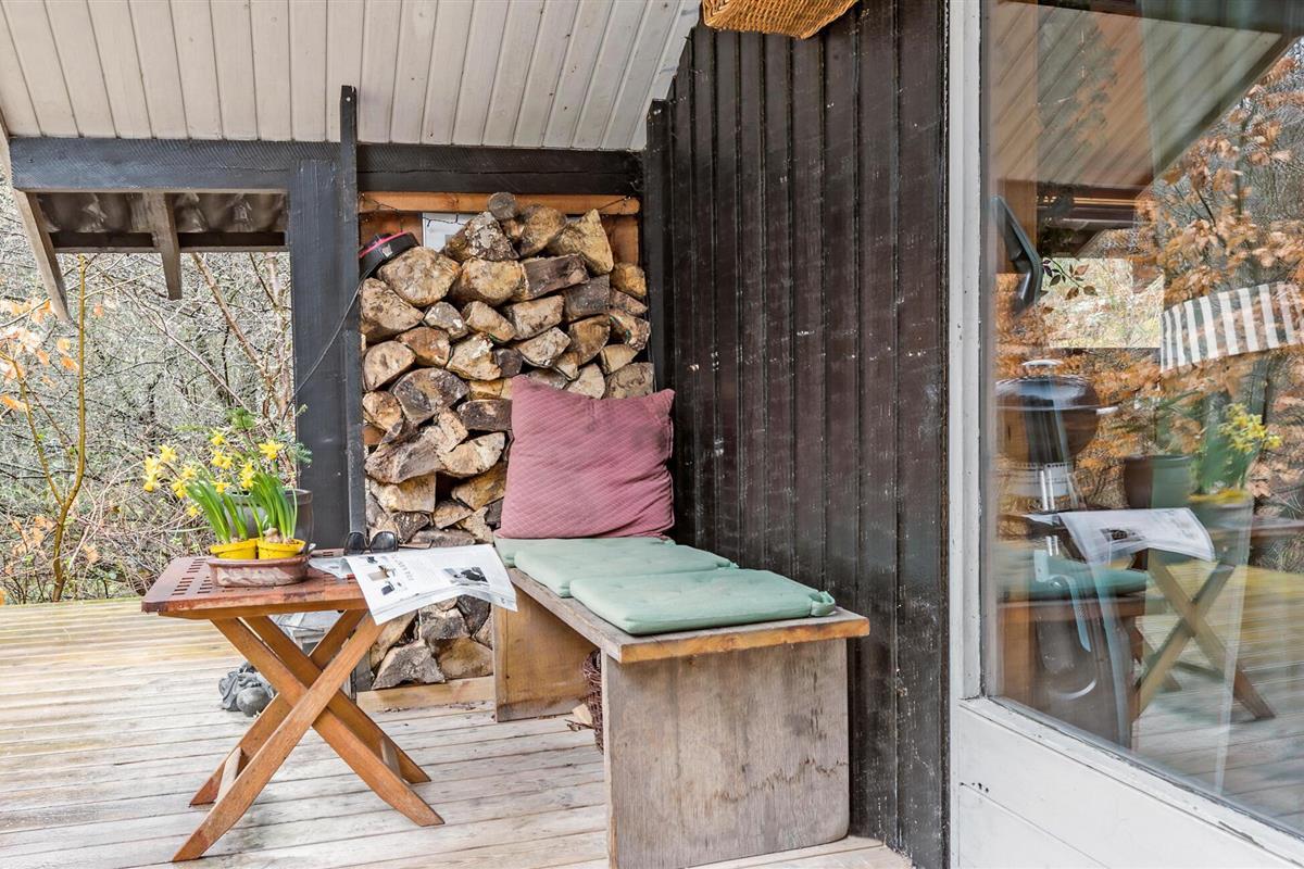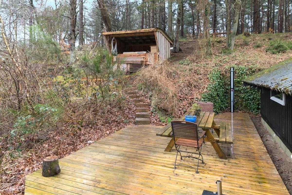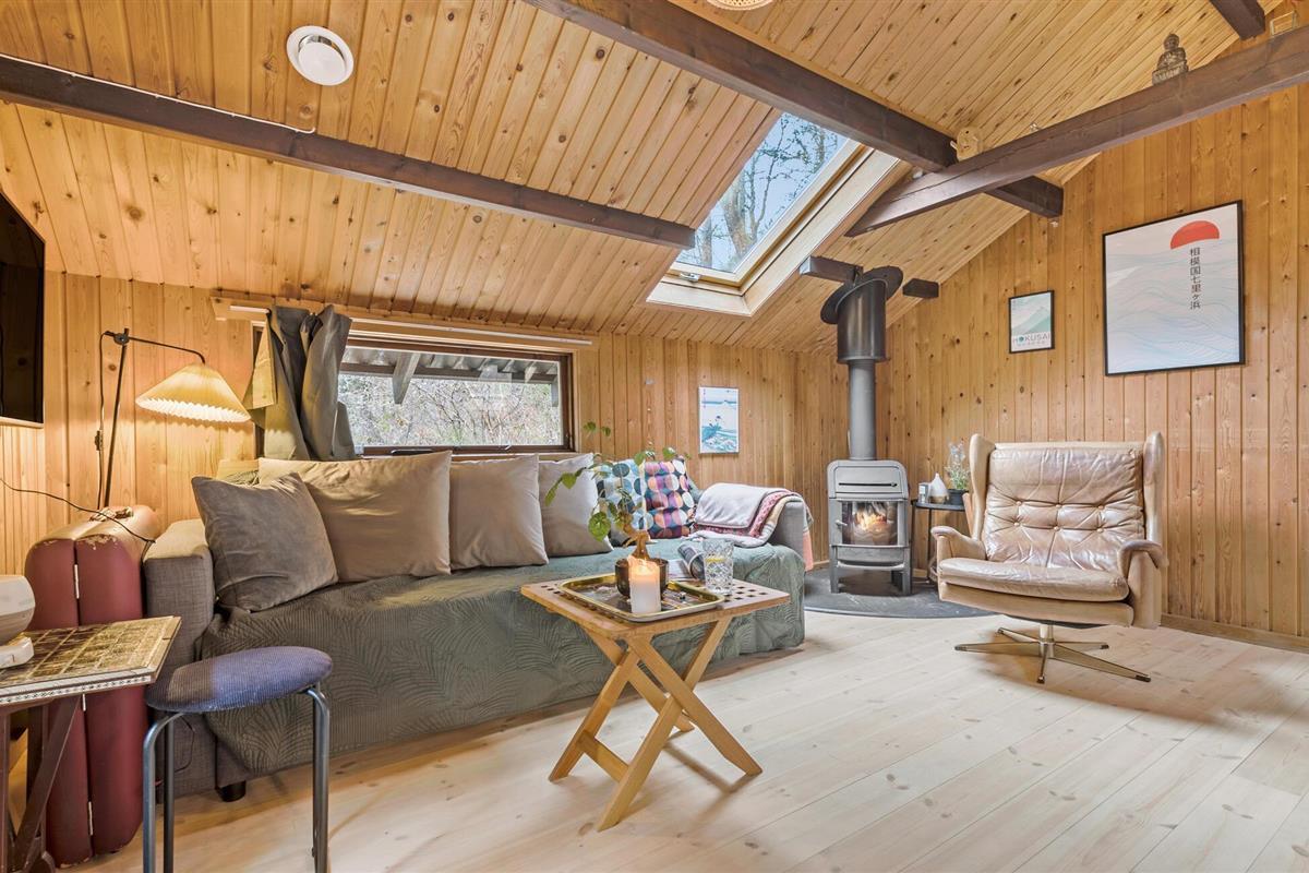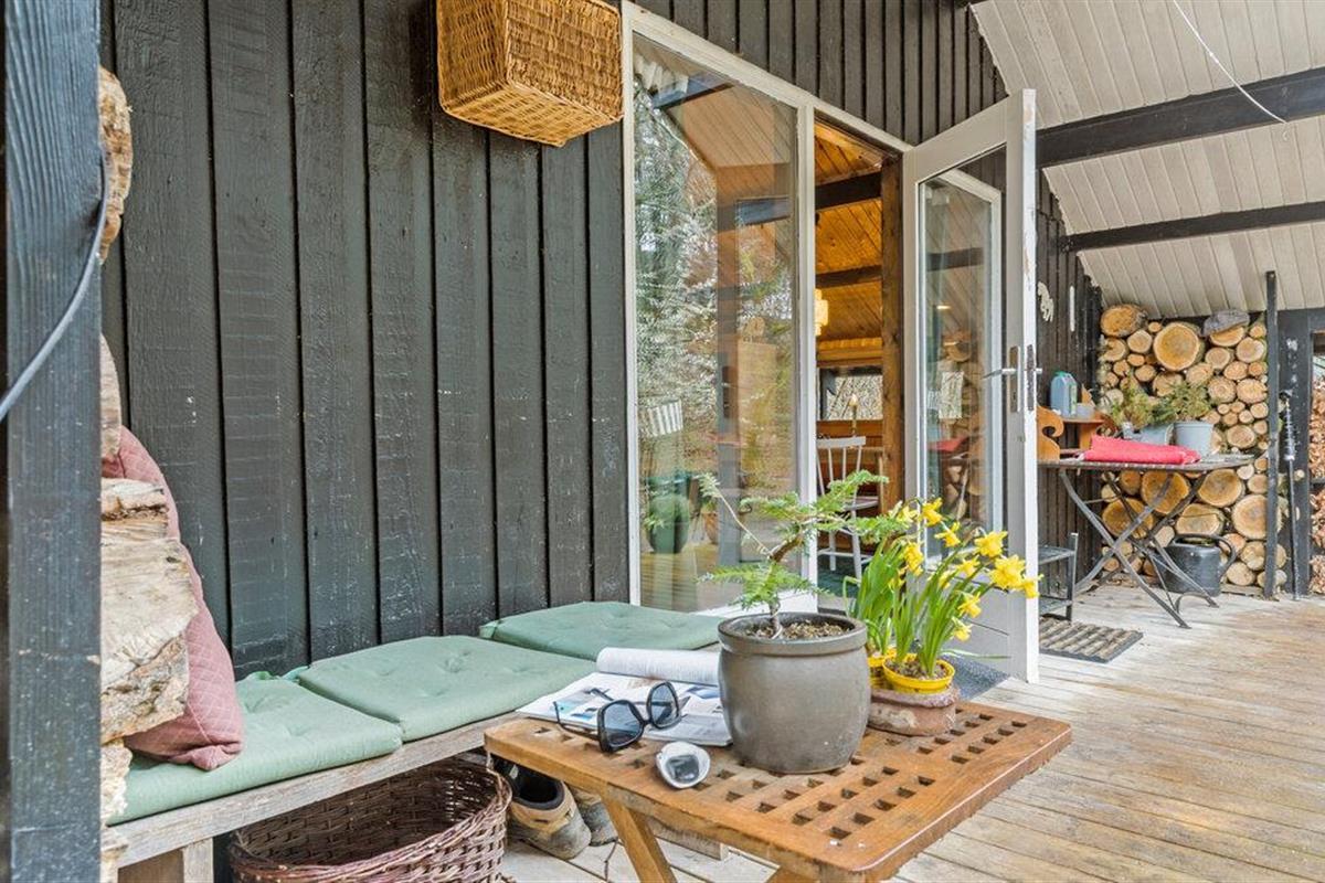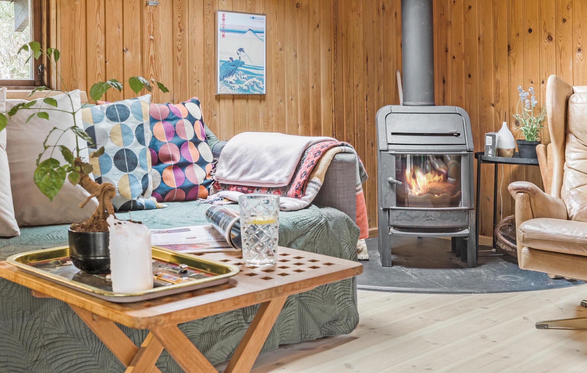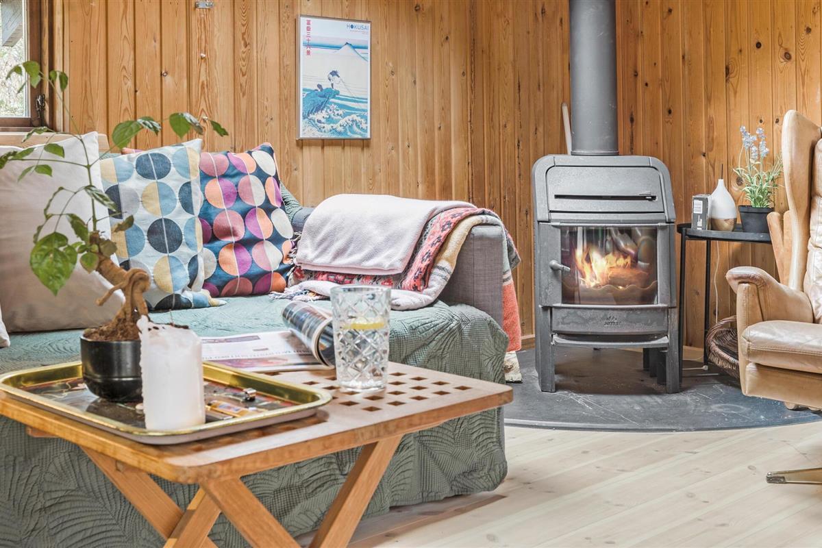 Gezellig houten vakantiehuis in Nationaal Park Mols Bjerge met houtkachel en terras voor een ontspannen verblijf in de natuur.