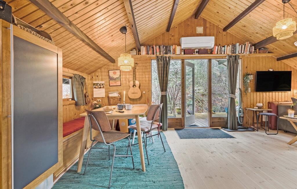 Gun jezelf een onderbreking van de hectiek van alledag en vind rust en stilte midden in de natuur in dit vakantiehuis. Het praktische houten huis straalt gezelligheid uit. Steek de houtkachel aan en maak het jezelf gemakkelijk op de banken, speel gitaar of geniet van de tijd samen koken in de keuken of spelletjes spelen aan de eettafel.