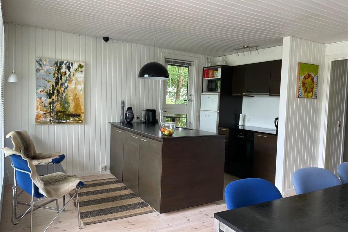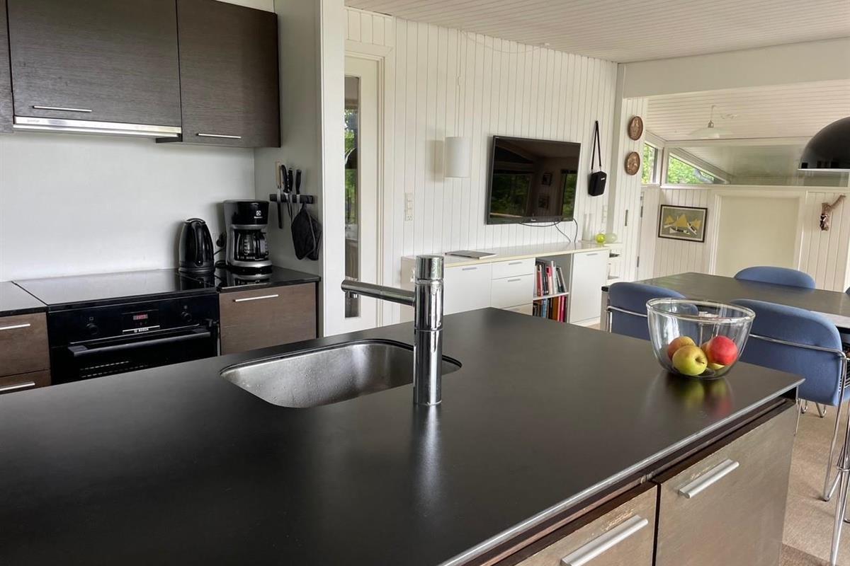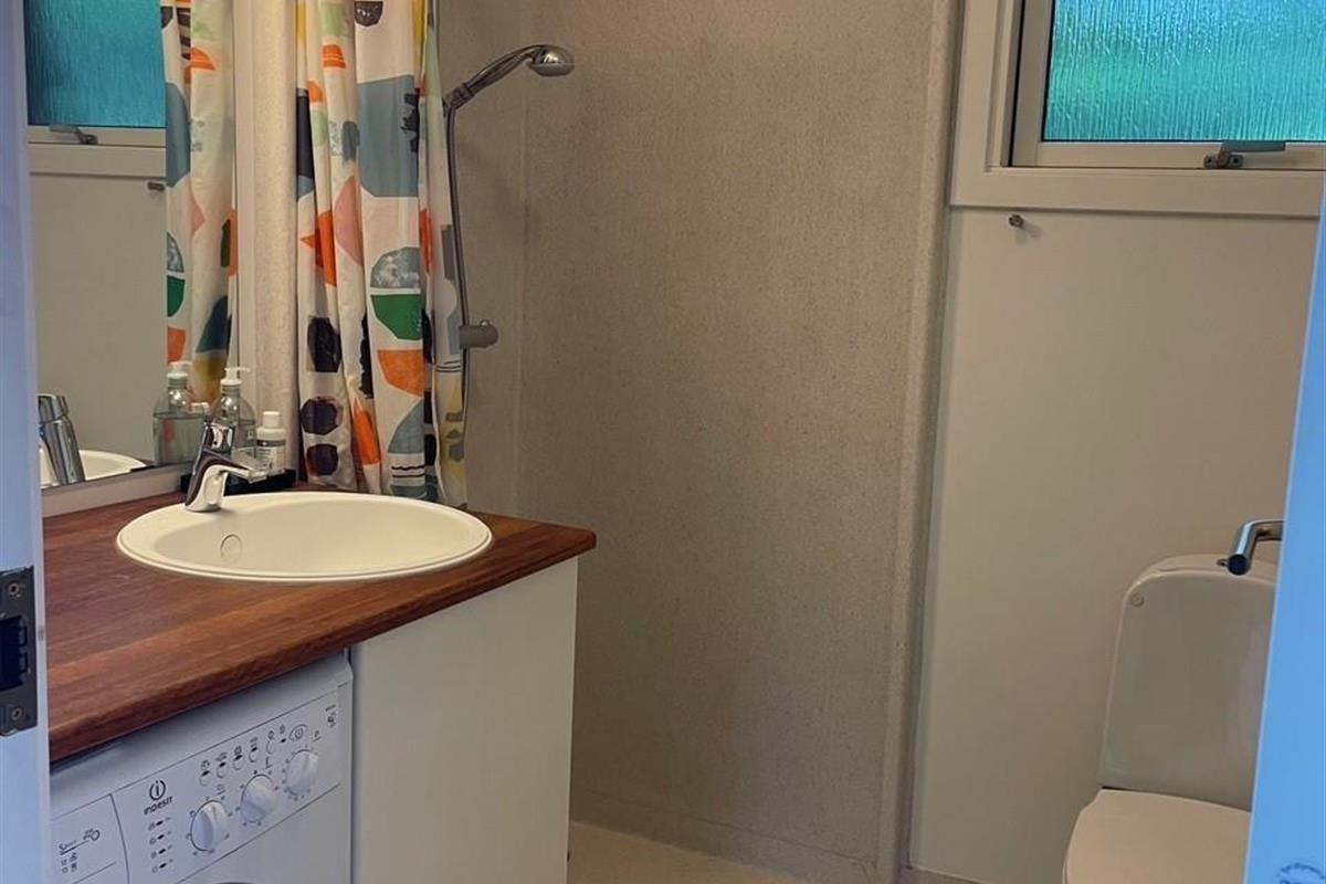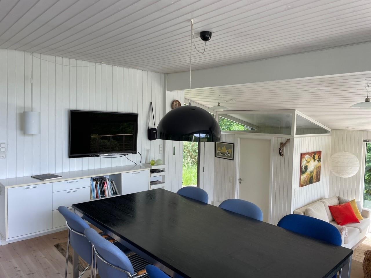 The heart of the house is the bright, well-furnished living room/dining area with access to the terrace, a wood-burning stove, a dining space for 6 people, and cable TV with Danish (including TV2) and German channels. The newer kitchen, with black cabinetry, is open to the living room and includes an induction stove with oven, fridge/freezer, dishwasher, and microwave. The 6 sleeping places are spread across 3 bright bedrooms with double beds. The bathroom includes a shower area, washing machine, and dryer. Internet access is available.