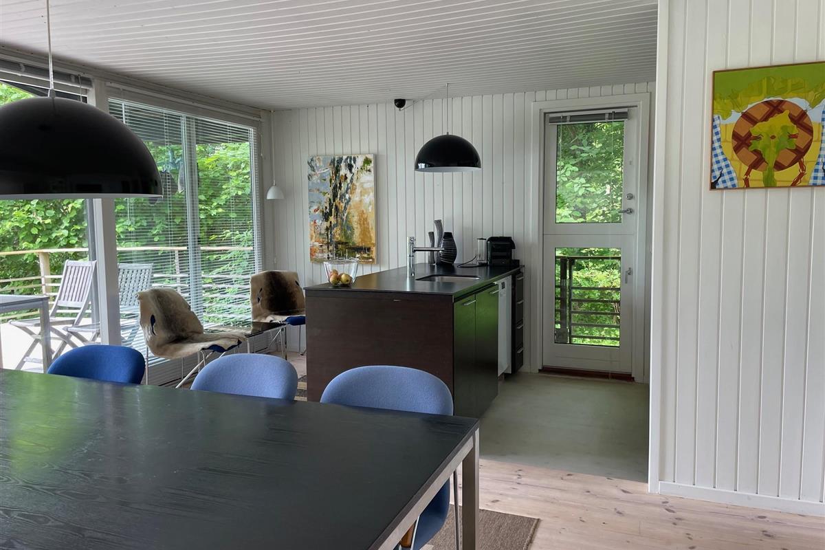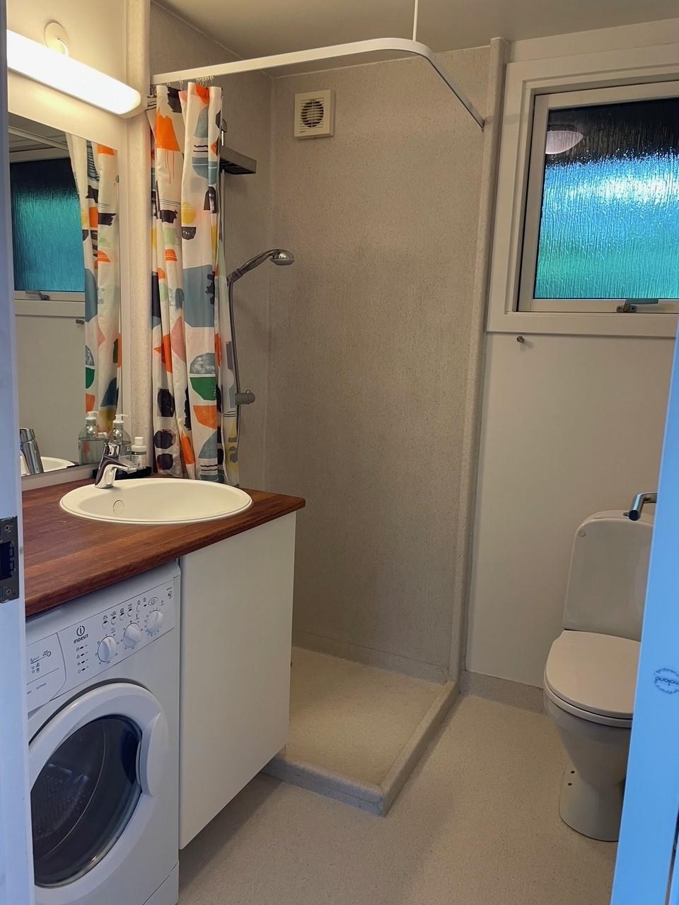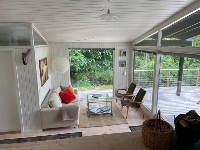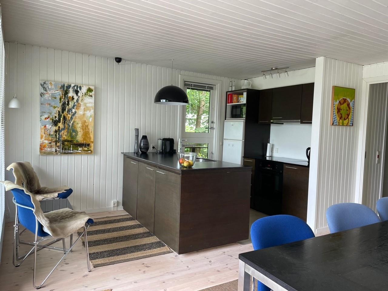 The heart of the house is the bright, well-furnished living room/dining area with access to the terrace, a wood-burning stove, a dining space for 6 people, and cable TV with Danish (including TV2) and German channels. The newer kitchen, with black cabinetry, is open to the living room and includes an induction stove with oven, fridge/freezer, dishwasher, and microwave. The 6 sleeping places are spread across 3 bright bedrooms with double beds. The bathroom includes a shower area, washing machine, and dryer. Internet access is available.