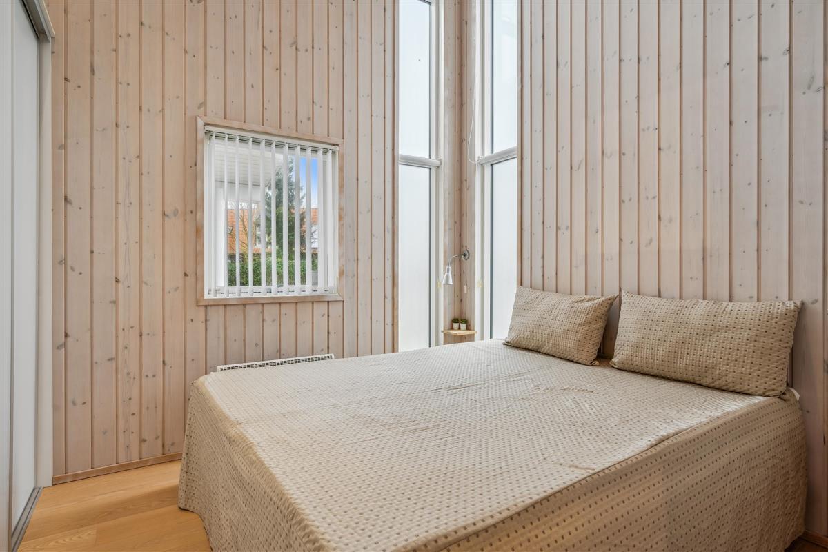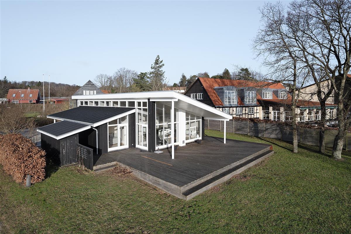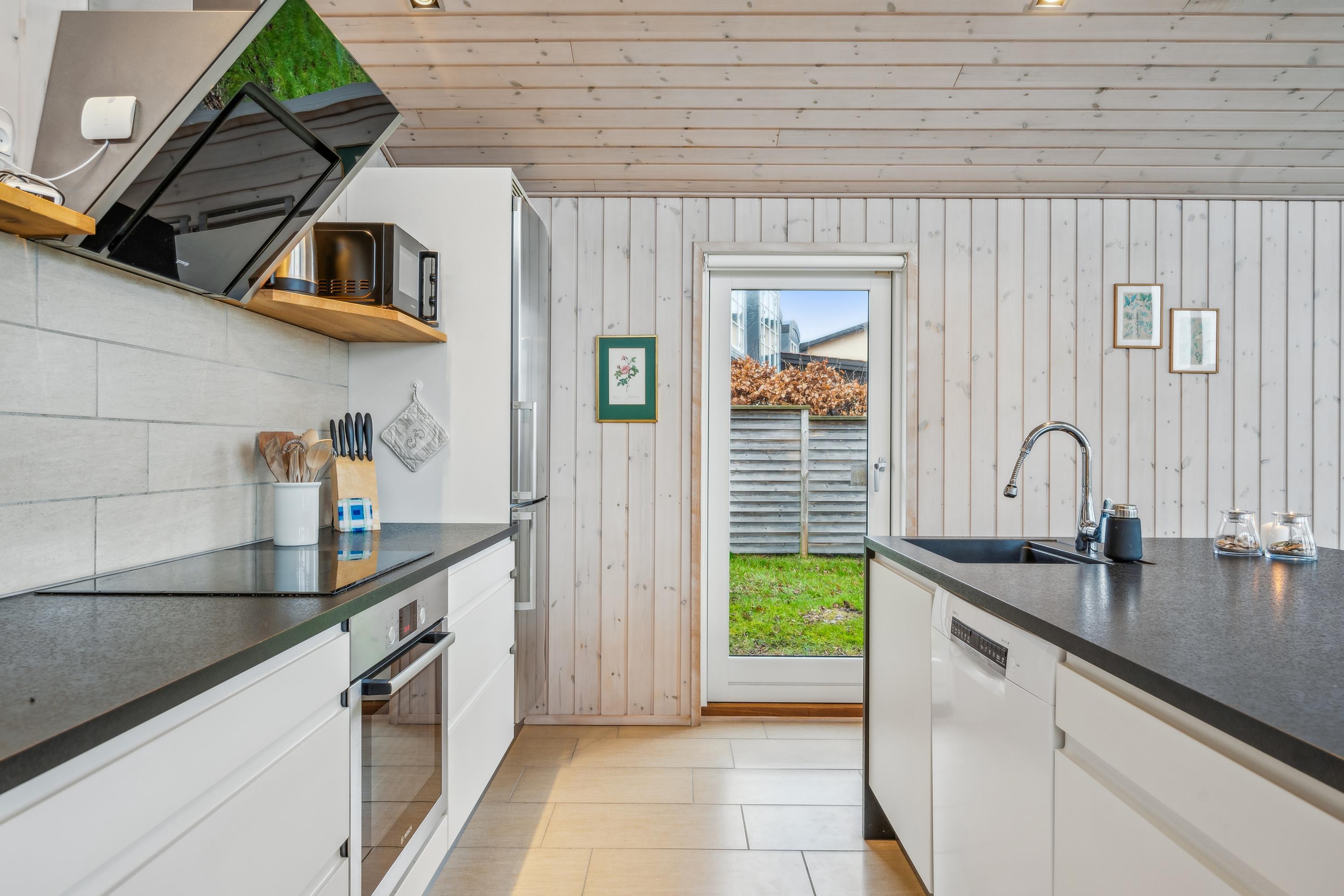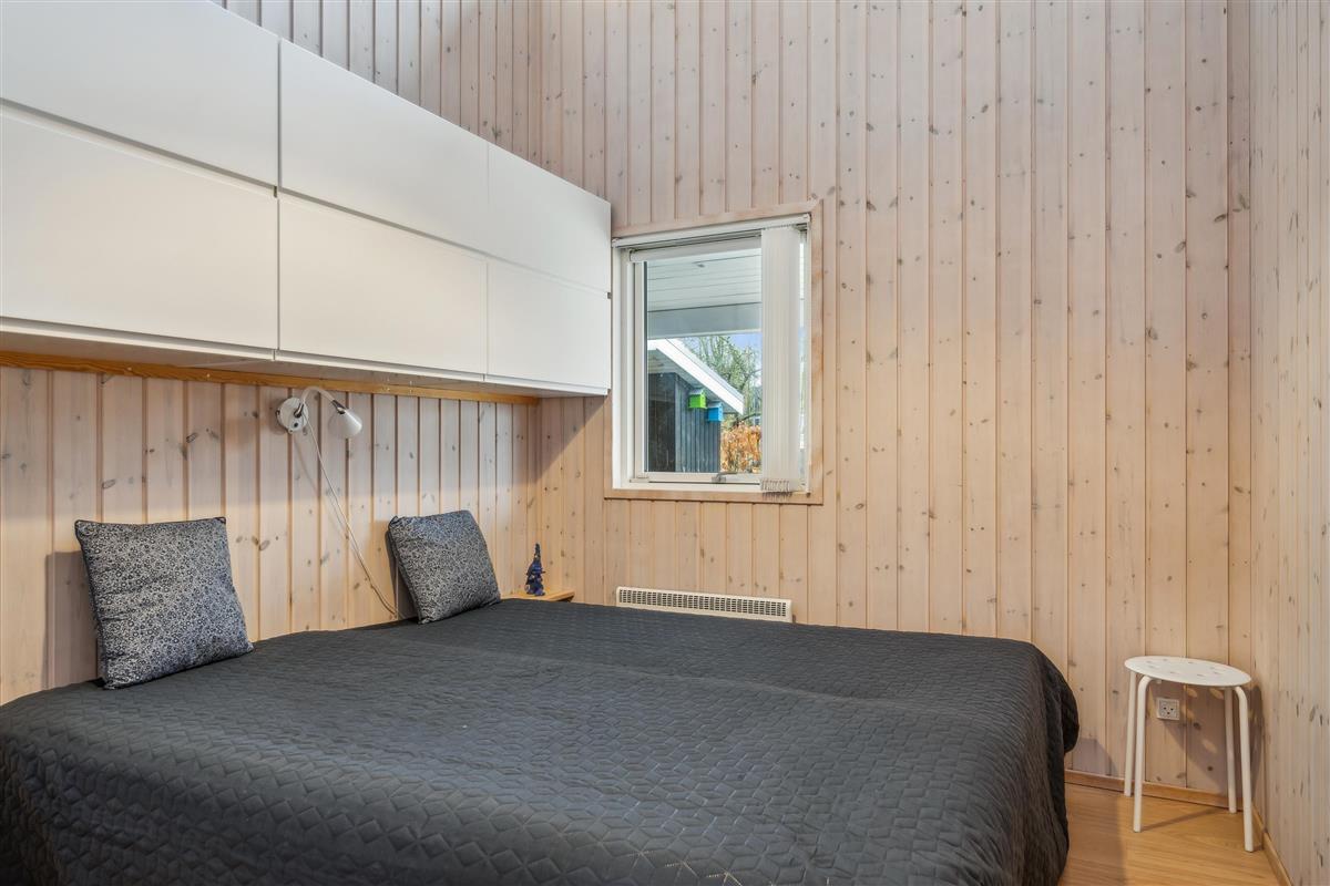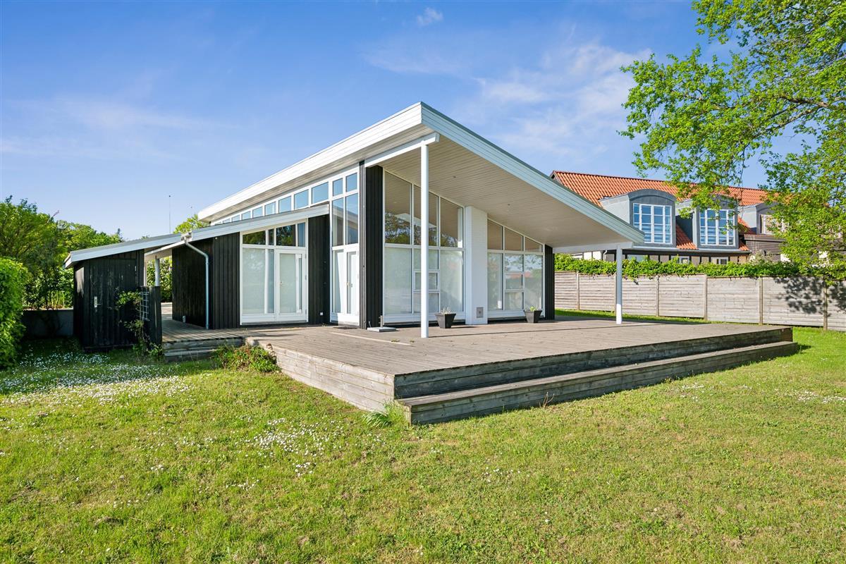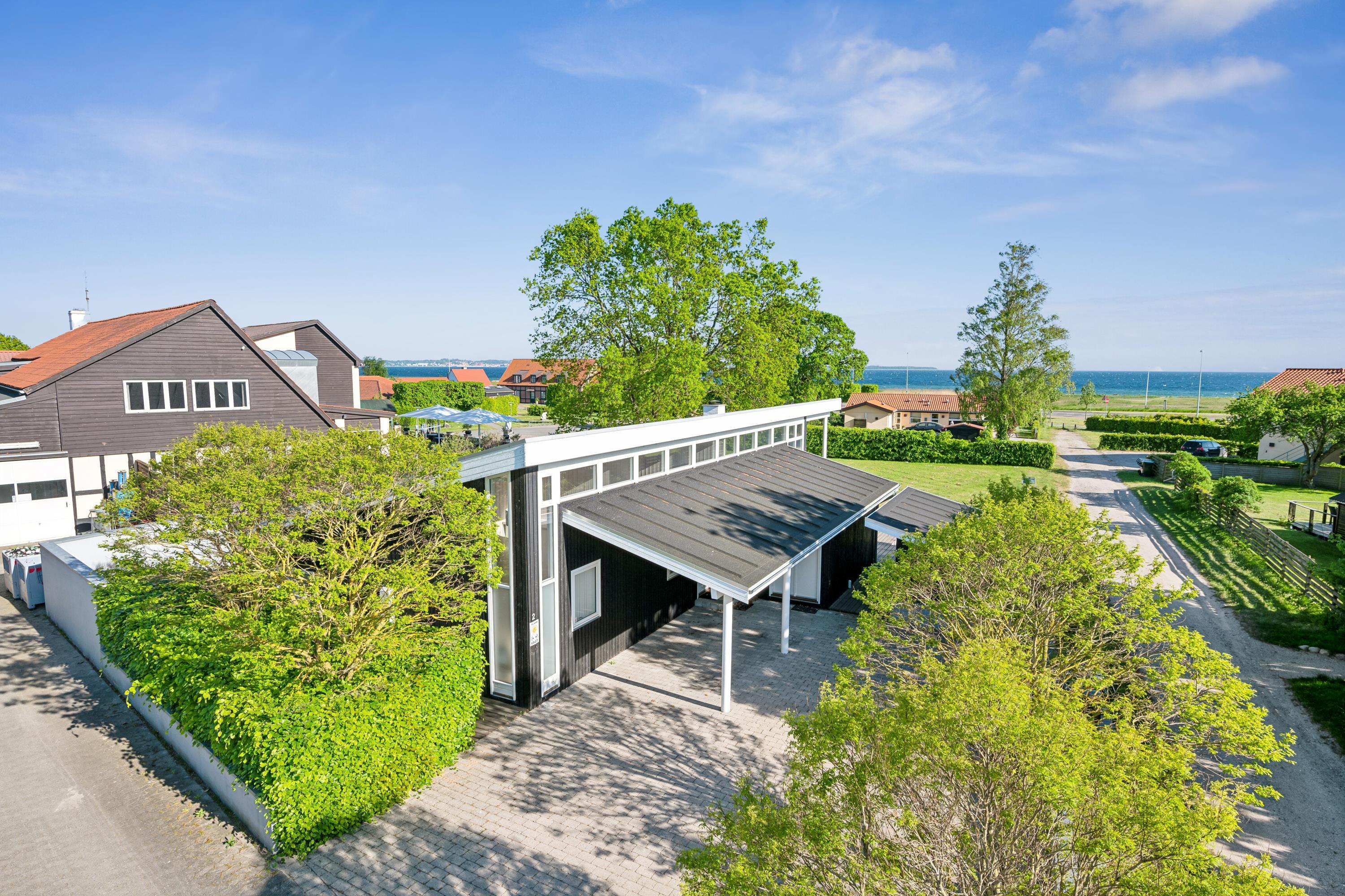 At Femmøller Beach, you will find this beautiful and well-maintained holiday home, located in the scenic Egil Fischer area. The house features a stylish and inviting living room, furnished with quality furniture, a wood-burning stove, and a heat pump, as well as access to a lovely terrace with a view of the water. The modern kitchen includes a kitchen island, providing the perfect spot to gather around while preparing meals and enjoying a good glass of wine.