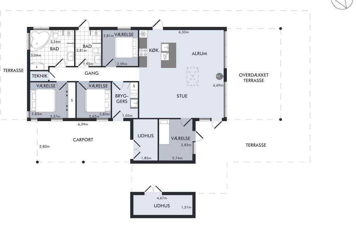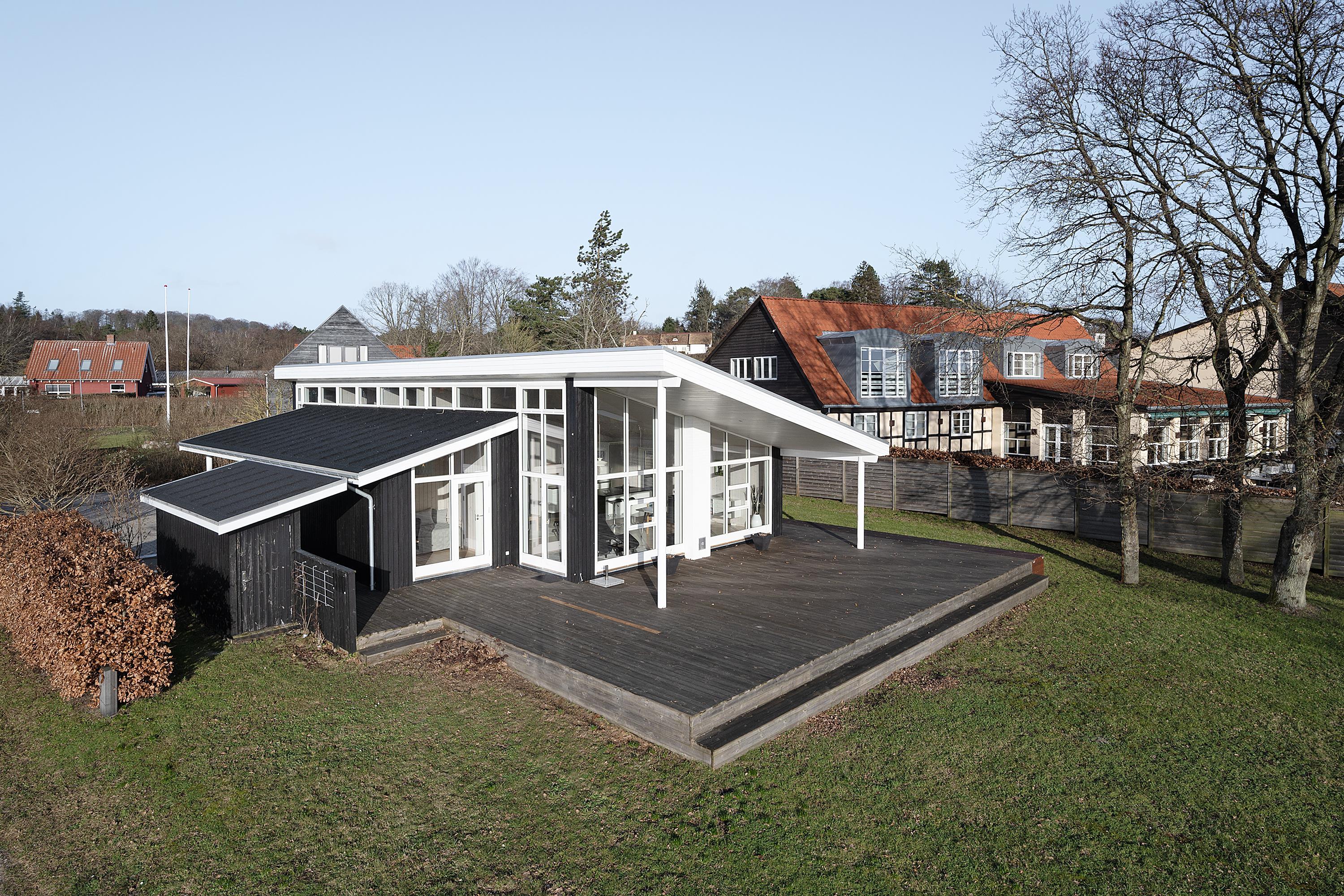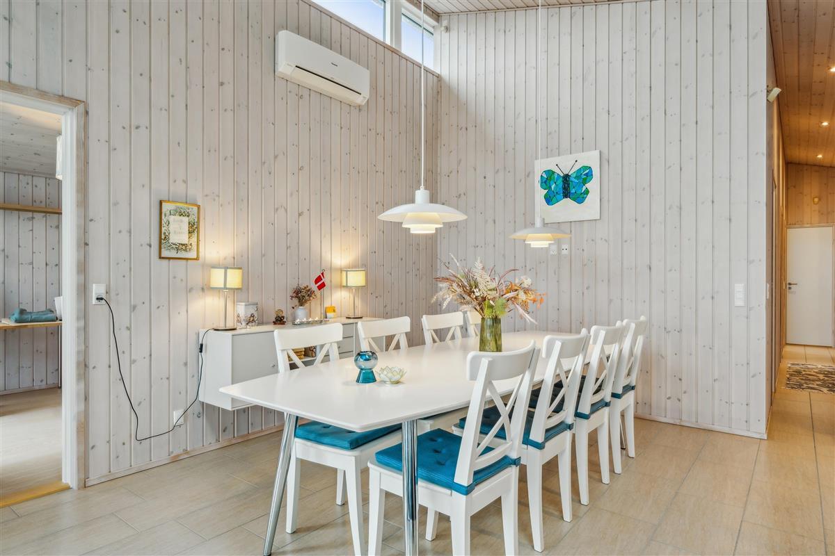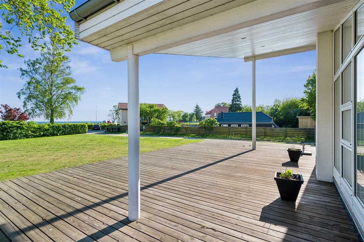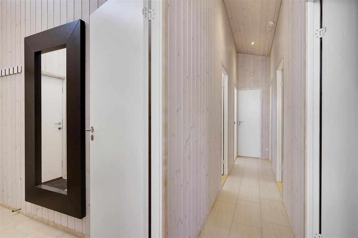 At Femmøller Beach, you will find this beautiful and well-maintained holiday home, located in the scenic Egil Fischer area. The house features a stylish and inviting living room, furnished with quality furniture, a wood-burning stove, and a heat pump, as well as access to a lovely terrace with a view of the water. The modern kitchen includes a kitchen island, providing the perfect spot to gather around while preparing meals and enjoying a good glass of wine.