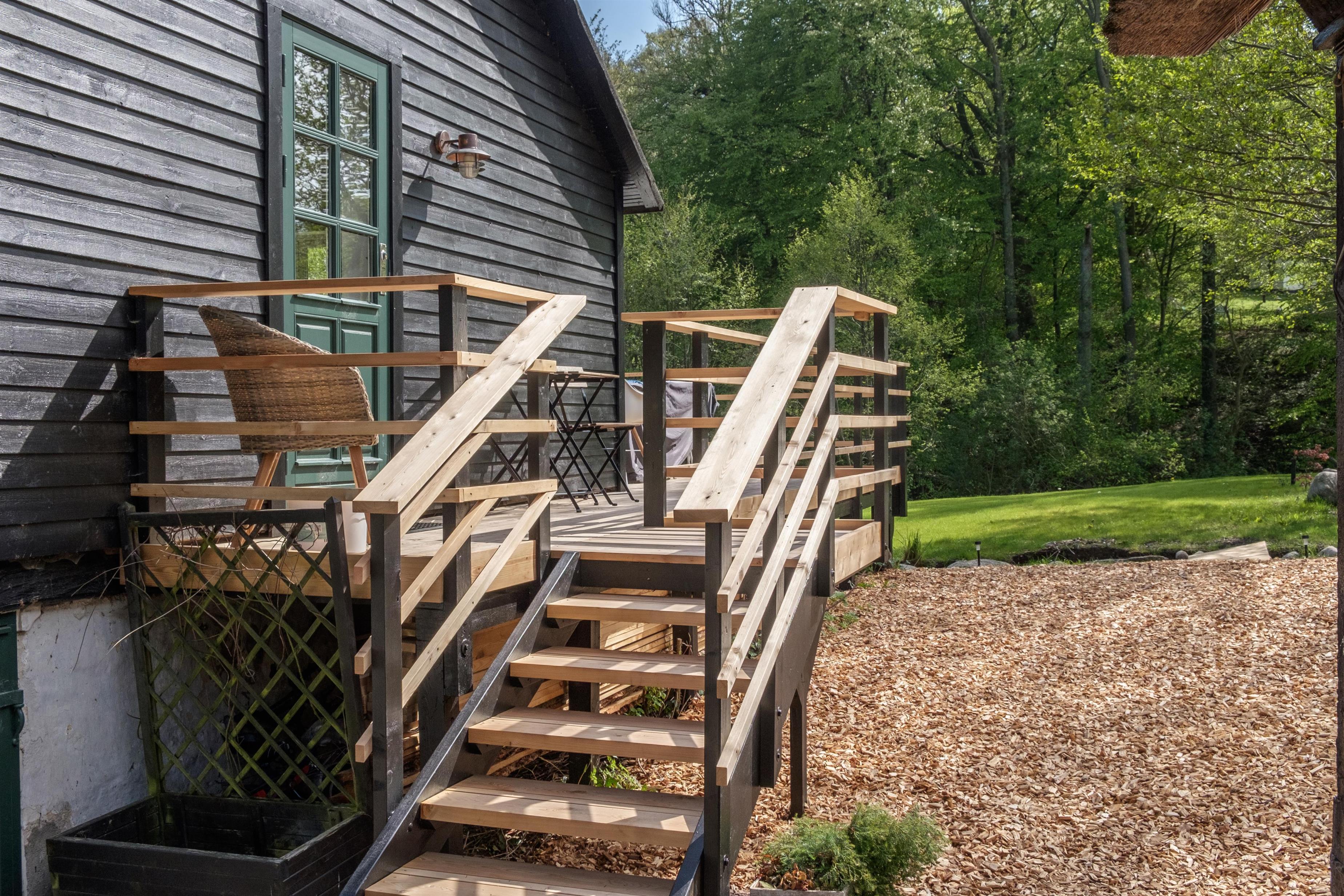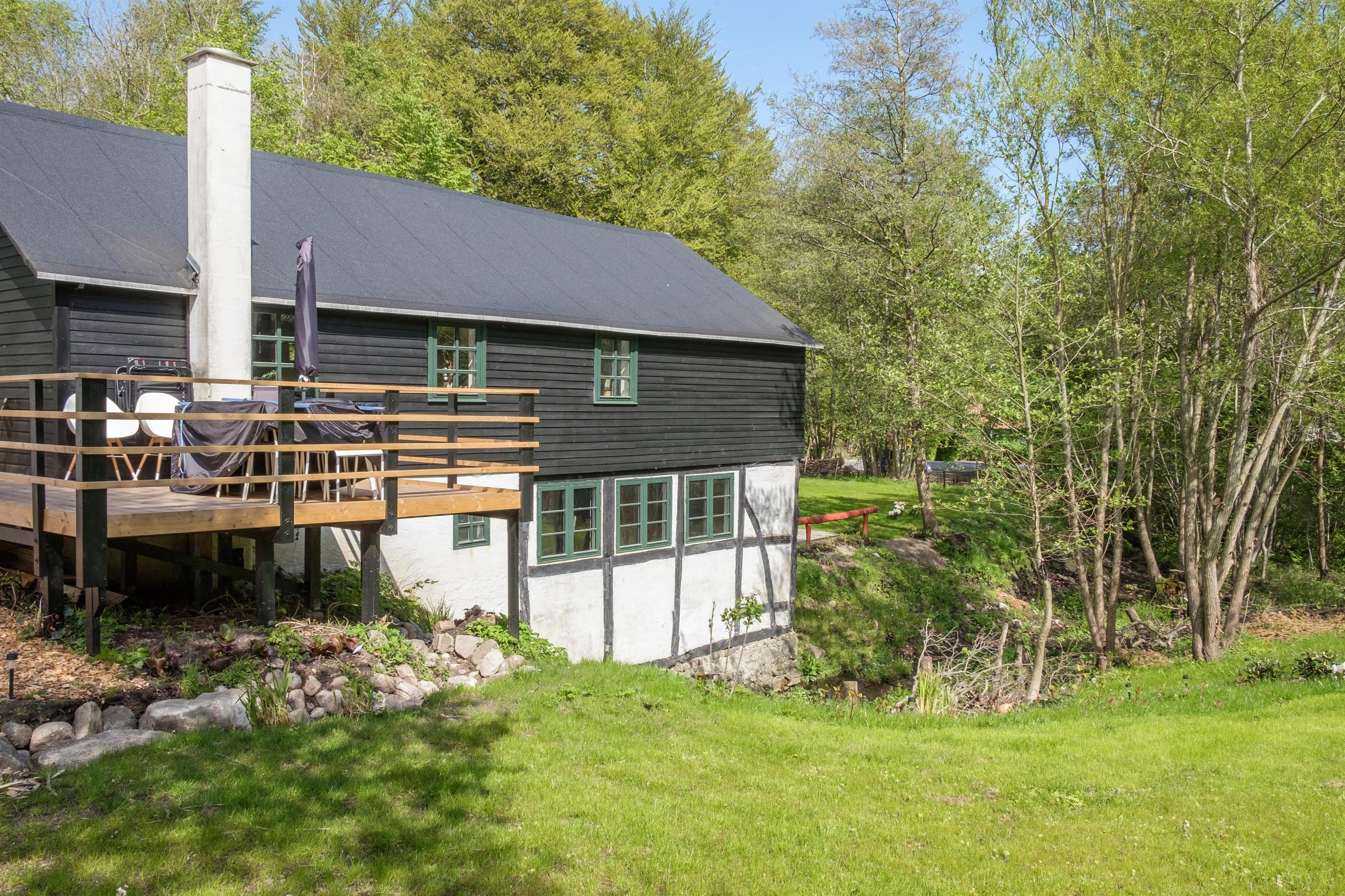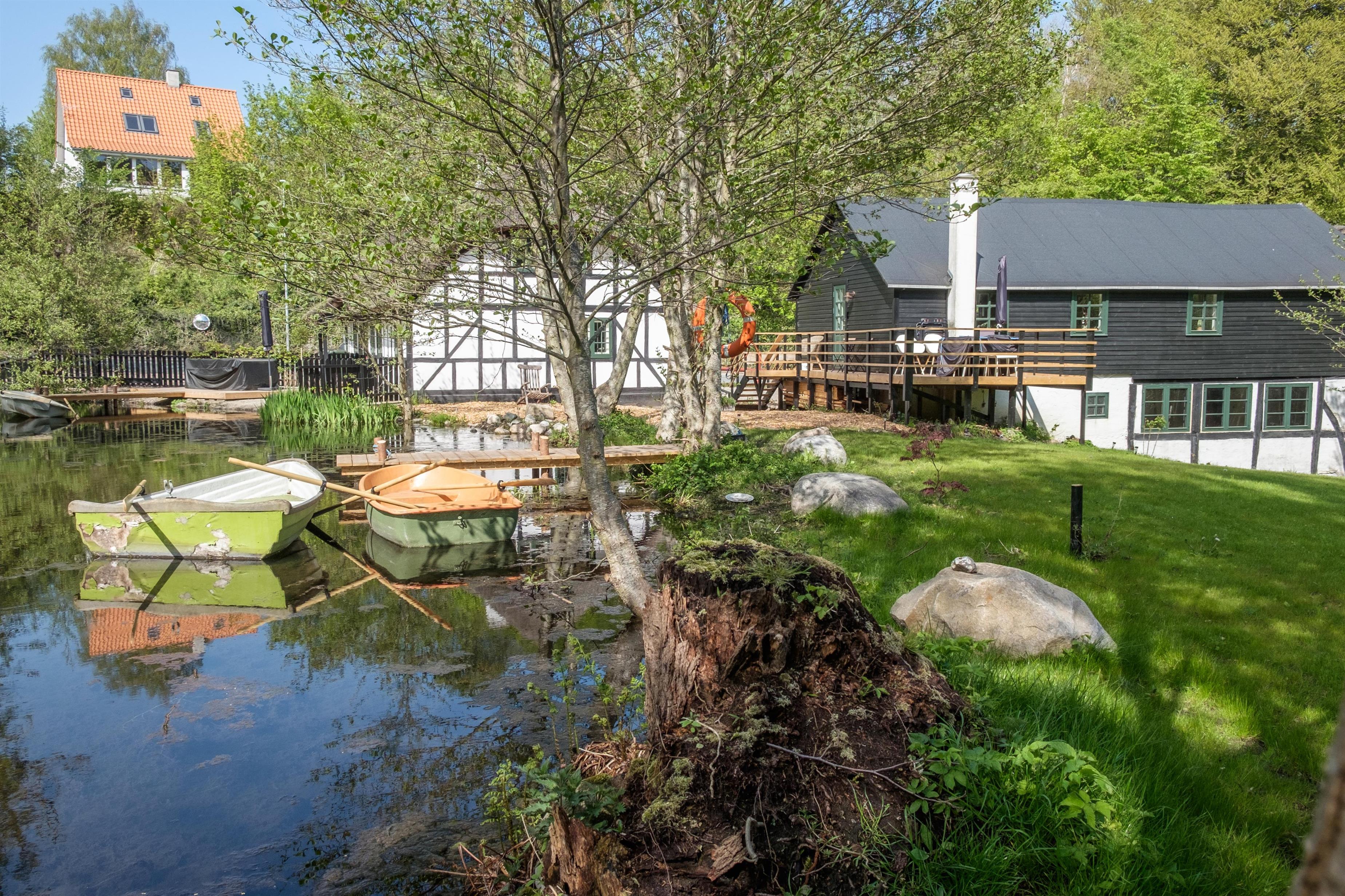 Stay on the first floor of the old mill house at Glads Mølle, one of Femmøller's legendary five watermills, which has been carefully and beautifully restored, located on a large plot by the Mølleåen stream with its own small lake. The property's original character and atmosphere have been preserved throughout, from the beautiful wooden floors to the lovely old doors and windows. Here, you will experience something rare in truly unique surroundings, with all the comforts of modern living.