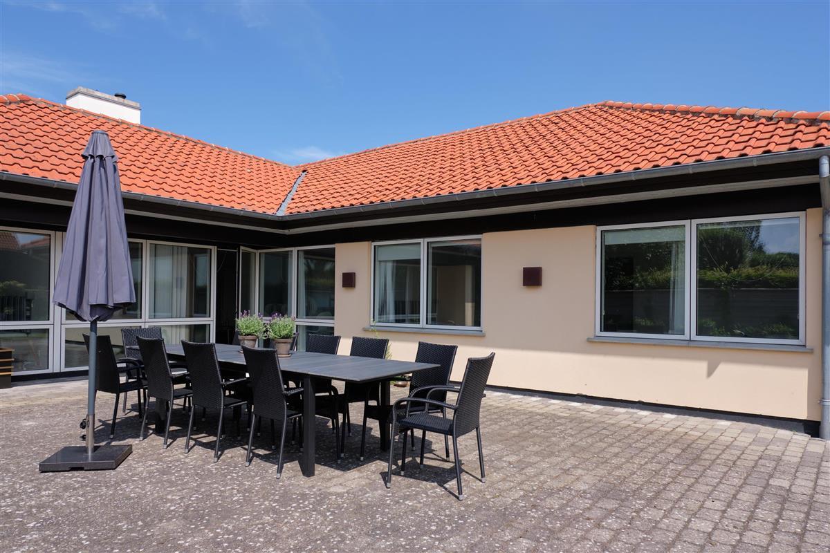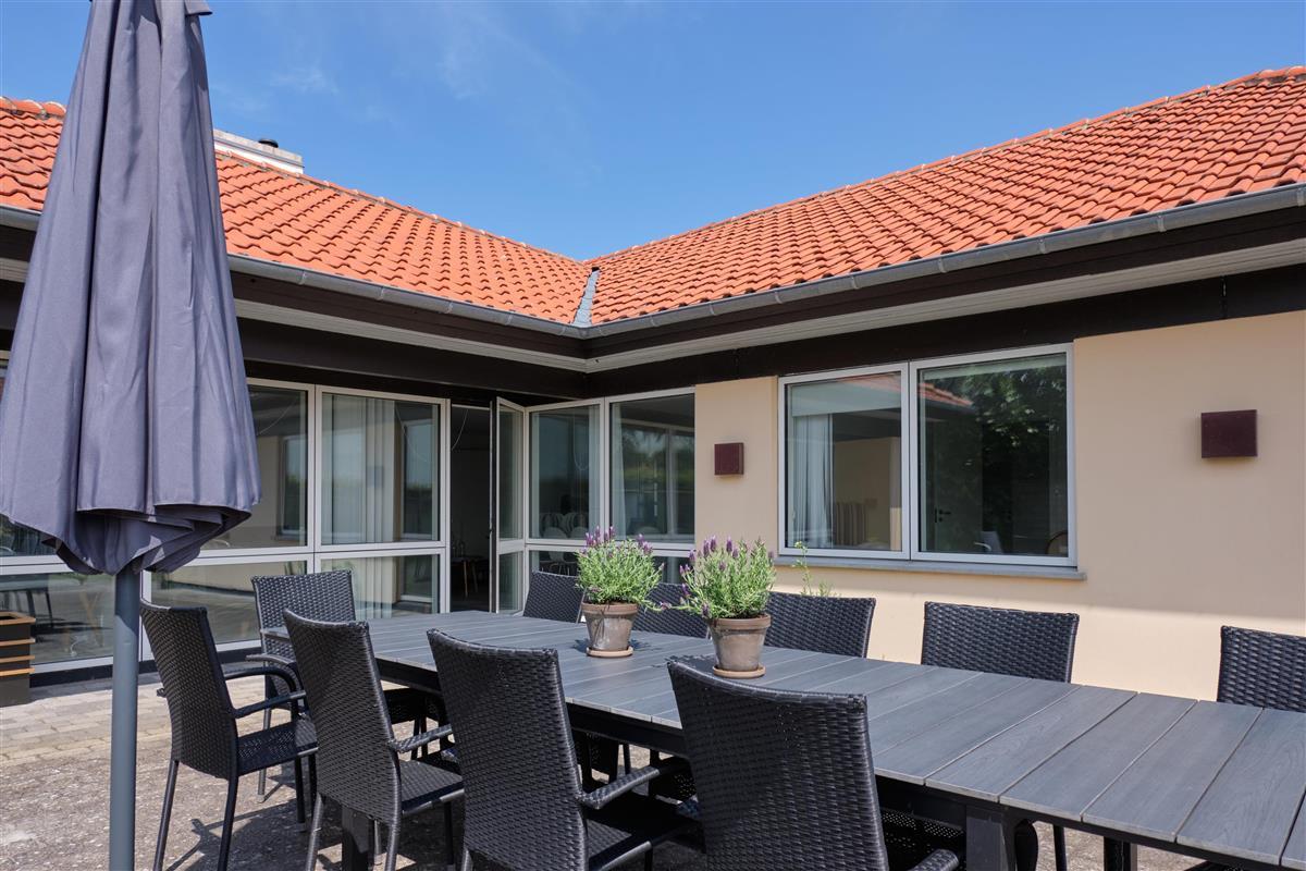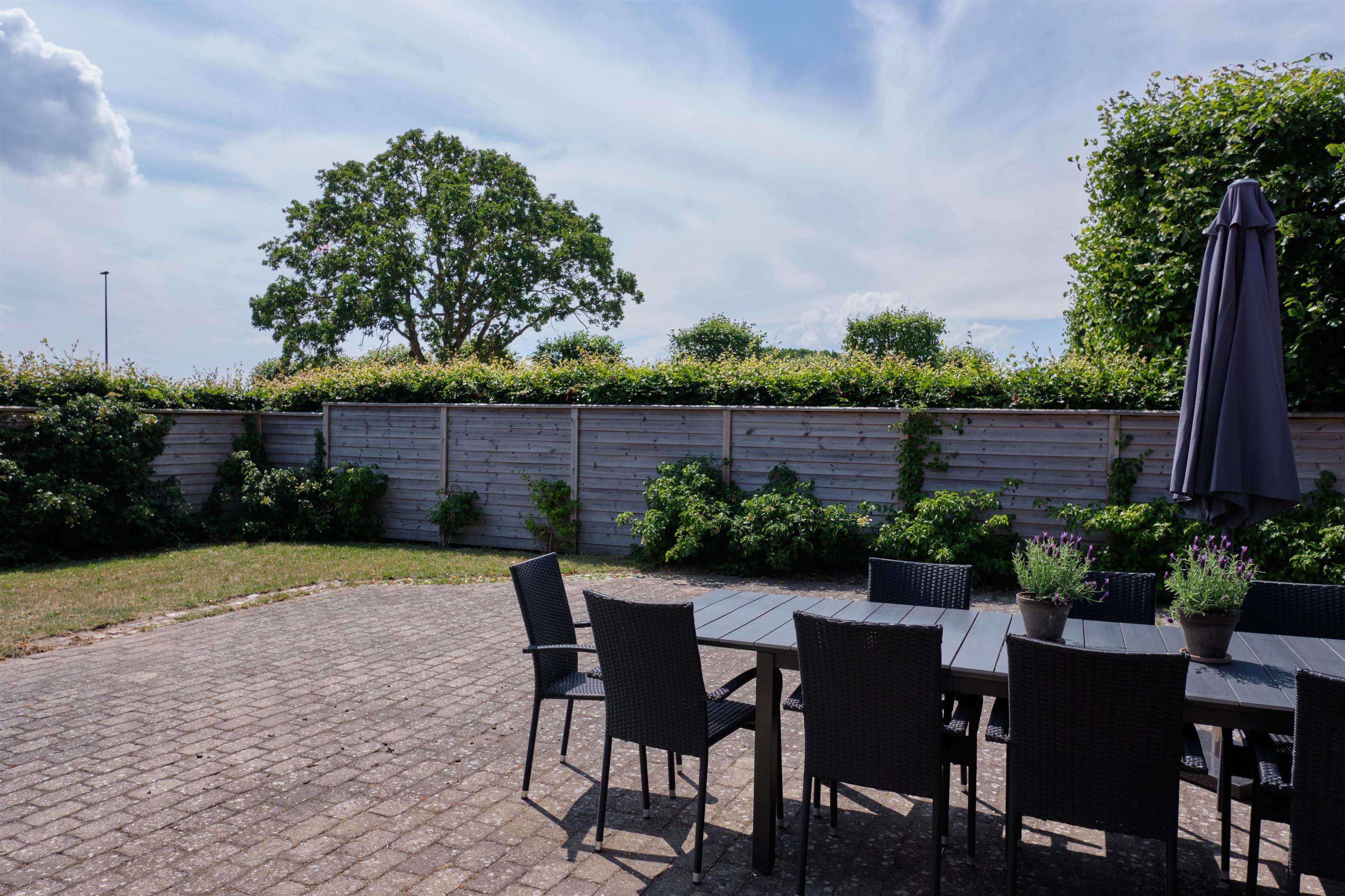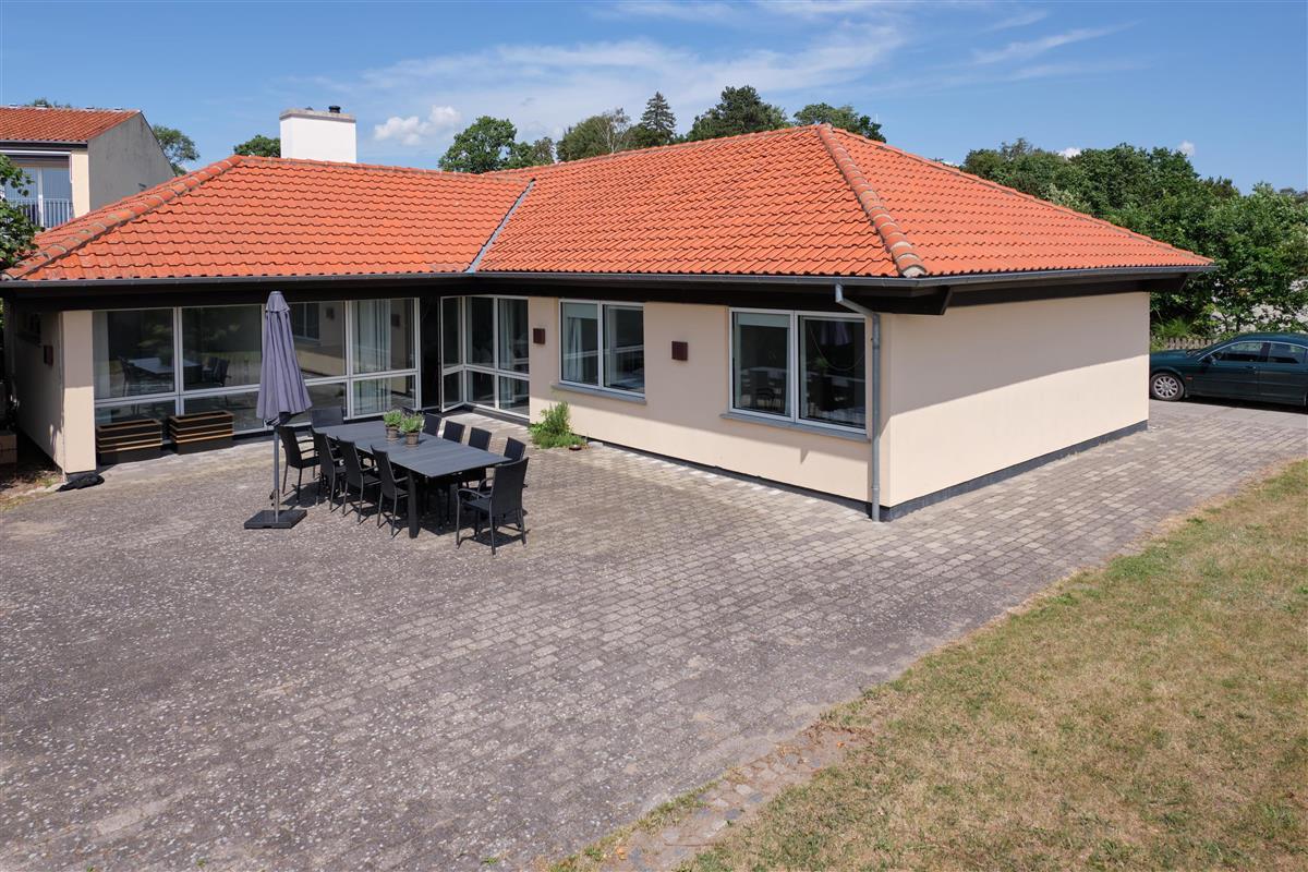 Located in the second row at the picturesque Femmøller Strand, this exceptionally spacious and well-appointed holiday home offers plenty of room for large families or several families. The large, southeast-facing tiled terrace with a view of Ebeltoft Bay is equipped with comfortable garden furniture, loungers, an umbrella, and a barbecue. It’s only 150 meters to a child-friendly sandy beach and a short walk to the local grocery store, while the legendary Molskro restaurant is located on the other side of the road.